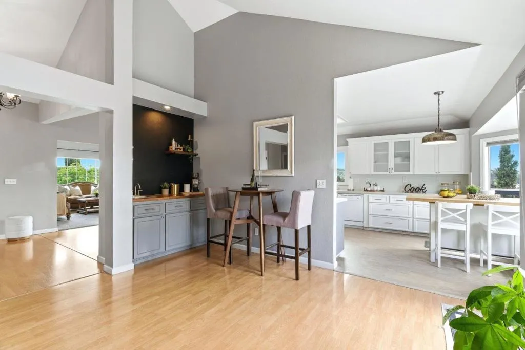 Stunning Views, this 4-bedroom, 2.5-bath residence offers approx. 2,330 sq ft on an expansive ~9,100 sq ft lot. Soaring ceilings and recessed lighting create a bright, elevated ambiance throughout. The remodeled kitchen features sleek quartz countertops, custom cabinetry, stainless steel appliances, and a gas rangeperfectly blending style and everyday functionality. The main level is thoughtfully designed with the primary suite and a secondary bedroom, alongside a seamless kitchen, family room, and living room layout ideal for modern living. Downstairs offers two additional bedrooms, a full bath, and a laundry roomperfect for guests, extended family, or flexible living. Enjoy breathtaking, nearly 360° views of the Santa Teresa hills and Los Gatos mountains from multiple vantage points throughout the home. The backyard is built for entertaining with brand-new landscaping, a private balcony and view deck, fire pit area, and multiple spaces for outdoor dining, relaxation, and play. A covered pergola beneath the deck adds a perfect outdoor cooking and lounge setting. A rare drive-through side yard provides ample space for RV or boat parking. With privacy, a flat usable yard, and stunning views, this home offers a unique blend of comfort, versatility, and hillside luxury.