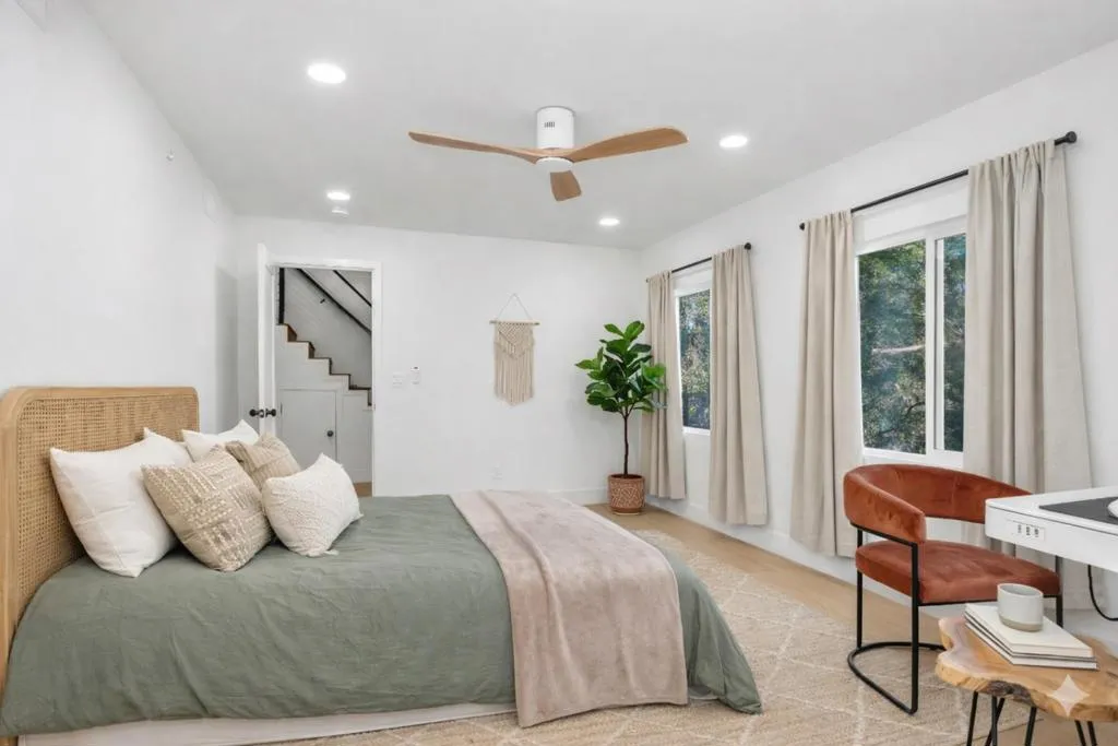 Nestled among majestic redwoods on a peaceful Mill Valley street, this beautifully remodeled residence offers a rare blend of luxury, privacy, and nature. The home feels like a serene forest retreat while remaining just minutes from downtown Mill Valley, top-rated schools, scenic parks, and everyday conveniences. Thoughtfully designed with tranquil Zen-inspired outdoor spaces, the property invites seamless indoor-outdoor living surrounded by breathtaking natural beauty. Inside, the open-concept layout is filled with natural light from oversized windows that frame the surrounding redwoods. The elegant living and dining areas flow effortlessly into a chefs kitchen featuring granite countertops, quality appliances, and generous cabinetryperfect for both everyday living and sophisticated entertaining. The main-level primary bedroom and beautifully updated bathroom provide comfort and convenience, creating a private sanctuary within the home. This exceptional Mill Valley property offers a unique opportunity to experience refined living in one of Marin Countys most desirable settings.