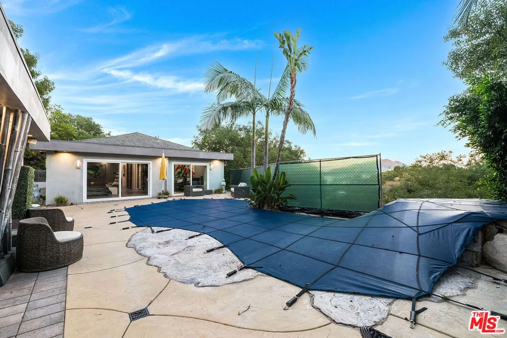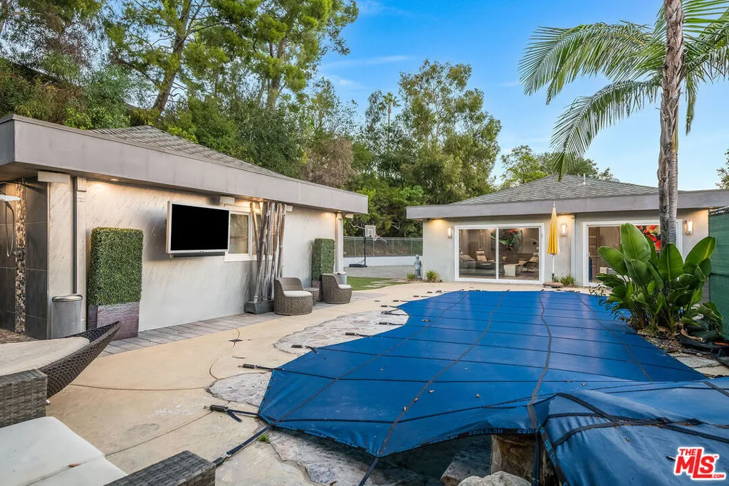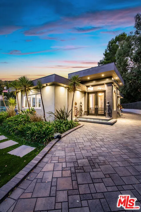 SOUTH OF THE BLVD!! TUCKED AWAY ON GATED PROPERTY SITS THIS ONE STORY MID-CENTURY RECENTLY REMODELED MODERN CONTEMPORARY HOME ON A HUGE 36,064 SQFT LOT.... MOSTLY FLAT! CITY AND MOUNTAIN VIEWS. 3 BEDS, AND 4 BATHS WITH 3000+/-sqft LIVING SPACE IN THE MAIN HOUSE, POOL, SPA AND WATERFALL. ANOTHER 400+/- soft CONVERTED GARAGE WITH A KITCHENETTE AND BATHROOM. PLENTY OF ADDITIONAL PARKING. JUST UNDER ONE ACRE OF LAND! A RARE, PRIME STUDIO CITY/HOLLYWOOD HILLS LOCATION, CLOSE TO MULHOLLAND AND LAUREL CANYON AND CONVENIENT TO UNIVERSAL STUDIOS.