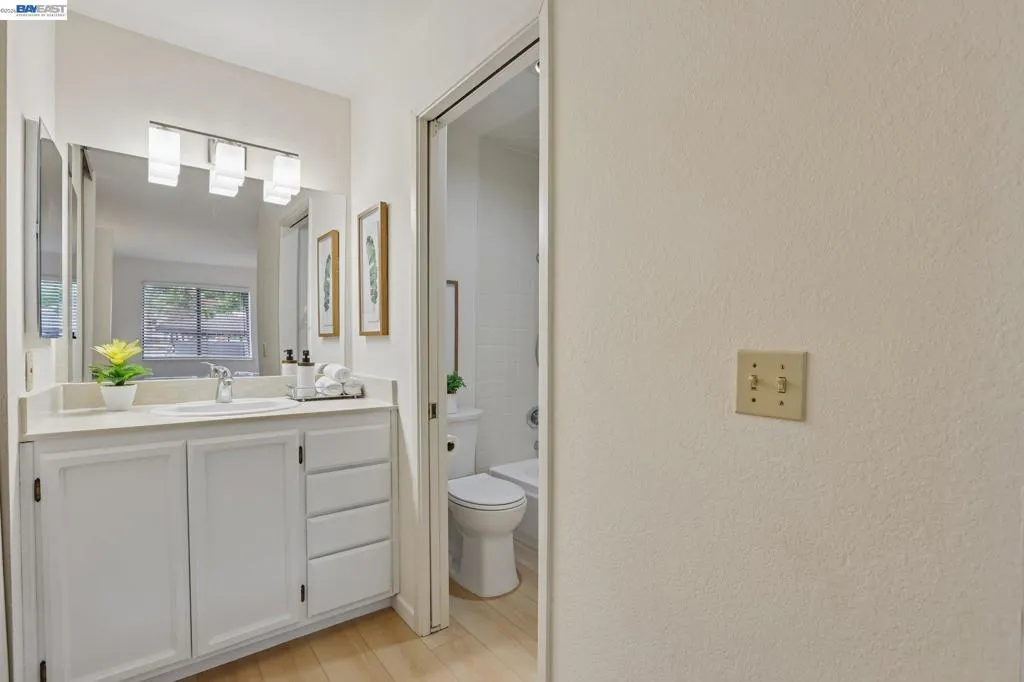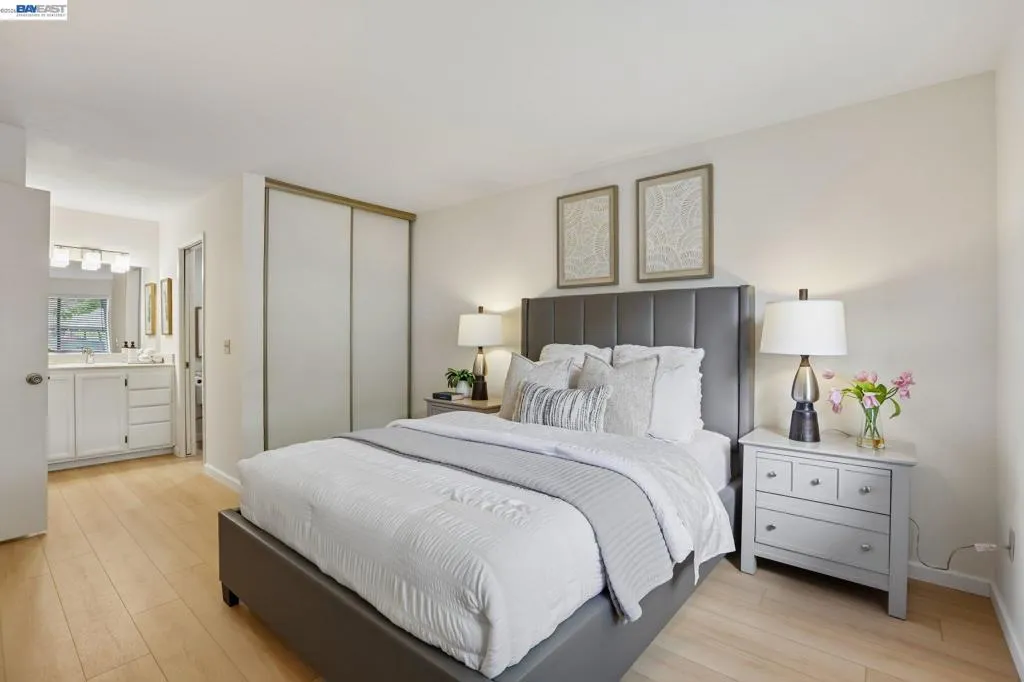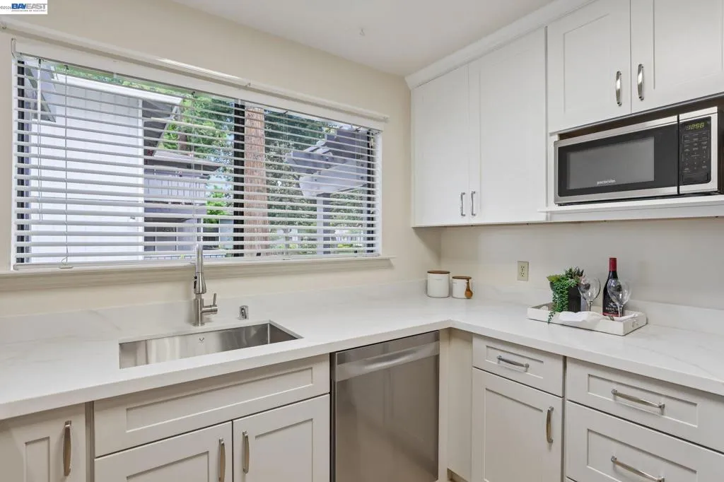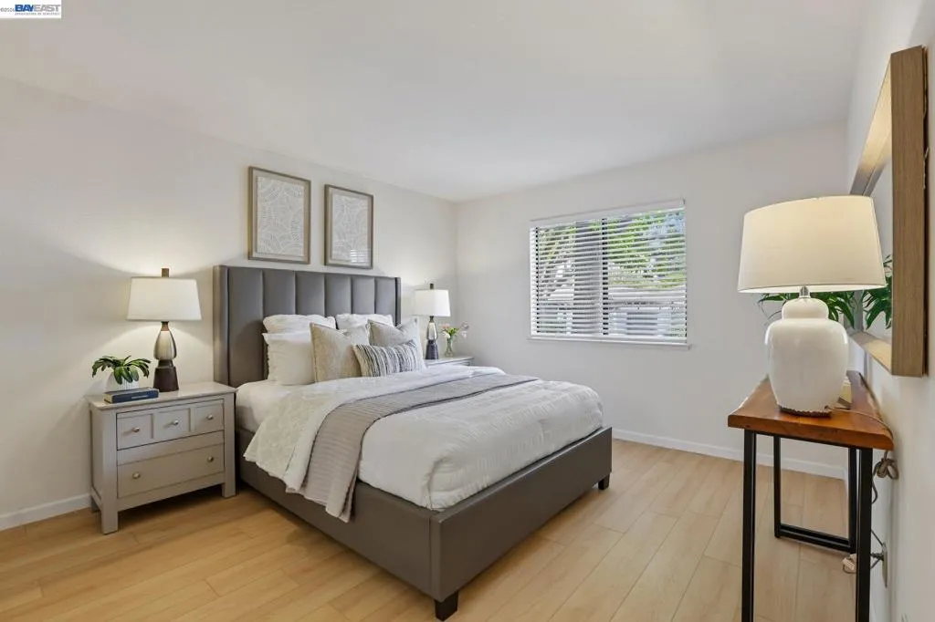 Welcome to luxury living in Downtown Fremont’s highly desirable Fremont Woods gated community! This newly updated, move-in-ready ground-floor condo features 2 bedrooms, 2 bathrooms, an open floor plan, and a private patio overlooking a beautifully landscaped, tree-lined courtyard. Inside, you'll find a tastefully updated kitchen featuring quartz countertops, spacious cabinetry, and stainless-steel appliances, central AC and heating, and fresh paint throughout. The HOA makes life easy by covering water, trash, the community pool, clubhouse, and exterior maintenance. Perfectly situated for ultra-convenience, you are just moments away from everyday essentials like Trader Joe's and Target, plus the library, hospitals, BART, and major tech hubs. Outdoor enthusiasts will love the proximity to Lake Elizabeth in Central Park and Mission Peak. All this, plus access to top-rated Fremont schools. You don't want to miss this!