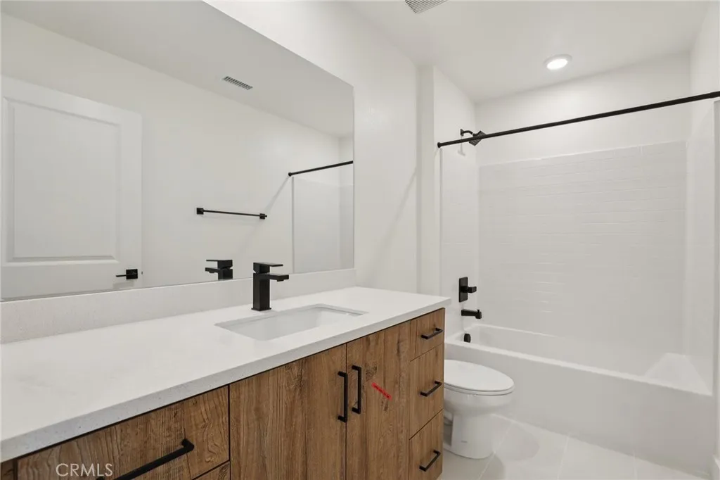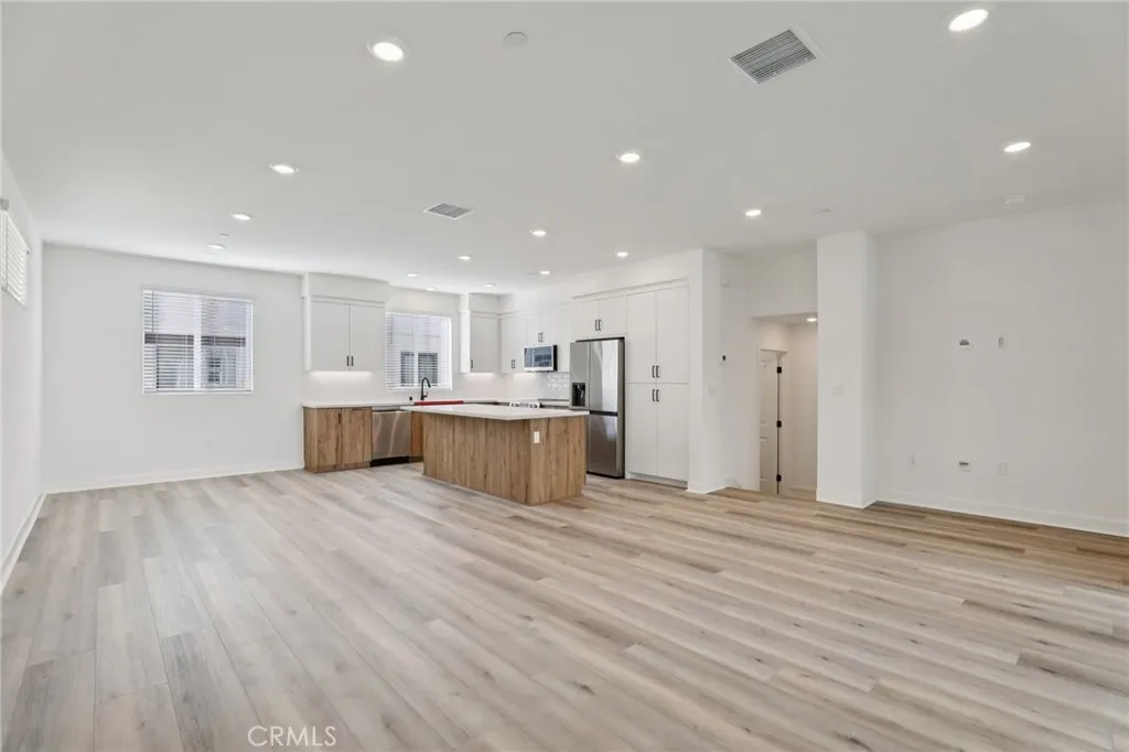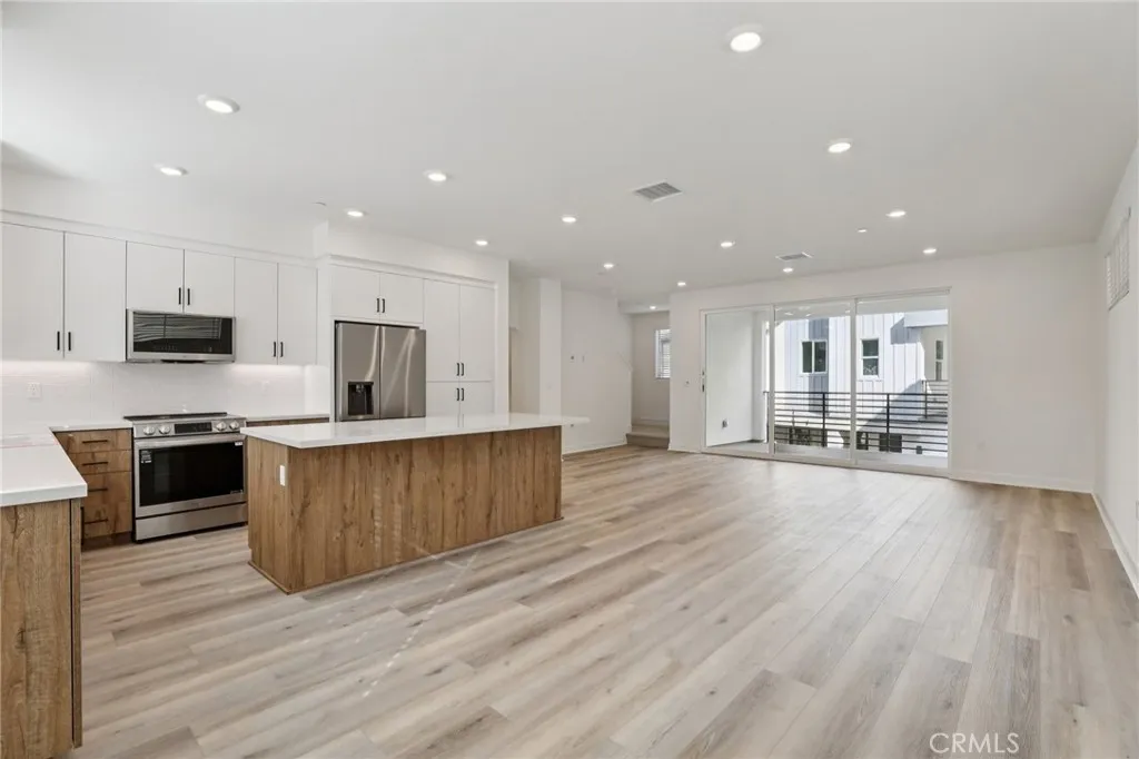 Thoughtfully upgraded and move-in ready, this all-electric 3-story home at The Heights at Ponte Vista features approximately 1,875 sq. ft. of designer-curated living space. The kitchen is a true showstopper, featuring quartz countertops in Crisp Stria, a full tile backsplash in White with Arctic White grout, and Metro Slab cabinet doors in a sophisticated split finish — Tuscany Cypress lowers paired with Satin White uppers at the island and primary suite. Stainless steel appliances include a slide-in induction range, an over-the-range microwave hood, and a refrigerator. Upgraded LVP flooring runs through the main living level and staircase, designer tile anchors all bathrooms and the laundry room, and plush upgraded carpet finishes the bedrooms. The living room opens through a 3-panel multi-slide door to a private deck — perfect for California indoor-outdoor living. Matte black hardware, plumbing, and shower enclosures highlight the upgrades, and Bath 3 features a tiled shower. A laundry closet with included stacked washer and dryer is conveniently located on the third floor. The home features whole-house faux wood blinds in white. Bedroom 4 is pre-wired for a future kitchenette — ideal for multigenerational living or a private guest suite. The common area is a true resort-style amenity with an association Pool, Spa, Fitness Center, Fire Pit, Recreational Trails, and Open Space. Photos and virtual tour are of the Plan 2 model home and used for representational purposes only.