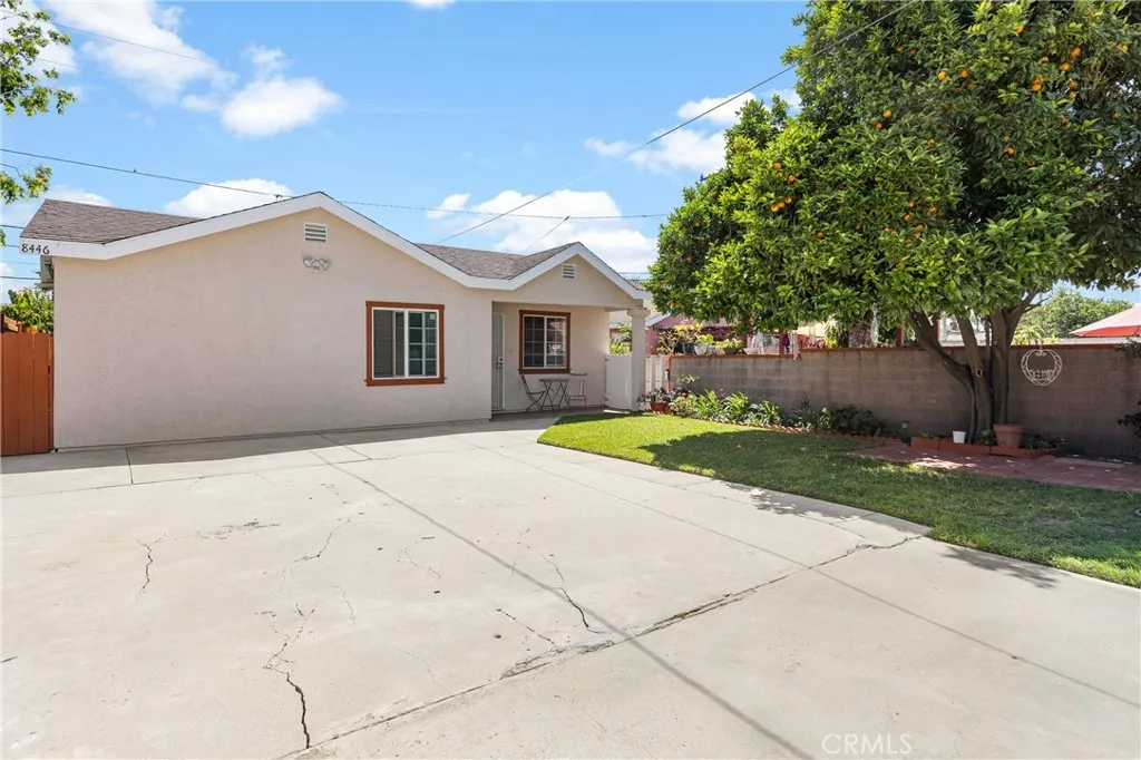 SPANISH STYLE, Warm and Inviting fully permitted property located in the City of South Gate, perfect for multi-generational living or rental income! This well-maintained property features a 1,455 sq ft SFR (3BD/2BA) plus a 970 sq ft ADU (3BD/1BA) on a 6,440 sq ft lot — totaling approx. 2,425 sq ft with 6BD/3BA. Main House (8446): Beautiful original hardwood floors, living room, formal dining room, breakfast nook, abundant natural light, upgraded windows, and plenty of closet space. The master suite and second bedroom offer direct access to the backyard. Additional features include indoor laundry, tankless water heater, 2-year-old roof with 30-year warranty, central A/C & heating system, inviting front porch, long driveway with parking for 3–4 cars, and a spacious backyard with lemon, orange and tangerine trees — perfect for relaxing or entertaining. ADU (8446-B): Fully permitted with its own address and electrical meter. Offers 3 bedrooms, 1 3/4 bath with grab bars for seniors, kitchen with ceramic counters and laminate flooring, central A/C & heating, water heater, laundry hookups, 2 front parking spaces, private yard space with lemon tree and storage. It is conveniently located near shopping, schools, churches and parks. One block away from City Hall and Police Department. Walking distance to two elementary schools, one middle and one high school. South Gate city and Metro transportation. A wonderful opportunity with flexibility and comfort!