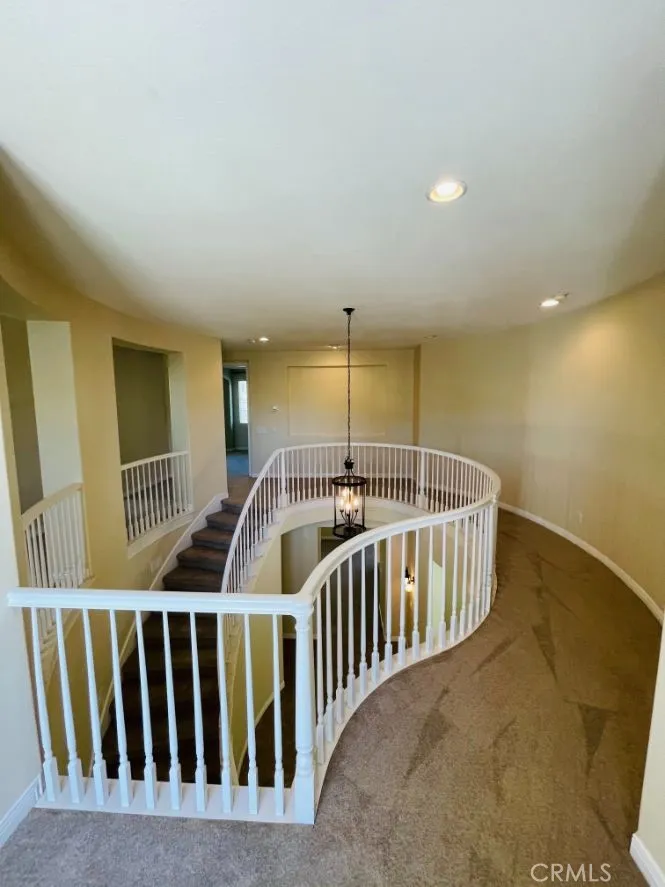 ABSOLUTELY STUNNING 5 bedroom, plus loft area and balcony, 4-1/2 bath, 3 car tandem garage, quiet cul-de-sac, approx. 3535 sq/ft home in the desirable gated community of Promontory Ridge in San Elijo Hills. The downstairs has an open floor plan with separate living and family rooms each with fireplaces, formal dining, kitchen with breakfast bar, separate kitchen dining room area with ample storage, laundry room with wash basin and storage cabinets, 1/2 bath for guests and an additional 3/4 bath with shower adjacent to the downstairs bedroom. The gourmet kitchen has ample cabinet space for storage and island. There is new interior and exterior paint, tile flooring throughout the main walkways downstairs, kitchen and all bathrooms and newer carpet throughout the remainder of the home. The upstairs has 4 bedrooms including the huge primary suite with retreat and a giant walk in closet. One of the other bedrooms has it's own full bath and the other 2 bedrooms share a Jack & Jill bath. The loft area has lots of storage and a double door balcony overlooking the front yard and neighborhood. This home is walking distance to San Elijo Elementary and Middle Schools and parks (paved path with no vehicles), local shops, restaurants and grocery store. The community has walking trails and so much more! The front and back yards are fully landscaped and the back yard has a large patio area that is shaded from the home and there are no homes directly behind for privacy! The back yard has views of the natural hillside landscape...ready for your patio set and BBQ! This home is Gorgeous!