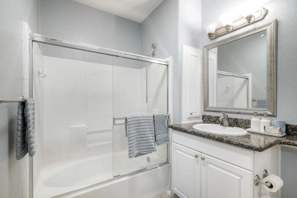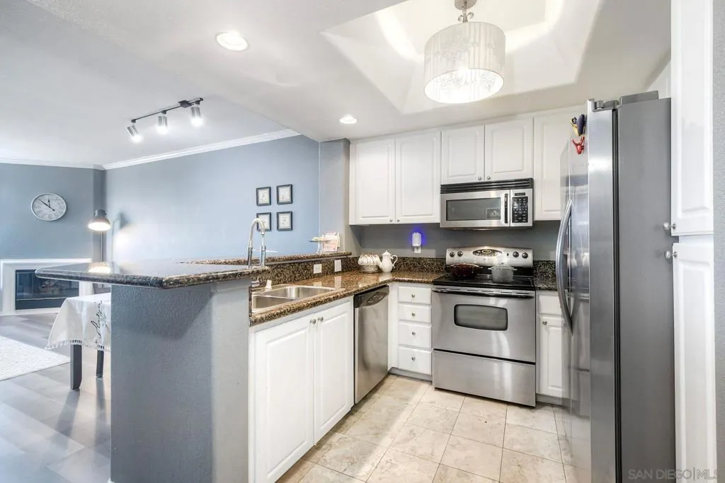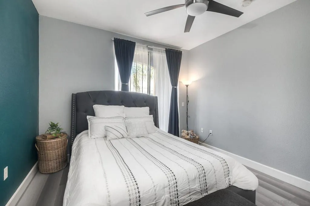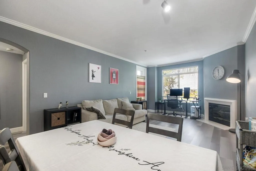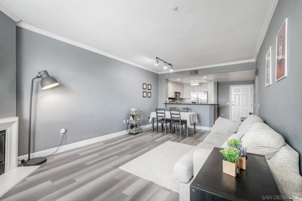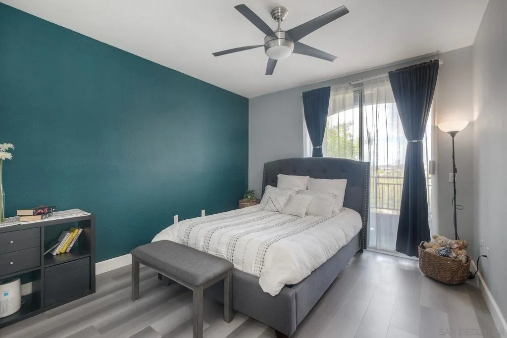 Experience the pinnacle of resort-style living in this beautifully updated interior unit at Regents La Jolla, perfectly positioned in the heart of UTC with convenient elevator access. The home showcases a modern aesthetic, from the gourmet kitchen featuring white Shaker cabinetry, granite countertops, and stainless steel appliances to the sun-drenched living room with stylish wood-plank flooring, crown molding, and a cozy corner fireplace. The serene bedroom serves as a private retreat with a striking teal accent wall, a modern ceiling fan, and direct access to a private balcony. For ultimate convenience, the unit includes central climate control, an in-unit laundry suite, and two dedicated parking spaces in a secure, gated underground garage. Residents enjoy a comprehensive suite of luxury amenities, including two resort-style pools with cabanas and tiki bars, a premier fitness center, BBQ areas, and an on-site movie theater. Ideally located just minutes from UCSD, Westfield UTC Mall, and iconic La Jolla beaches, this home offers a seamless blend of modern luxury, security, and world-class convenience.