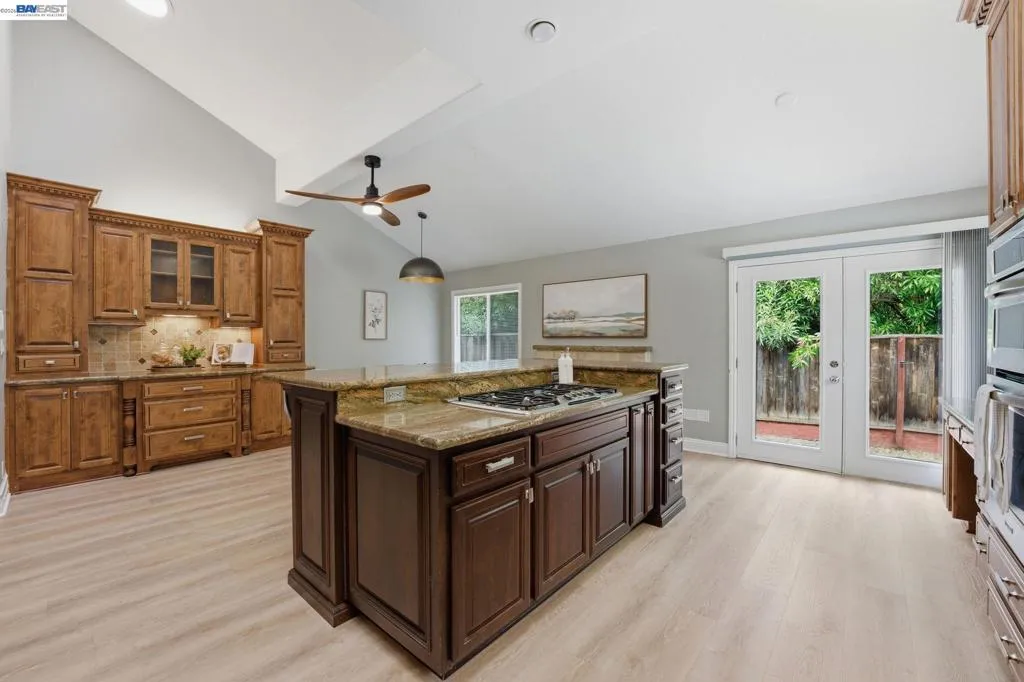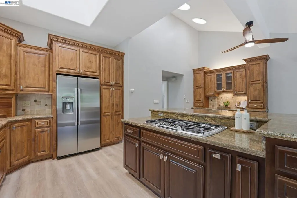 Tucked at the end of a court in one of Walnut Creek's most sought-after foothill neighborhoods, this single-story, 4-bedroom, 2-bath home sits where refined living and the lifestyle people actually move to the East Bay for come together. The Twin Ponds Loop Trailhead for Shell Ridge Open Space sits at the end of Whitecliff Way itself, putting 1,400 acres of open space and 31 miles of trails literally at your door. Shell Ridge stretches from the heart of Walnut Creek all the way to the base of Mount Diablo, with hiking, biking, and riding through oak woodlands and open terrain. You don't drive to nature here. Nature is the neighborhood. Rudgear Park is nearby for tennis and pickleball, and Round Hill Golf and Country Club is just minutes away. Downtown Walnut Creek, with its upscale dining, Broadway Plaza shopping, Whole Foods, and the Lesher Center for the Arts, is a short drive west. Interstate 680, Highway 24, and BART are all easily accessible for commuters and remote workers alike. Inside, 2,068 square feet of well-appointed living space features hardwood flooring throughout. No carpet, no visual breaks. Just warm, durable floors that carry a clean aesthetic through every room. The kitchen is the social center of this home. An open layout with a central island creates space to gather and entertain without crowding. The 5-burner gas built-in stove, full stainless steel appliance package, and classic granite countertops matched precisely to the cabinetry give the space a cohesive, intentional look. Built-in oven and microwave keep counters clear. Cabinet storage is generous throughout. Four bedrooms offer flexibility for a home office, gym, or guest suite. Two full bathrooms are well-positioned to serve the layout without bottlenecks. Outside, a private pool anchors the backyard, delivering the kind of outdoor space that earns its keep year-round in the East Bay's mild climate. The court location keeps traffic minimal and privacy high. The neighborhood features wide streets, maintained green belts, trails, and a community pool through a twice-yearly HOA, keeping the surroundings as polished as the home itself.