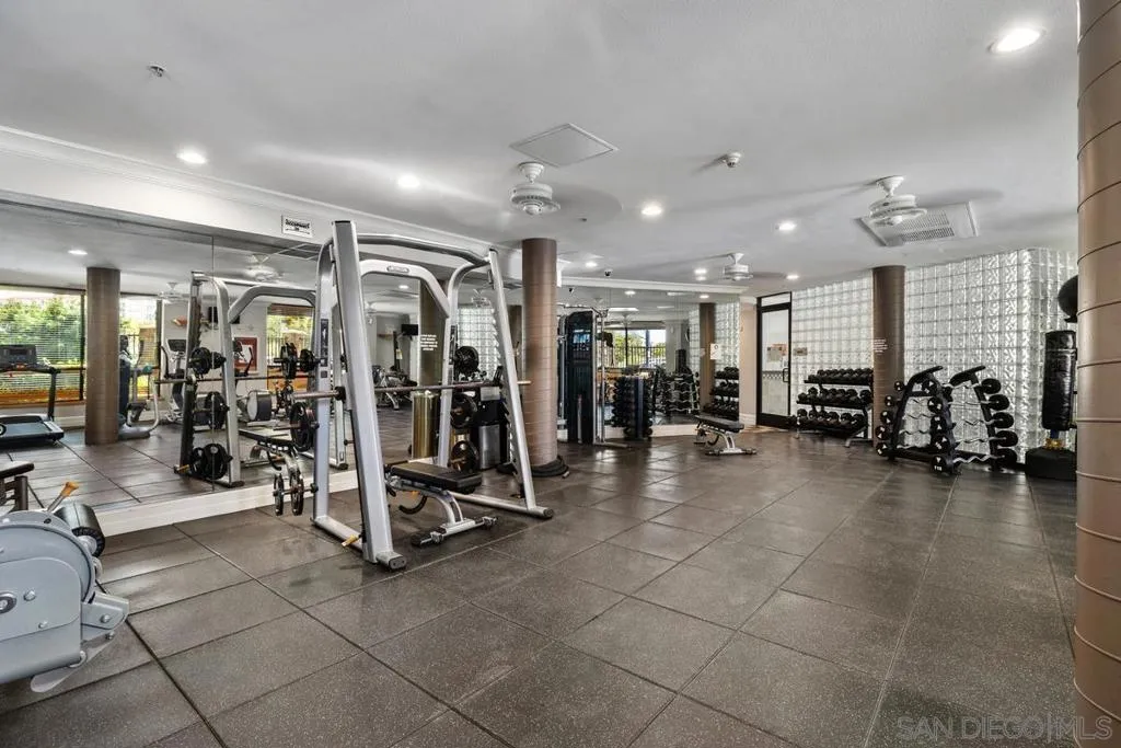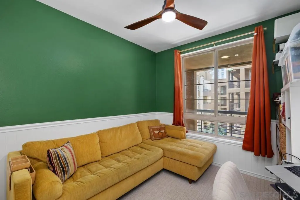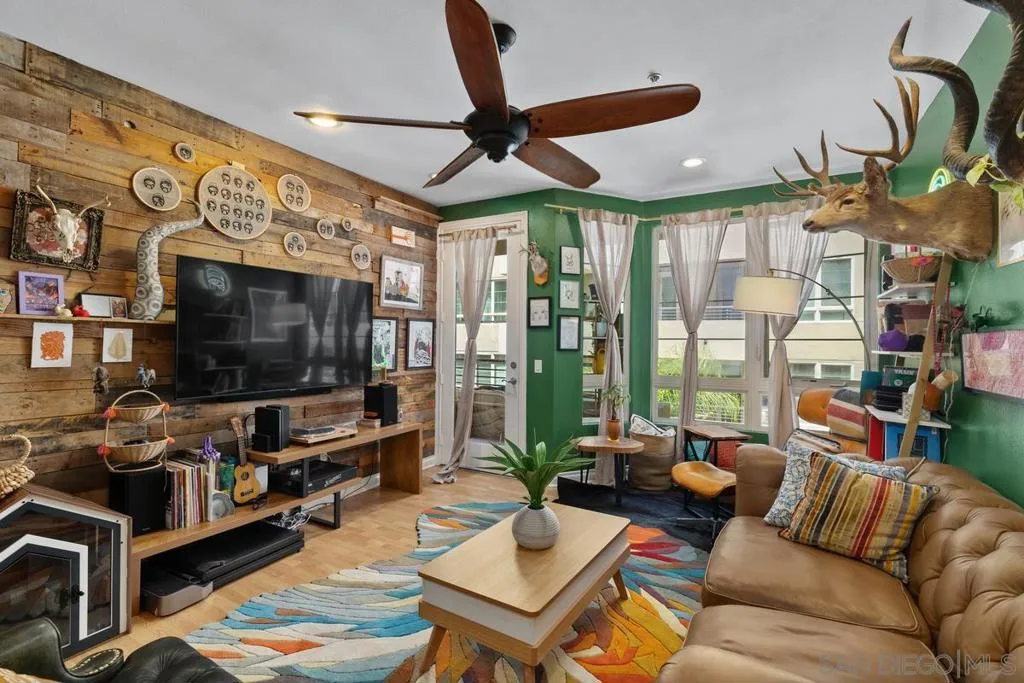 Beautiful, move-in-ready luxury residence in Union Square, ideally located in the vibrant and highly sought-after East Village of downtown San Diego. This bright, inviting home features wood laminate flooring, recessed lighting, and a thoughtfully designed open floor plan. The living area includes a custom accent wall and opens to a private patio overlooking the community—perfect for indoor-outdoor living. The kitchen offers granite countertops, European-style cabinetry, and pendant lighting, flowing seamlessly into the dining and living areas. The layout includes two bedrooms and two full baths in a desirable dual primary suite design. The main bedroom features French doors to a balcony, while the en-suite bath includes a granite vanity and walk-in closet. Additional highlights include in-unit laundry, two tandem parking spaces, and private storage. Enjoy resort-style amenities: fitness center, clubroom, spa, sauna, BBQ area, and secure access. Close to dining, shopping, Petco Park, Gaslamp Quarter, Little Italy, Balboa Park, and more.
