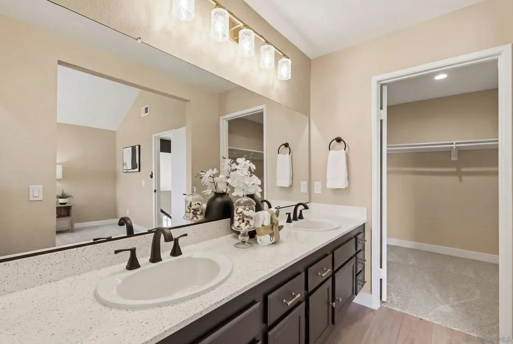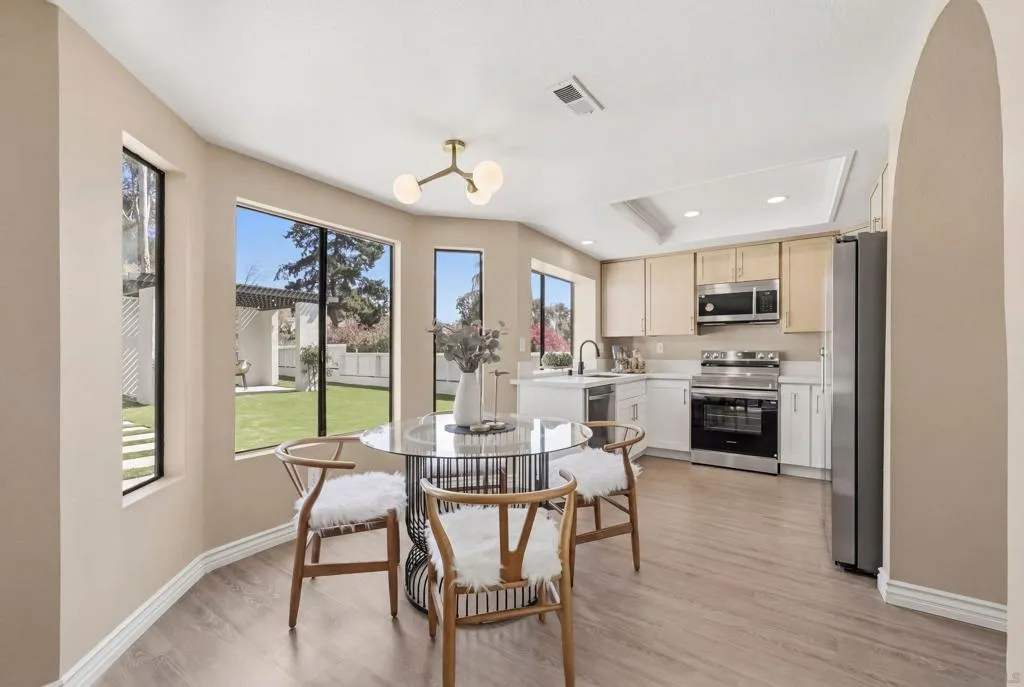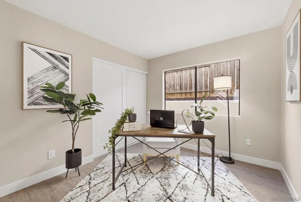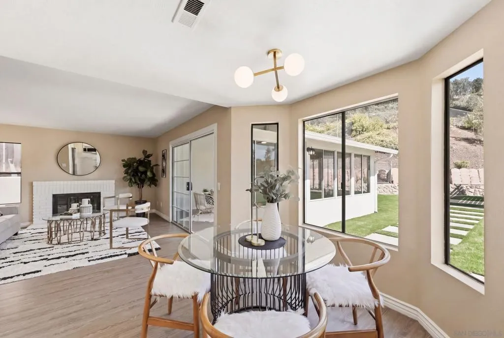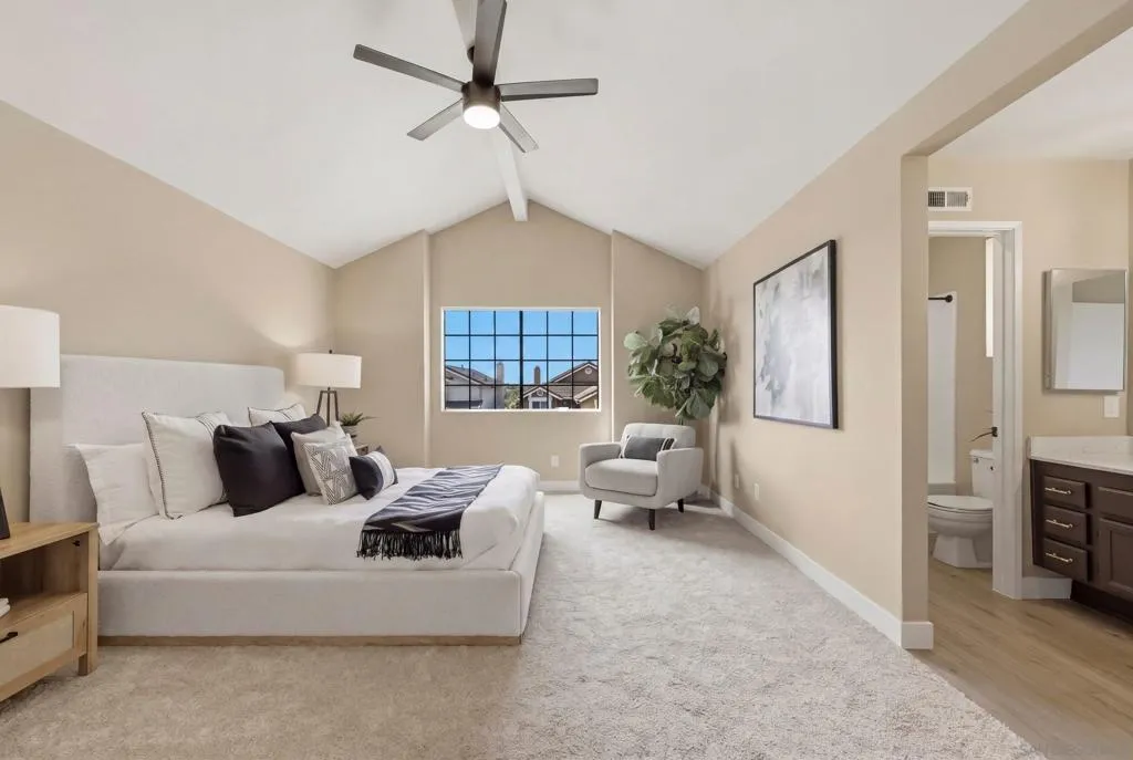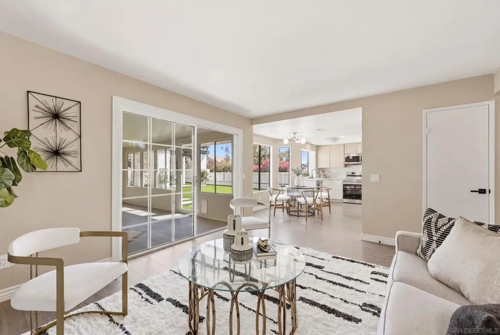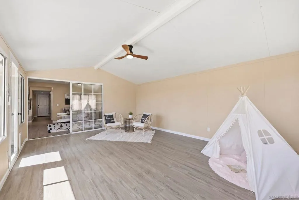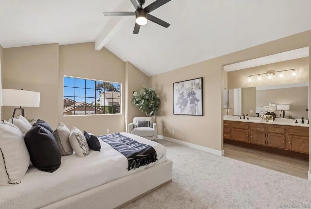 Some homes are just houses. This one feels like a fresh start. Nestled in coveted Park Village, this beautifully refreshed home greets you with soaring ceilings, sun-drenched rooms, and brand-new finishes throughout — new paint, new flooring, new kitchen, new light fixtures. Every detail whispers move right in. The heart of the home opens to a spacious sunroom bathed in natural light, flowing seamlessly to a private, low-maintenance backyard retreat — lush artificial turf, a charming pergola draped in string lights, and blooming bougainvillea framing it all. Upstairs, a vaulted primary suite offers the quiet sanctuary you've been dreaming of. This is the one you've been waiting for. No HOA. No Mello Roos. Close to stores, restaurants, library, fire & police stations, and YMCA. Award winning Poway Unified Schools. Home Upgrades: New interior paint throughout: walls, baseboards, stairs, & bathroom cabinetry 2026. New exterior paint including front door, garage door, body and trim 2026. Kitchen remodel including new cabinetry, quartz countertops, appliances, light fixtures, hardware, sink, garbage disposal, and faucet 2026 New LVP flooring in up baths with new faucets, sinks, & accessories 2026. New light fixtures throughout 2026. New LED recessed lighting throughout 2026. New interior doorknobs 2026. New ceiling fan in sunroom 2026. New closet doors in down and up guest bedrooms 2026. New garage doors 2026 New artificial turf with a landscape refresh 2026. Newer LVP flooring downstairs installed a few years ago. Schools: Canyonview Elementary, Mesa Verde Middle, Westview High