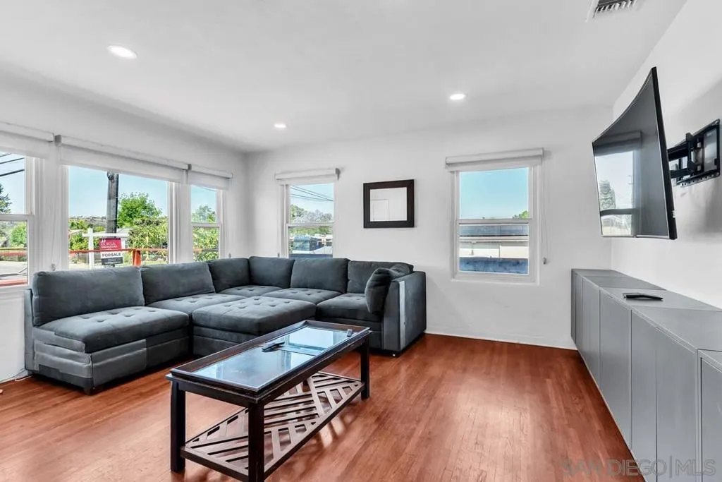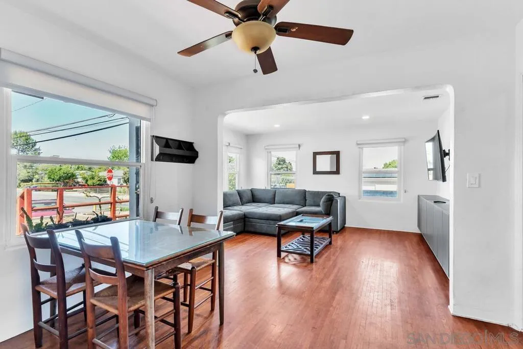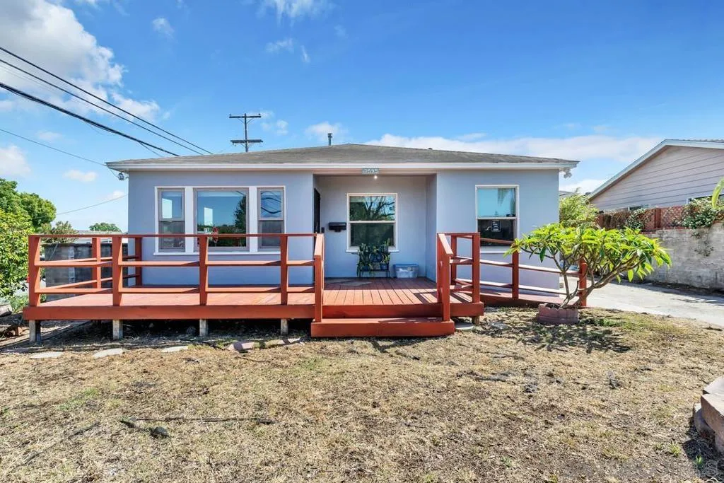 Welcome to the heart of Lemon Grove! This charming 3-bedroom, 2-bath home offers comfort, character, and incredible potential including a possible 4th room or ADU opportunity. Situated on a desirable corner lot, the property features a welcoming front deck and yard space. Step inside to a light and bright interior where the living room opens to the dining area and flows seamlessly into the kitchen creating an easy connected layout. The kitchen is spacious and elongated, offering plenty of room to work while maintaining its original charm. The spacious primary bedroom offers plenty of room to relax and unwind. One of the standout features is the detached garage, complete with a bonus room and separate exterior entrance—ideal for a potential ADU, guest suite, home office, or creative space. The expansive yard is a blank canvas ready for your vision, with convenient side gate access from the street that's perfect for RV parking, trailers, or additional storage. Located in the vibrant and growing downtown Lemon Grove area, you’ll enjoy close proximity to shopping, dining, and easy freeway access. Whether you're looking to personalize your next home or invest in future potential, this property is full of opportunity.