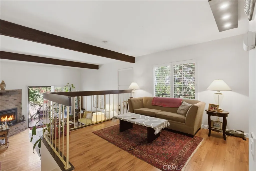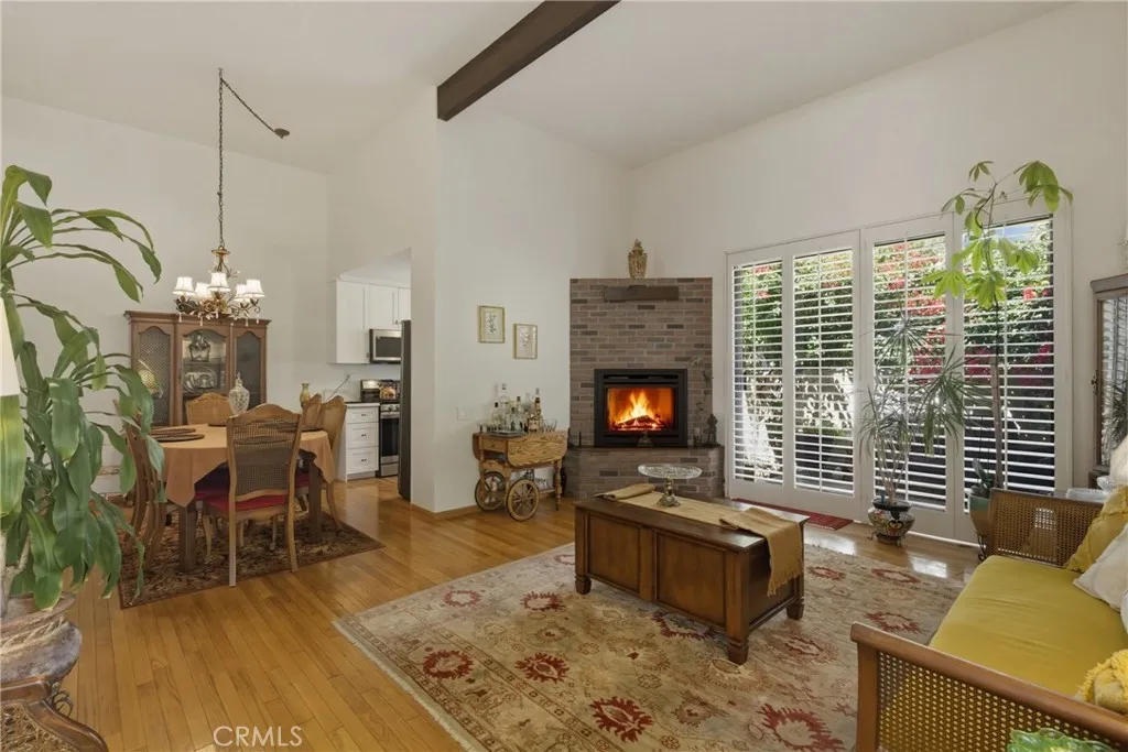 Stunning remodeled townhome in the highly sought-after Dove Creek community! This rare end-unit offers exceptional privacy and a true resort-style living experience! Step inside to an amazing split-level open floor plan highlighted by soaring wood-beamed ceilings, abundant natural light, and a spacious living room with a cozy fireplace! A versatile loft-like area overlooks the main living space...perfect for a home office, family room, or guest space! Beautifully remodeled kitchen features quartz countertops, newer appliances, and a sleek, modern design ideal for both everyday living and entertaining! Gorgeous primary suite serves as a private sanctuary, complete with a renovated bath and a large walk-in closet! Sliding doors off the living room open to an expansive private patio—perfect for outdoor dining, BBQs, and gatherings! Additional highlights include private in-unit laundry, 2-car garage with direct access, EV outlet, and hardwood flooring! Ideally situated in one of the best locations within the complex, residents enjoy lush, park-like grounds and resort-style amenities including a pool, spas, and tennis courts! Conveniently located near The Village, Westfield Mall, markets, dining, and endless entertainment options.