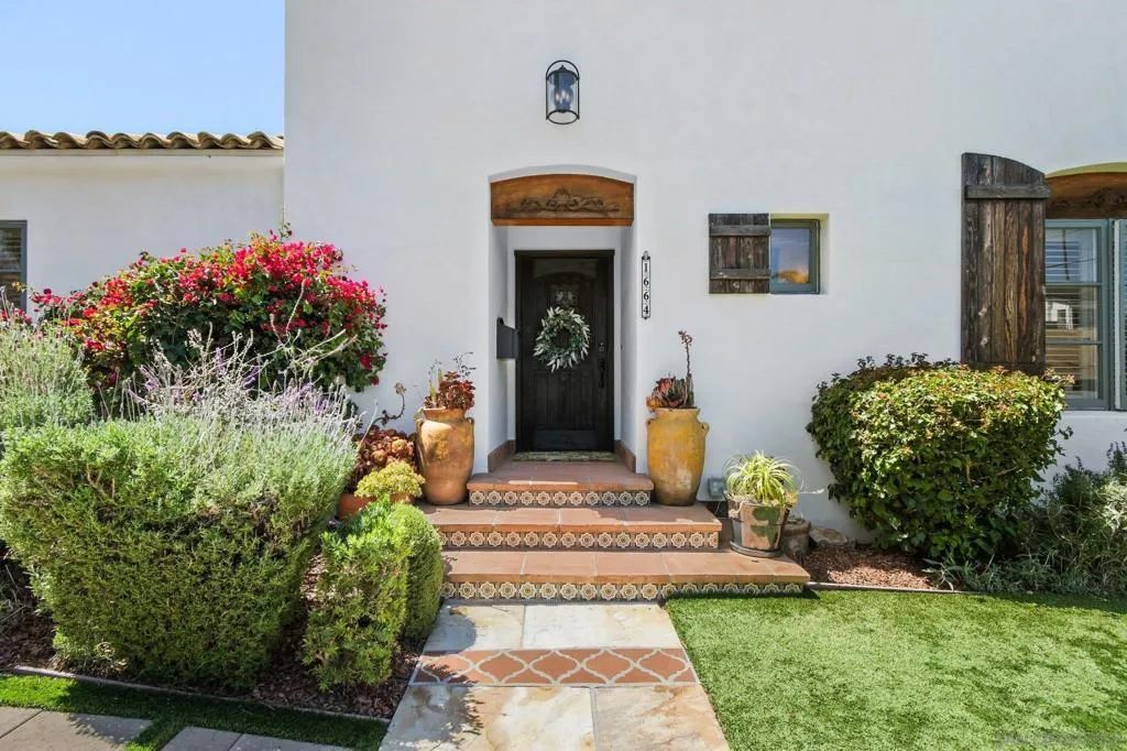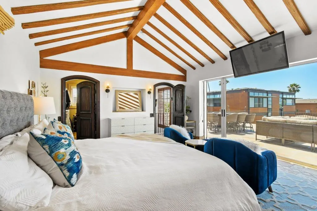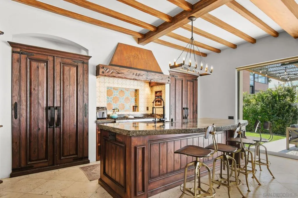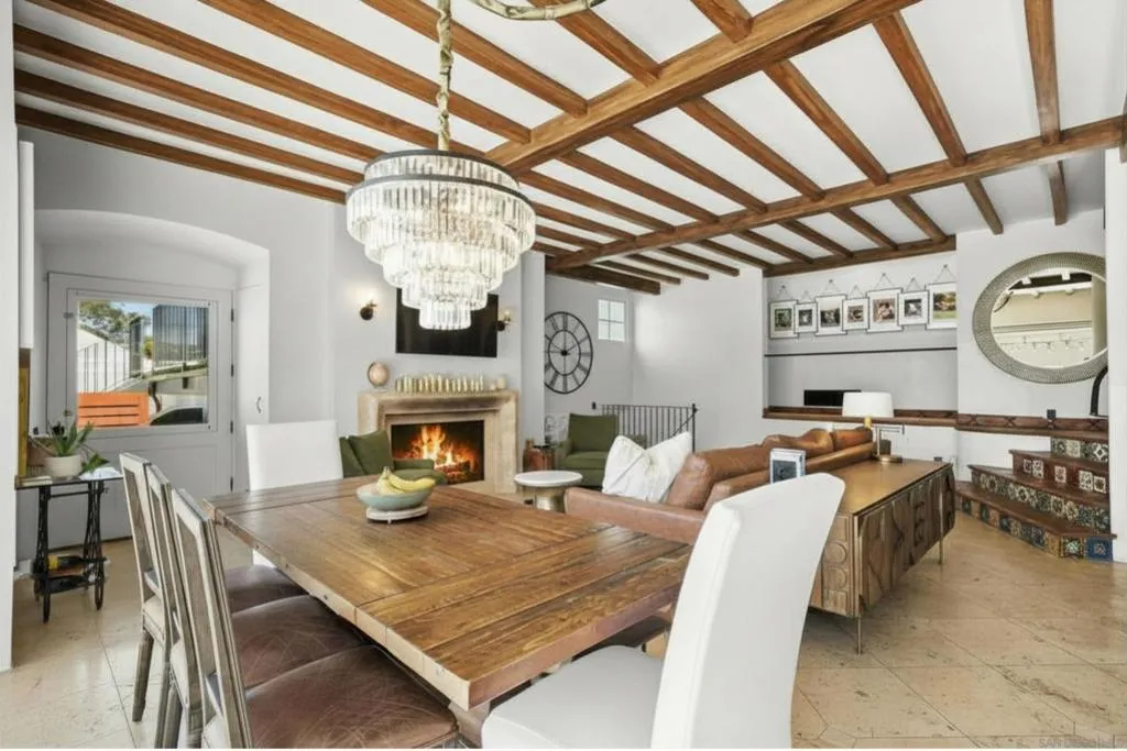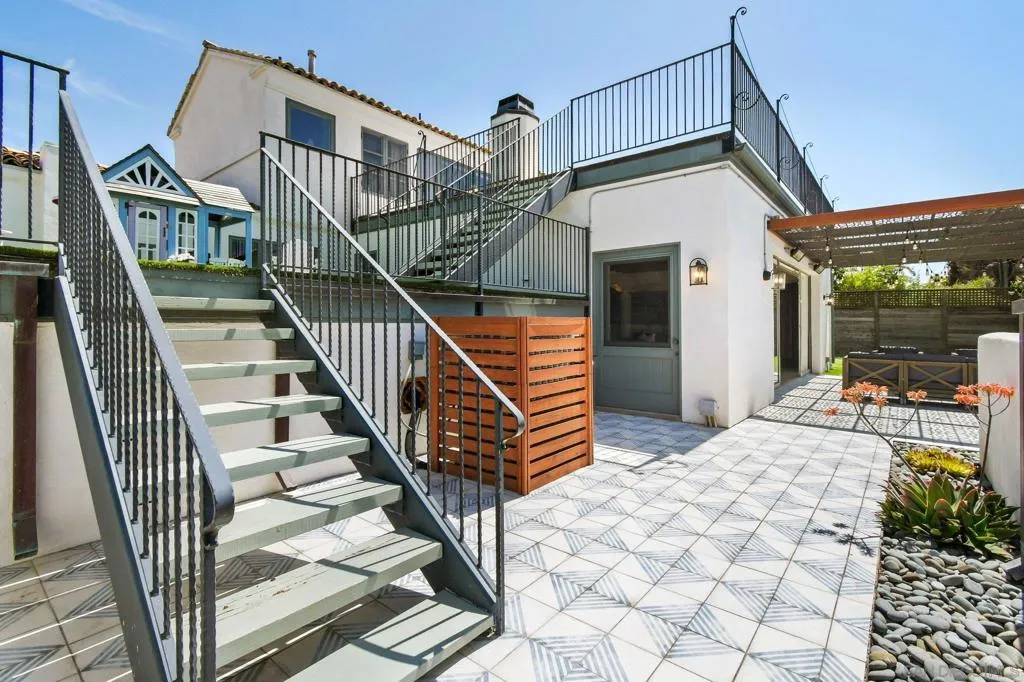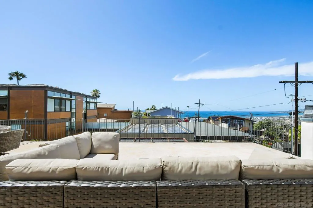 Experience elevated coastal living in this exquisitely custom-built and recently remodeled Spanish-style residence, designed by highly acclaimed architect Tony Crisafi of Island Architects and showcasing breathtaking panoramic views of the Pacific Ocean and Mission Bay. Offering two living areas, five bedrooms, including two en-suite bedrooms, and three and a half baths, this exceptional home is thoughtfully curated with timeless architecture, refined finishes, and elegant detail, blending classic Spanish charm with sophisticated comfort. The gourmet kitchen is beautifully appointed with distinctive granite countertops, premium Thermador appliances, a hammered copper sink, and custom cabinetry featuring a wood-paneled hidden refrigerator and pantry for a seamless, sophisticated design. Exposed beams in the living area and an oversized stone fireplace create a warm, dramatic focal point, while sliding glass pocket doors in both the main living areas and the primary suite provide a seamless indoor-outdoor connection. The luxurious primary suite is a private sanctuary with sweeping ocean views, direct access to the upper view deck, and a spa-inspired en-suite bath featuring a copper soaking tub and a stone tile steam shower with dual shower heads. Gracious living and dining spaces open to a serene private courtyard with lush grass and a tranquil fountain, all connected to the upper deck for unforgettable sunset views and refined entertaining. An attached two-car garage with a Tesla charger adds convenience for modern coastal living. This is the one you’ve been waiting for!
