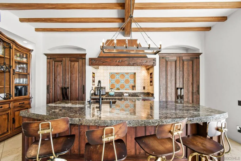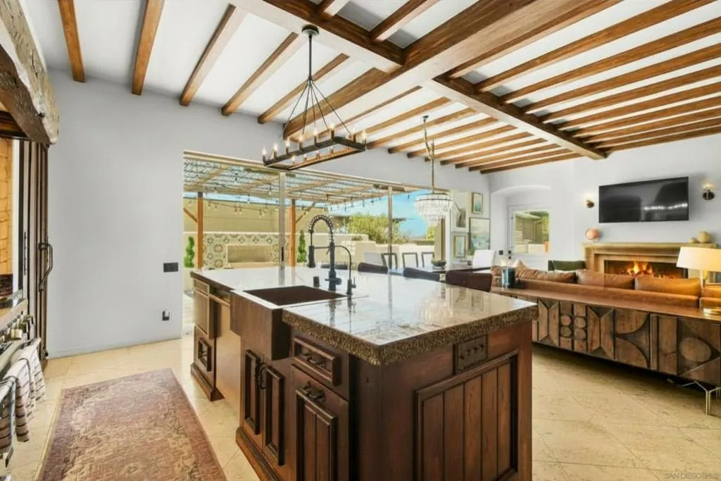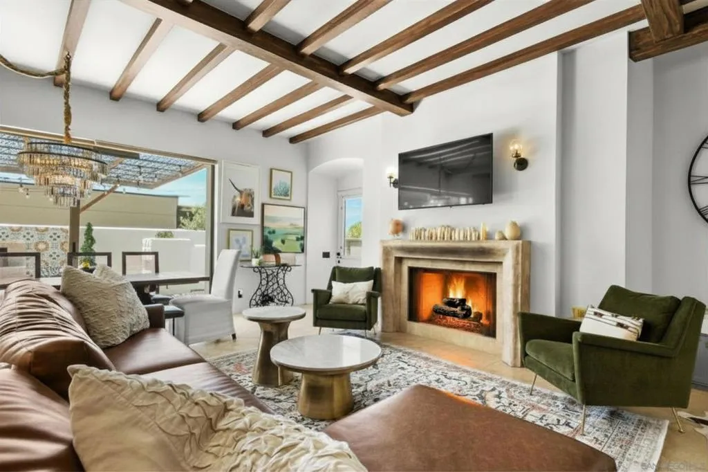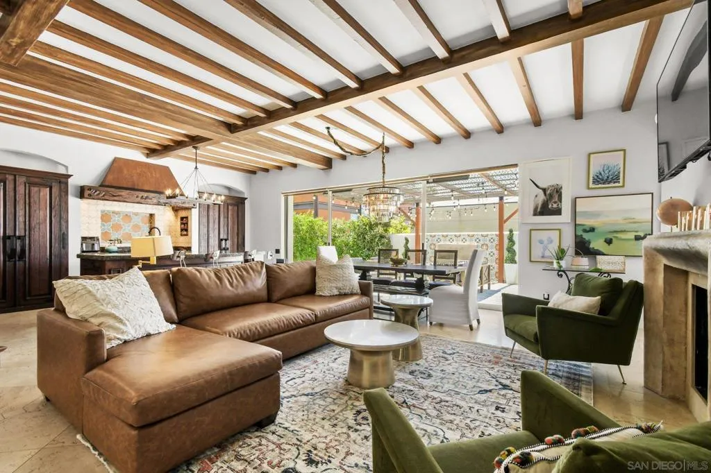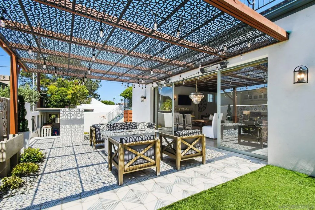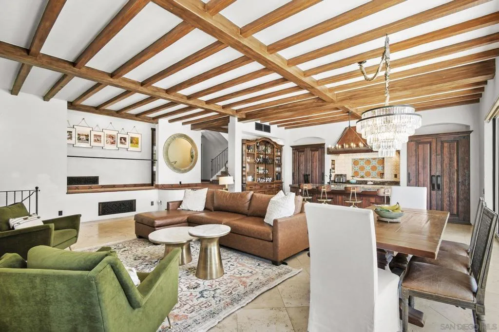 Experience elevated coastal living in this exquisitely custom-built and recently remodeled Spanish-style residence, designed by highly acclaimed architect Tony Crisafi of Island Architects and showcasing breathtaking panoramic views of the Pacific Ocean and Mission Bay. Offering two living areas, five bedrooms, including two en-suite bedrooms, and three and a half baths, this exceptional home is thoughtfully curated with timeless architecture, refined finishes, and elegant detail, blending classic Spanish charm with sophisticated comfort. The gourmet kitchen is beautifully appointed with distinctive granite countertops, premium Thermador appliances, a hammered copper sink, and custom cabinetry featuring a wood-paneled hidden refrigerator and pantry for a seamless, sophisticated design. Exposed beams in the living area and an oversized stone fireplace create a warm, dramatic focal point, while sliding glass pocket doors in both the main living areas and the primary suite provide a seamless indoor-outdoor connection. The luxurious primary suite is a private sanctuary with sweeping ocean views, direct access to the upper view deck, and a spa-inspired en-suite bath featuring a copper soaking tub and a stone tile steam shower with dual shower heads. Gracious living and dining spaces open to a serene private courtyard with lush grass and a tranquil fountain, all connected to the upper deck for unforgettable sunset views and refined entertaining. An attached two-car garage with a Tesla charger adds convenience for modern coastal living. This is the one you’ve been waiting for!