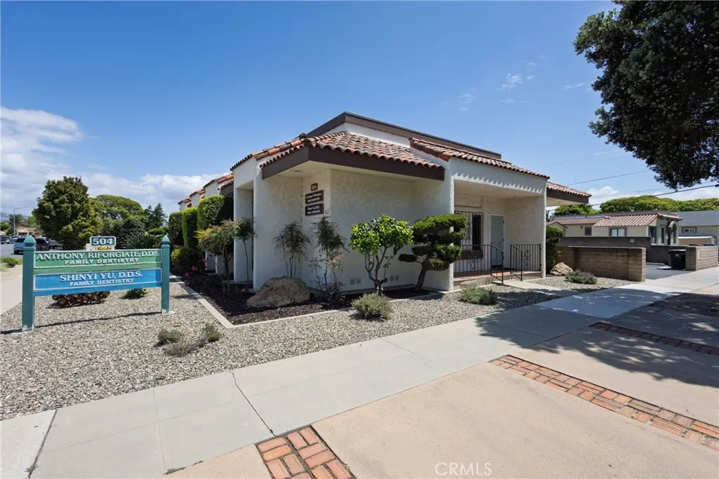Prime Medical/Dental Office in Santa Maria 2340 SF Building on a 7,840 SF Lot | Two-Suite Configuration | Exceptional Location This charming 3,342 square foot professional office building is ideally situated on a 7,840 square foot lot in a highly visible corner location at 504 E Church Street in Santa Maria, California. Designed in the classic Entrada (Mission/Spanish Colonial Revival) architectural style that defines much of Santa Maria's character, the property features a welcoming stucco exterior with a distinctive red tile roof, abundant natural light from numerous windows, and a well-maintained, professional curb appeal. For decades, this building has been home to successful local dental practices. The larger suite (Suite A) has enjoyed a long-term, stable tenant with over 40 years of continuous occupancy, providing immediate income and proven demand. Suite B is currently vacant and ready for your personal touch--perfect for a new tenant or owner-user who wants to customize with paint and flooring of their choice. Flexible Layout & Expansion Potential Currently configured as two separate suites, each with its own reception/waiting areas, exam rooms, work rooms, and support spaces. The building currently offers seven operatory rooms for patient care (four in unit A and three in unit B), but with multiple offices, work rooms, lab areas, two more operatory suites would be an easy conversion for a total of nine operatory suites. Single-user conversion potential: By removing just one wall in the lobby area, the suites can be combined into one large, expansive practice--ideal for a growing dental or medical group. The attached detailed floor plans and 3D renderings illustrate the thoughtful layout and show how the space can be configured for various professional uses. Key Features & Upgrades Abundant natural light throughout thanks to generous windows. Recent upgrades to the building. Ample parking and easy access. Prominent signage opportunities with excellent street visibility. This is a rare opportunity to acquire a turnkey professional office with strong historical occupancy in a desirable Santa Maria location. The property offers potential for owner financing, making it accessible for qualified buyers looking to owner-occupy or expand their practice. See the attached high-resolution photos, floor plans, and 3D renderings for a complete view of the interior and exterior.