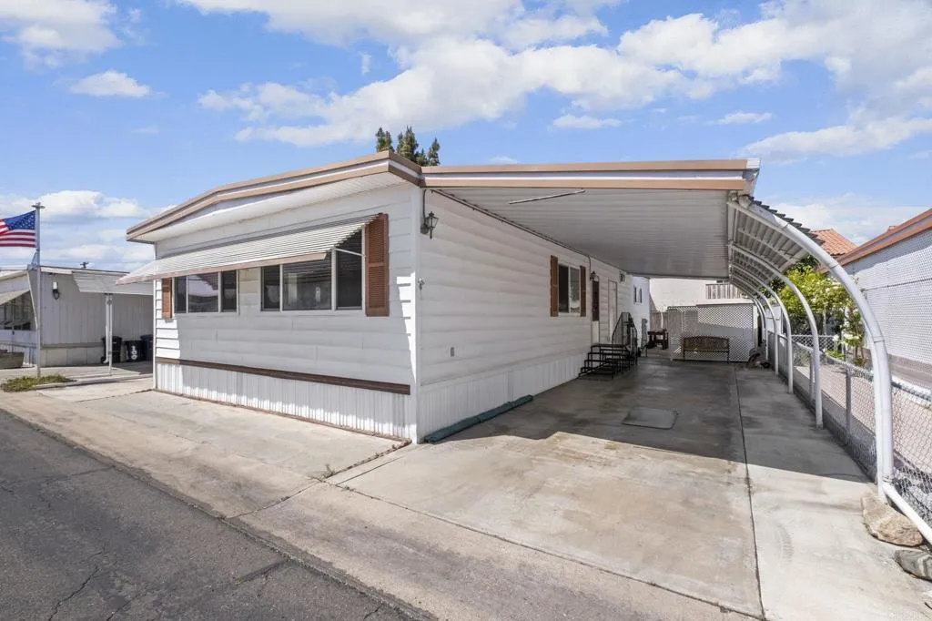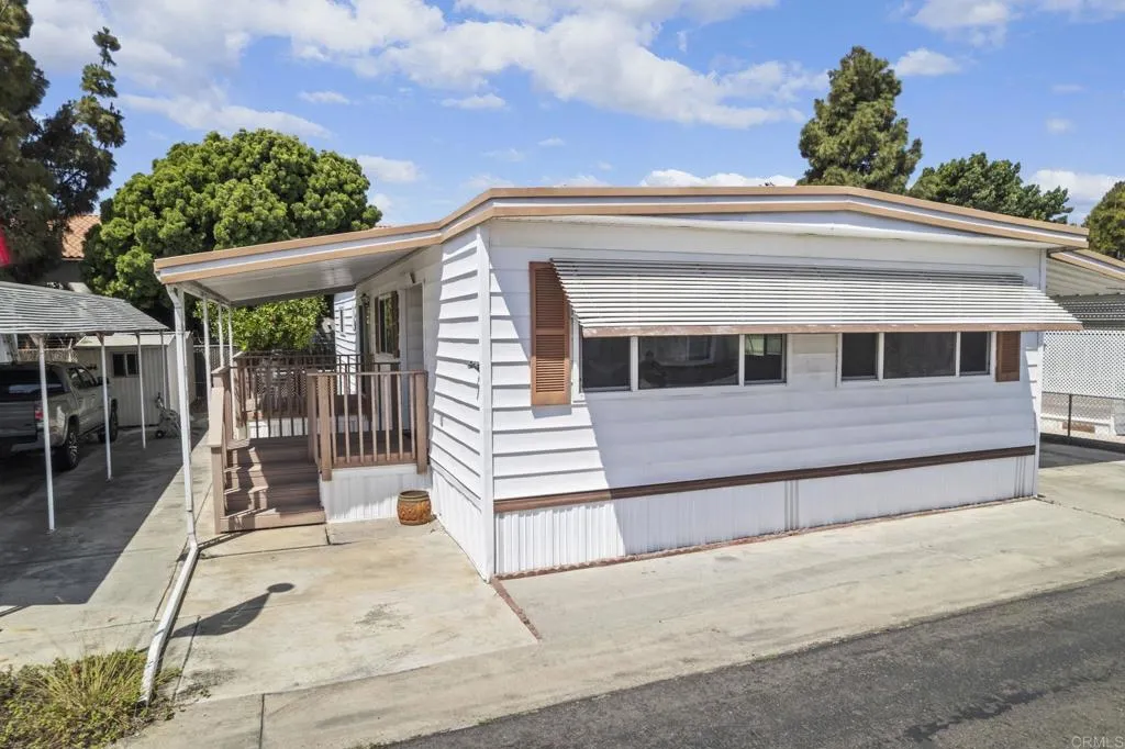 Welcome to Orange Tree Mobile Home Park, a private gated 55+ community where you own both home and land—an incredible opportunity for low-maintenance living at a great value! This lovingly cared-for home has been in the same family since it was purchased new, and reflects true pride of ownership throughout. Step inside to an inviting open floor plan featuring a spacious living room, dining area, and separate family room. Natural light fills the home through dual-pane windows, enhancing the fresh interior paint and bright, airy feel. Both generously sized bedrooms offer large closets, ceiling fans, and direct access to their own beautifully upgraded bathrooms, providing comfort and privacy for residents and guests alike. Additional highlights include indoor laundry with washer and dryer included, a whole-house water filtration system, and Solatubes for additional natural light. Orange Tree residents enjoy a low $105 HOA fee that covers amenities including: gated entry, a car wash station, extra laundry facilities, and two pools with clubhouses with full kitchens, which are available for private party rentals. On-site RV parking is available for only $75 per month. It's also a great location, with easy access to the 5 and 805 freeways. Less than 2 miles to San Diego Bay, it's a short 15 minute drive to Imperial Beach. To top it off, the property includes two large storage sheds. This is a rare chance to own in a well-maintained, amenity-rich community with land ownership included and a very low monthly fee!