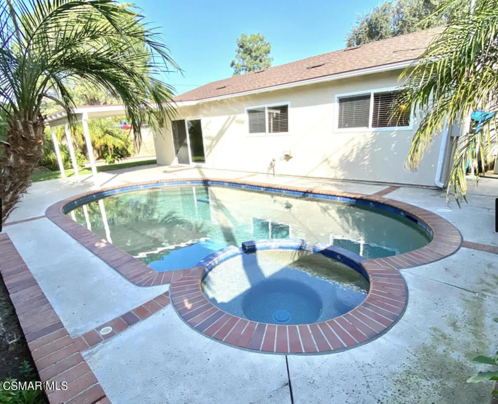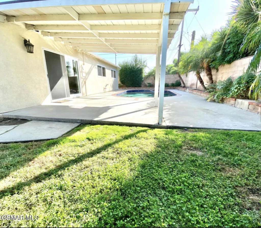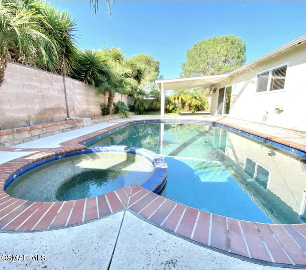 This beautiful pool home shows clean and bright!! Home has gated pool and spa, 4 bedrooms and 2 bath. The garage has been converted into a large bedroom with walk-in closet. New carpet and freshly painted. Upgraded kitchen with newer cabinets and granite counters. Property has a large carport. This is a must see and will go quickly.