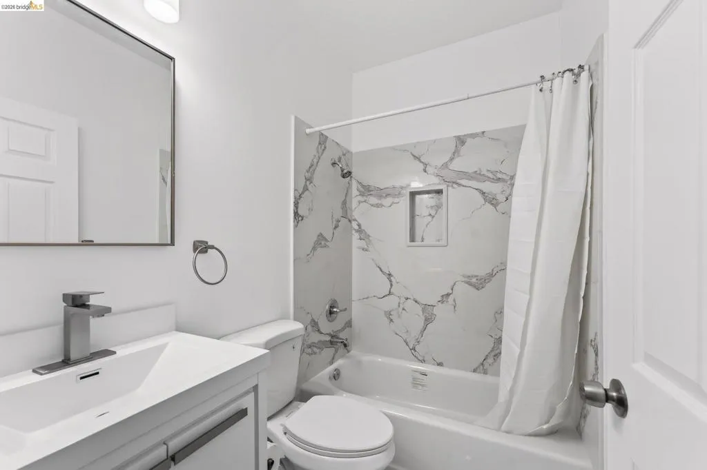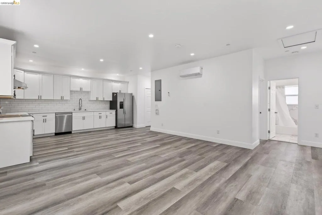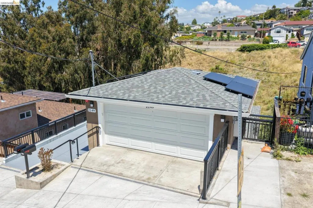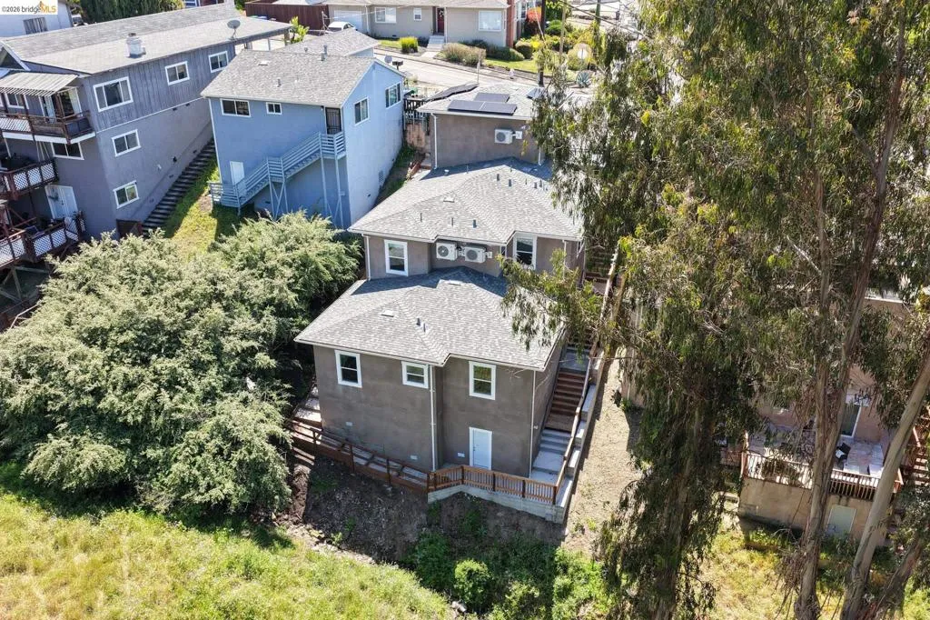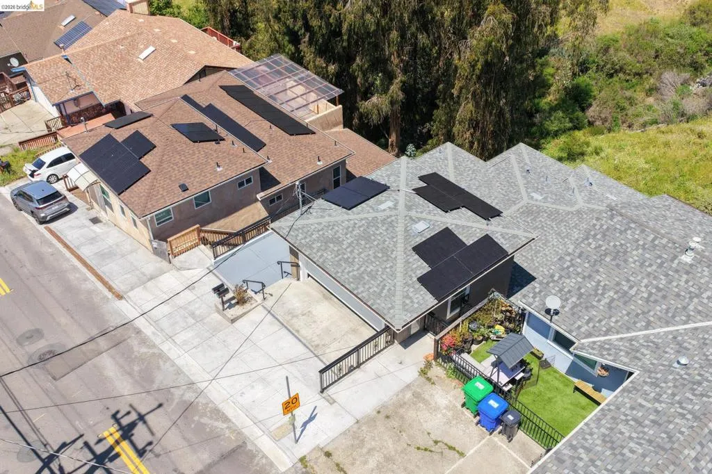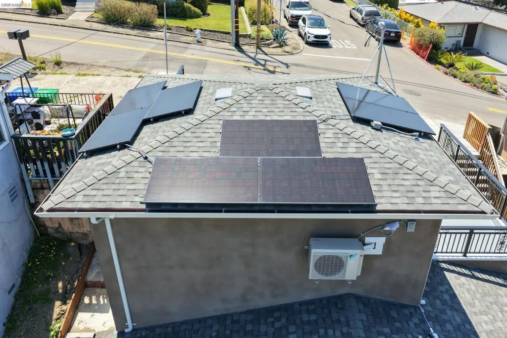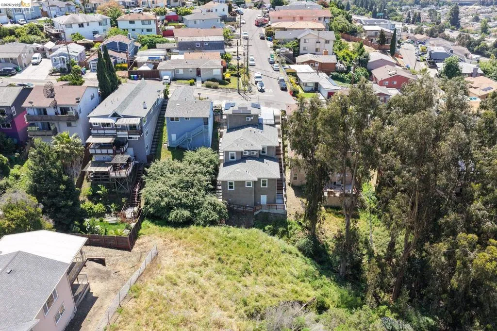 Perched on a downslope lot, this newly built contemporary home blends clean design with functional living and sweeping neighborhood views. Located in the desirable San Leandro area, this thoughtfully designed residence features 3 spacious bedrooms and 3 full bathrooms, plus a versatile 1 bed 1 bath ADU (Accessory Dwelling Unit)—ideal for extended family, guests, or rental income. The main home showcases an open-concept layout filled with natural light, wide-plank laminated flooring, and a seamless flow between living, dining, and kitchen spaces. The modern kitchen is a standout, featuring sleek white shaker cabinetry, quartz countertops, stainless steel appliances, and ample storage—perfect for both everyday living and entertaining. Each bedroom is generously sized, including a well-appointed primary suite designed for comfort and privacy. All three bathrooms feature contemporary finishes and stylish fixtures. Step outside to enjoy multiple levels of usable outdoor space, including a large patio area and elevated entry, offering both privacy and curb appeal. The downslope design enhances separation between living spaces and the ADU, maximizing flexibility. The detached ADU provides its own private entrance and living space—perfect for multigenerational living, a home office, or additional rental income potential. Conveniently located near major freeways, shopping, and dining, this property offers the perfect balance of modern living and accessibility. A rare opportunity to own a brand-new home with income potential—don’t miss it!