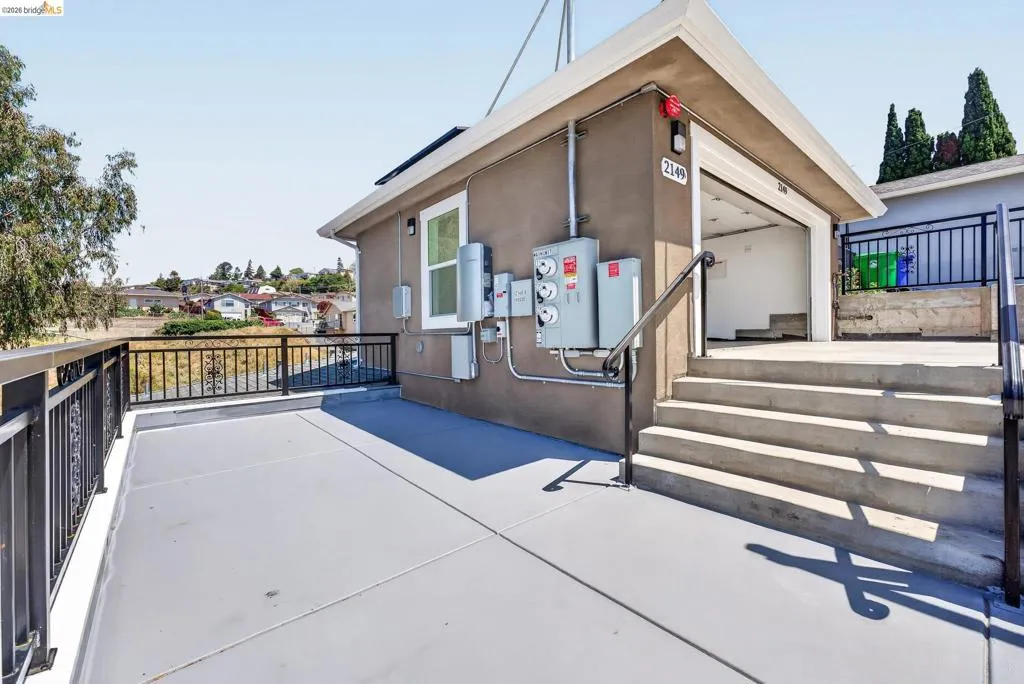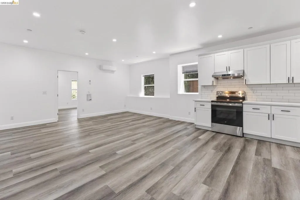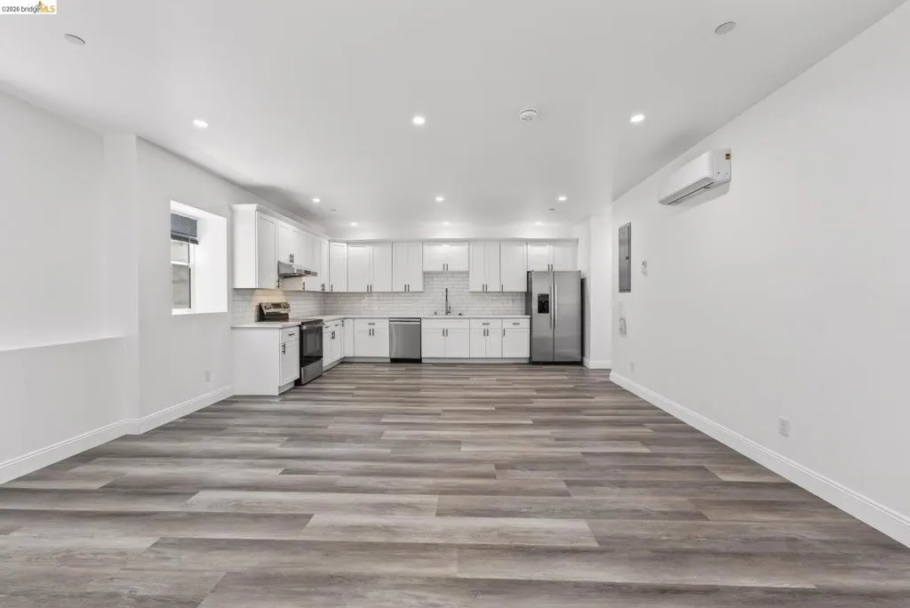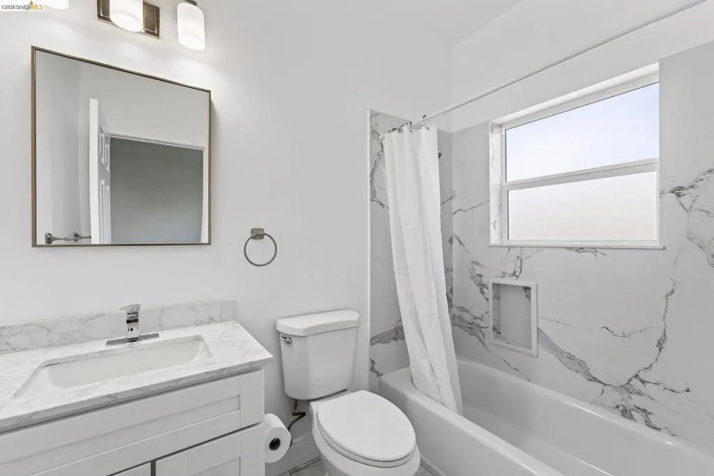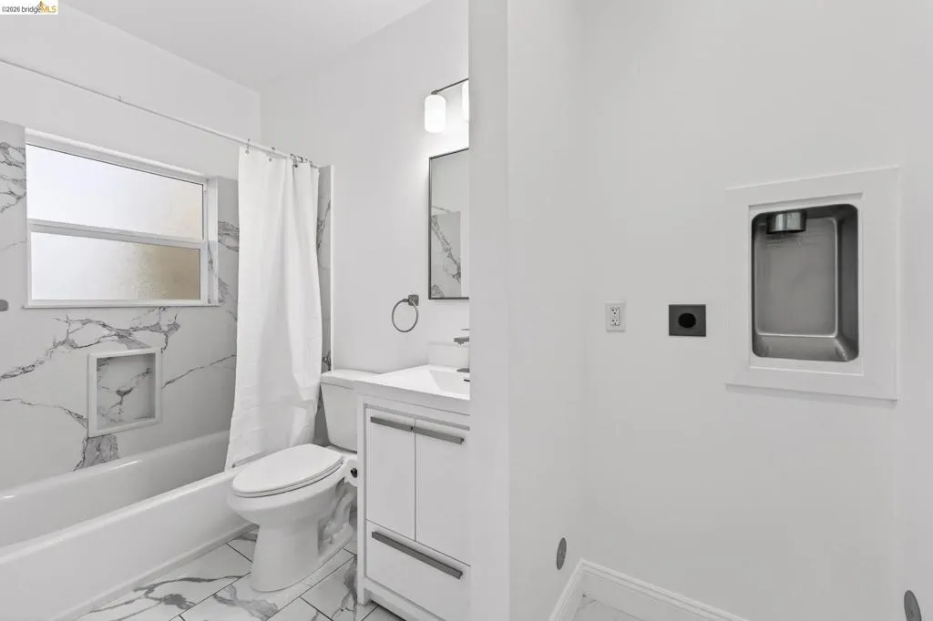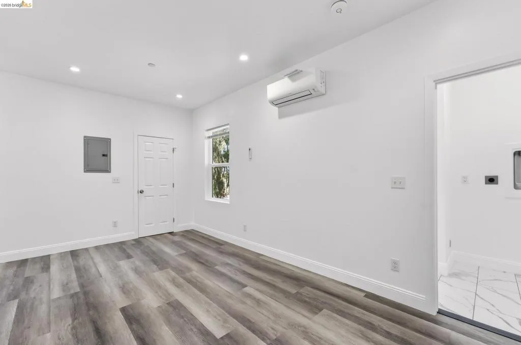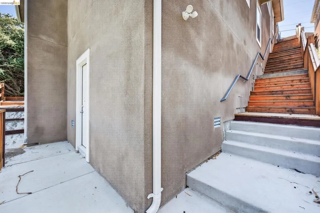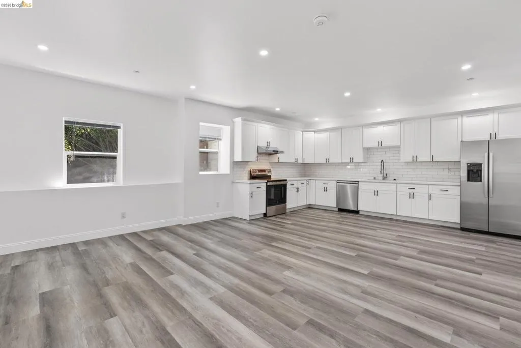 Perched on a downslope lot, this newly built contemporary home blends clean design with functional living and sweeping neighborhood views. Located in the desirable San Leandro area, this thoughtfully designed residence features 3 spacious bedrooms and 3 full bathrooms, plus a versatile 1 bed 1 bath ADU (Accessory Dwelling Unit)—ideal for extended family, guests, or rental income. The main home showcases an open-concept layout filled with natural light, wide-plank laminated flooring, and a seamless flow between living, dining, and kitchen spaces. The modern kitchen is a standout, featuring sleek white shaker cabinetry, quartz countertops, stainless steel appliances, and ample storage—perfect for both everyday living and entertaining. Each bedroom is generously sized, including a well-appointed primary suite designed for comfort and privacy. All three bathrooms feature contemporary finishes and stylish fixtures. Step outside to enjoy multiple levels of usable outdoor space, including a large patio area and elevated entry, offering both privacy and curb appeal. The downslope design enhances separation between living spaces and the ADU, maximizing flexibility. The detached ADU provides its own private entrance and living space—perfect for multigenerational living, a home office, or additional rental income potential. Conveniently located near major freeways, shopping, and dining, this property offers the perfect balance of modern living and accessibility. A rare opportunity to own a brand-new home with income potential—don’t miss it!