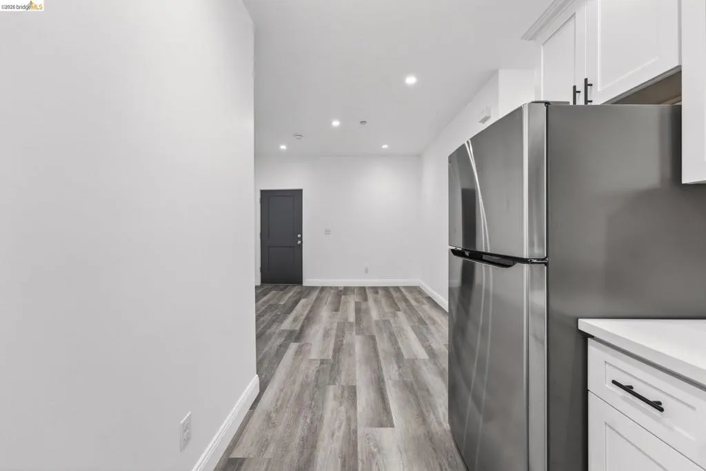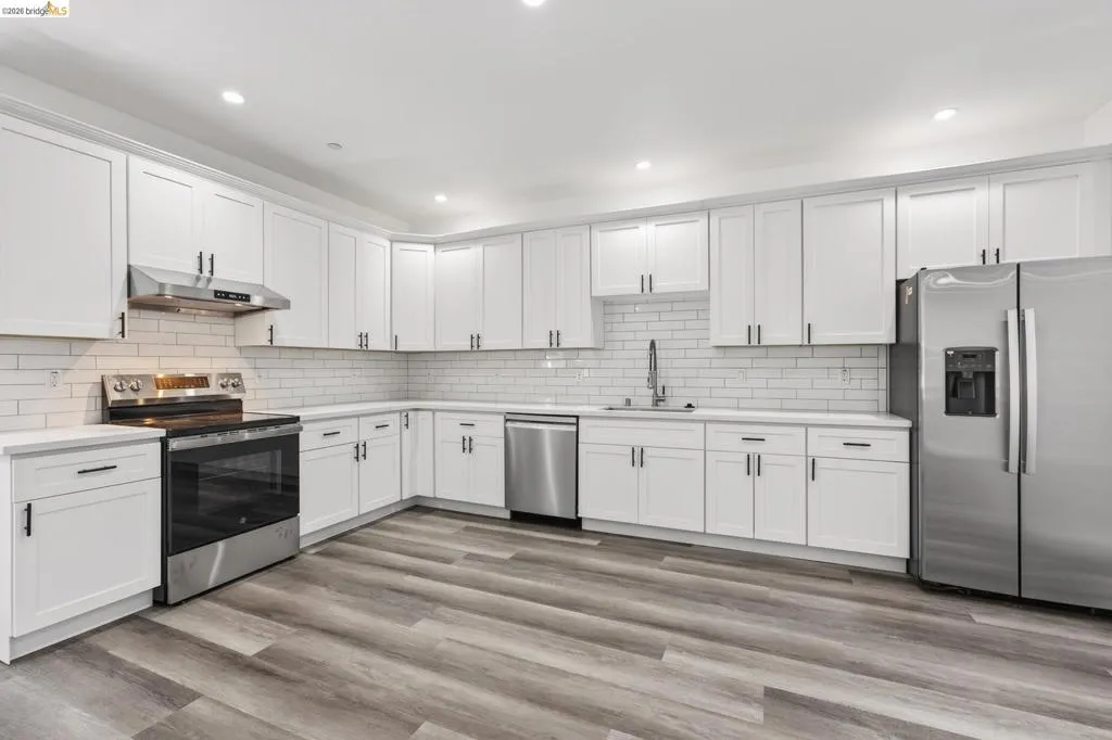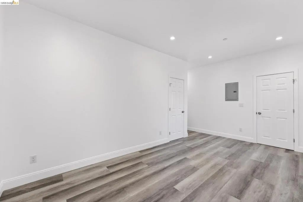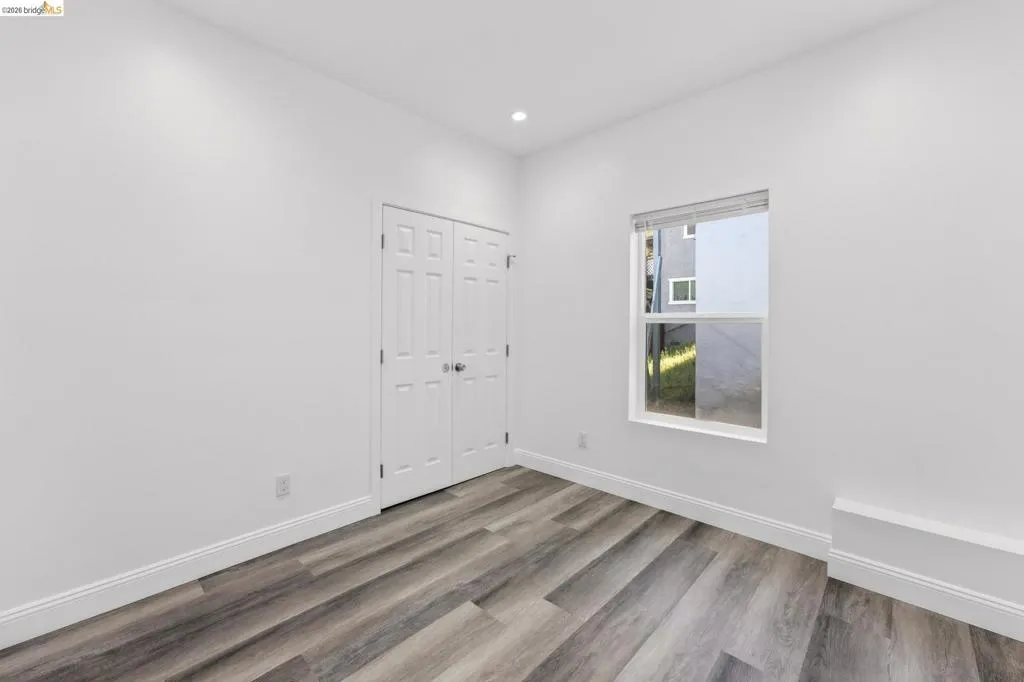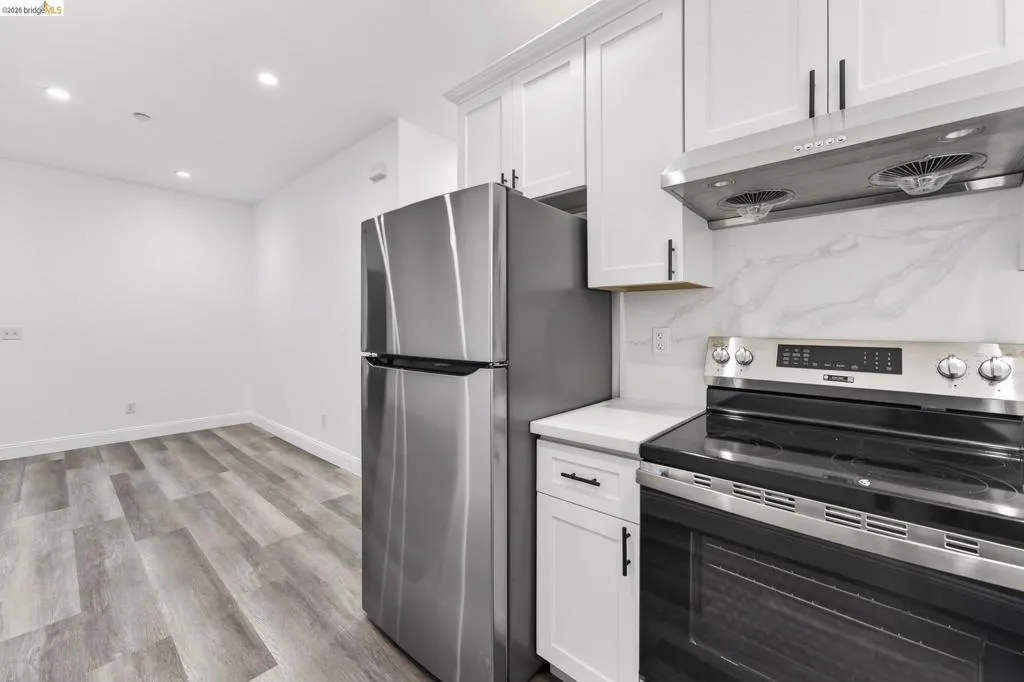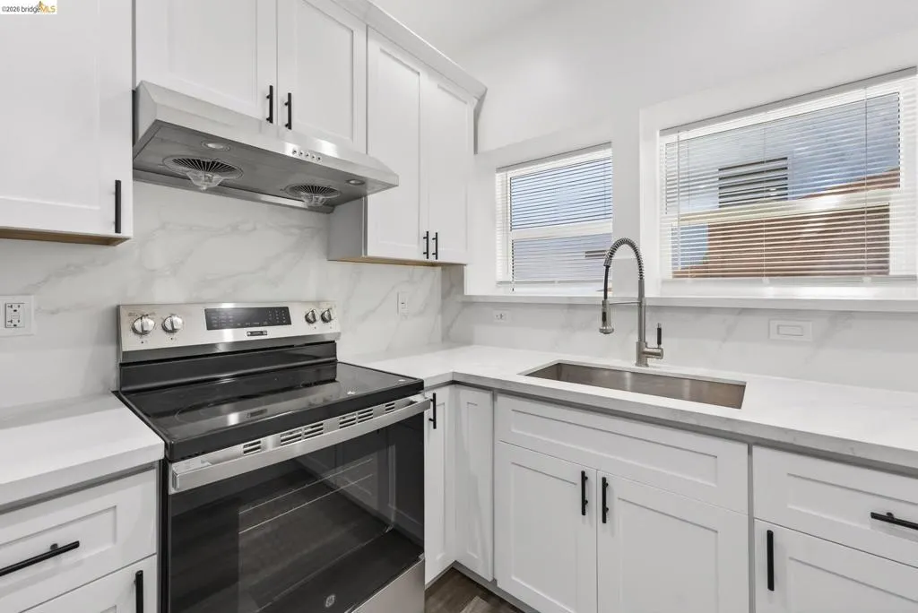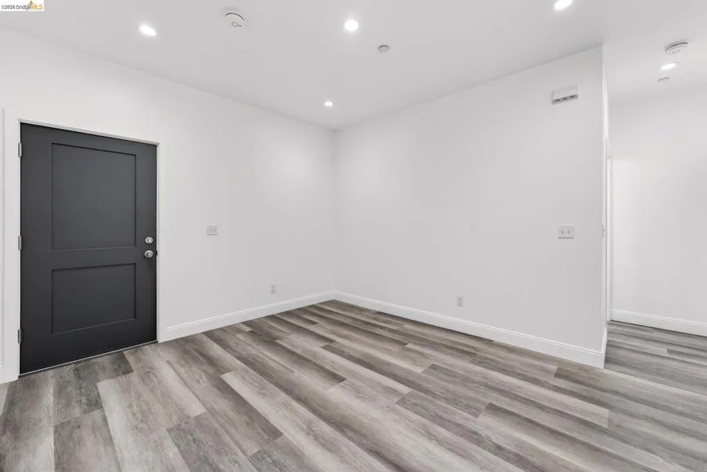 Perched on a downslope lot, this newly built contemporary home blends clean design with functional living and sweeping neighborhood views. Located in the desirable San Leandro area, this thoughtfully designed residence features 3 spacious bedrooms and 3 full bathrooms, plus a versatile 1 bed 1 bath ADU (Accessory Dwelling Unit)—ideal for extended family, guests, or rental income. The main home showcases an open-concept layout filled with natural light, wide-plank laminated flooring, and a seamless flow between living, dining, and kitchen spaces. The modern kitchen is a standout, featuring sleek white shaker cabinetry, quartz countertops, stainless steel appliances, and ample storage—perfect for both everyday living and entertaining. Each bedroom is generously sized, including a well-appointed primary suite designed for comfort and privacy. All three bathrooms feature contemporary finishes and stylish fixtures. Step outside to enjoy multiple levels of usable outdoor space, including a large patio area and elevated entry, offering both privacy and curb appeal. The downslope design enhances separation between living spaces and the ADU, maximizing flexibility. The detached ADU provides its own private entrance and living space—perfect for multigenerational living, a home office, or additional rental income potential. Conveniently located near major freeways, shopping, and dining, this property offers the perfect balance of modern living and accessibility. A rare opportunity to own a brand-new home with income potential—don’t miss it!
