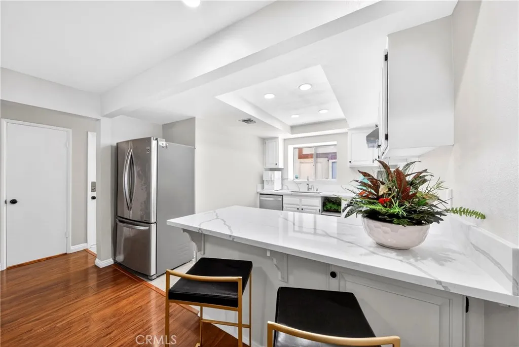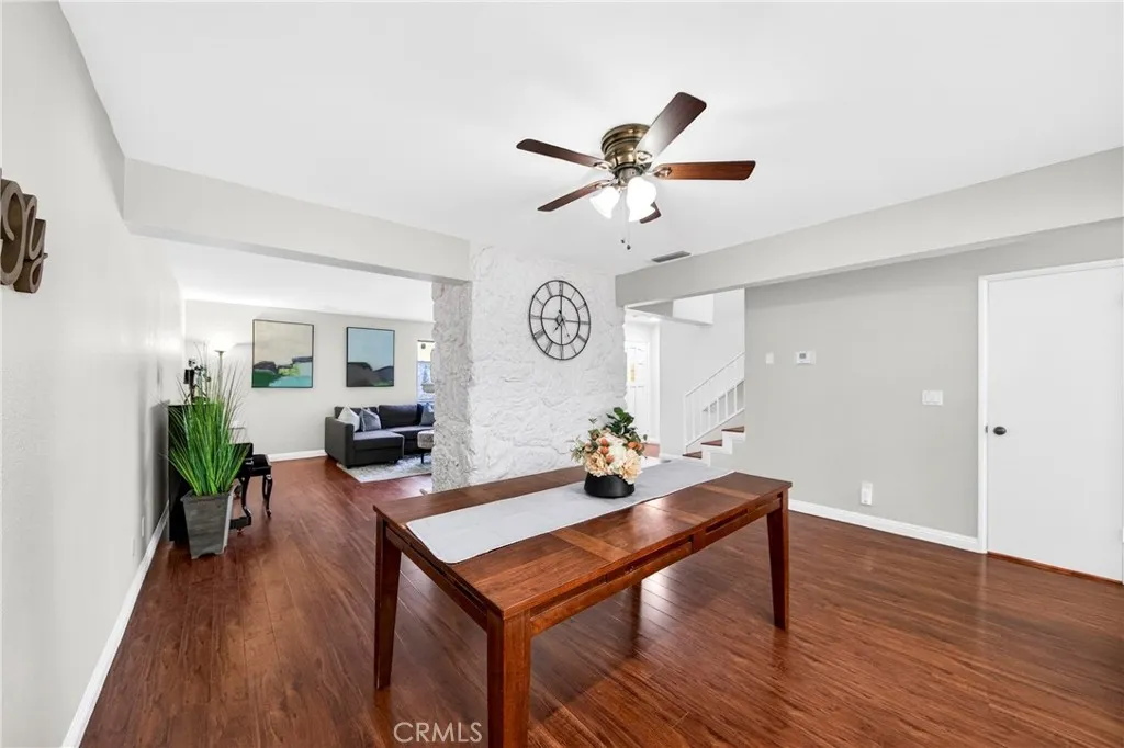 Located in the desirable North Downey area, this well-maintained home offers 3 bedrooms and 2.5 bathrooms, a living room with a fireplace, and a formal dining area. The kitchen features new quartz countertops, recessed lighting, a stainless steel single-bowl sink, updated faucet and vent, and a breakfast peninsula open to the dining area. Fresh interior paint, with new lighting, hardware, and bathroom fixtures, gives the home a crisp, truly move-in ready feel. The oversized primary suite includes a large walk-in closet and a private bathroom with a balcony, double sink vanity, soaking tub, and separate shower. The second and third bedrooms are well-sized, each with ceiling fans and walk-in closets. One bedroom also has its own private balcony. A Jack and Jill bathroom with a tub and double sink vanity connects the two bedrooms. Additional features include hallway storage cabinets, an indoor laundry area, and a powder room on the main floor. The attached 2-car garage offers direct access and a separate entry to the front patio. HOA dues are $252 per month and include water and trash. Conveniently located within minutes to schools, shops, and restaurants.