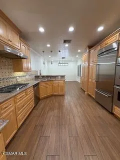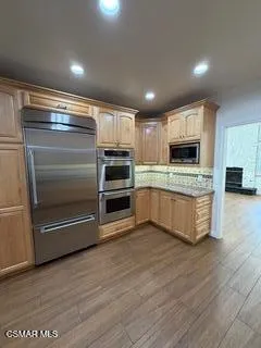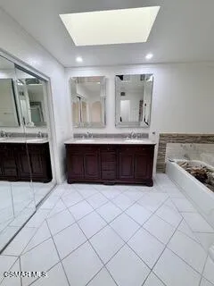Dreamy Agoura Hills Townhome - Fully Remodeled. Welcome to this beautifully updated townhome in desirable Agoura Hills, featuring fresh paint throughout, stunning new flooring, and thoughtfully upgraded bathrooms.The home offers a rare gourmet kitchen complete with stainless steel appliances, built-in refrigerator/freezer, dishwasher, and a 5-burner gas cooktop--plus abundant cabinet space for all your storage needs.Downstairs features rich wood flooring, a cozy gas fireplace, and a convenient powder room. Enjoy modern comforts like remote-controlled lighting, ceiling fans, and stylish updated fixtures throughout.Upstairs, you'll find two spacious master suites with large closets, mirrored doors, and abundant natural light from skylights and elegant stained glass accents. Bathrooms include double Pullman sinks and additional skylights for a bright, airy feel.Additional highlights include:Private enclosed patio/yardHardwood stair banisterPlantation shuttersPull-down attic ladder for extra storageAttached 2-car garage with optional washer/dryer.The community offers resort-style amenities including a pool, spa, and tennis courts.Conveniently located near freeway access, shopping centers (Vons, Ralphs, Costco, Target), and situated within the award-winning Las Virgenes School District. Landlord requires $75 per month pet rent.
