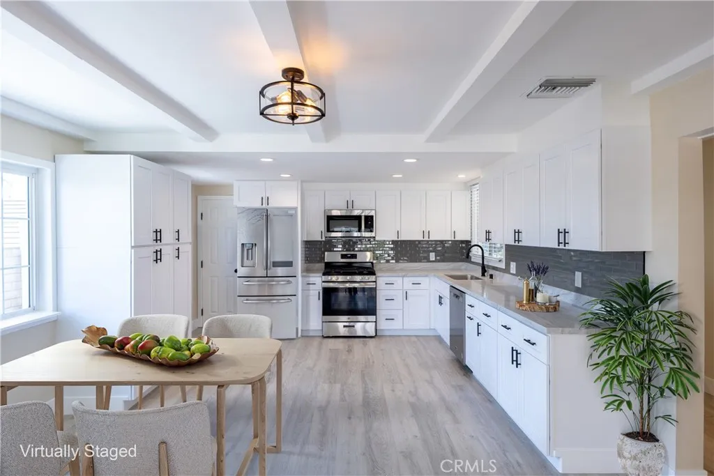 Welcome to this beautifully remodeled home in a desirable East Whittier neighborhood near La Mirada, offering style, comfort, and a modern open layout. The living, dining, and kitchen areas flow seamlessly in one bright, airy space—perfect for entertaining and everyday living. The kitchen stands out with brand new cabinetry, quartz countertops, stylish fixtures, and ample storage. The home features a rare, expanded primary suite with a spacious bedroom and upgraded bathroom, creating a private, spa-like retreat. Throughout the home, you’ll find new flooring, fresh interior and exterior paint, updated vanities, and modern lighting, fixtures, and hardware for a clean, cohesive feel. Enjoy the convenience of direct garage access and a prime location just around the corner from La Mirada Creek Park—walkable within minutes—featuring scenic trails, a peaceful creek, open green space, and an equestrian center. Close to top-rated schools, shopping, dining, and easy freeway access, this home offers an exceptional combination of upgrades and location. Homes like this don’t come along often—thoughtfully updated and ideally located. Don’t miss your chance to make it yours.