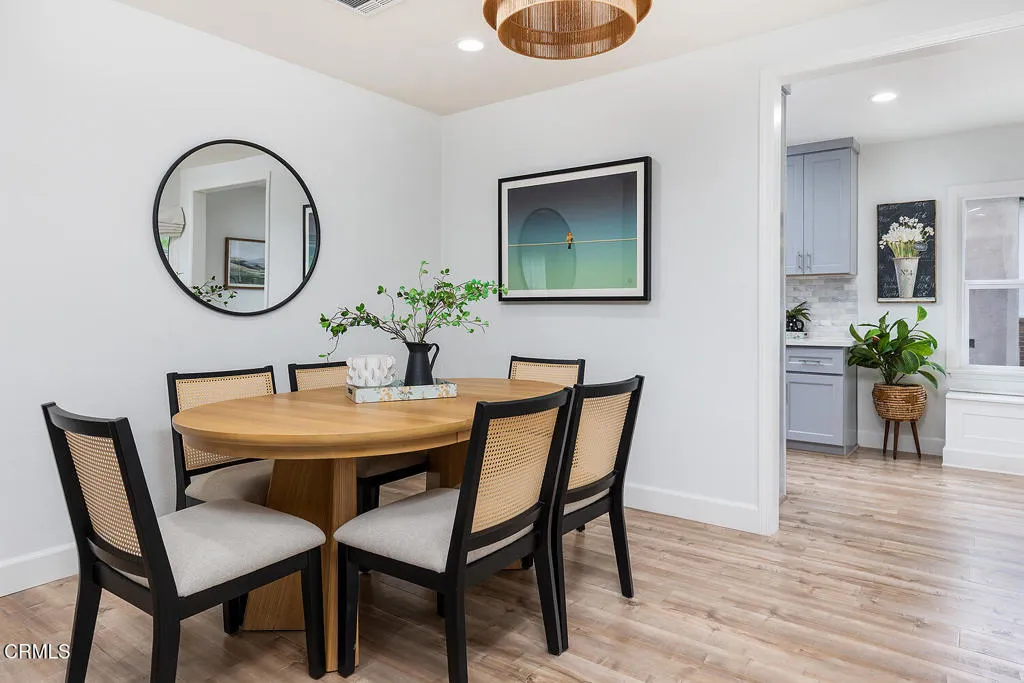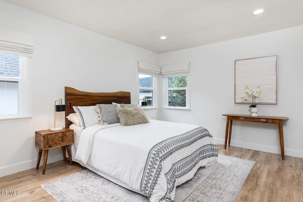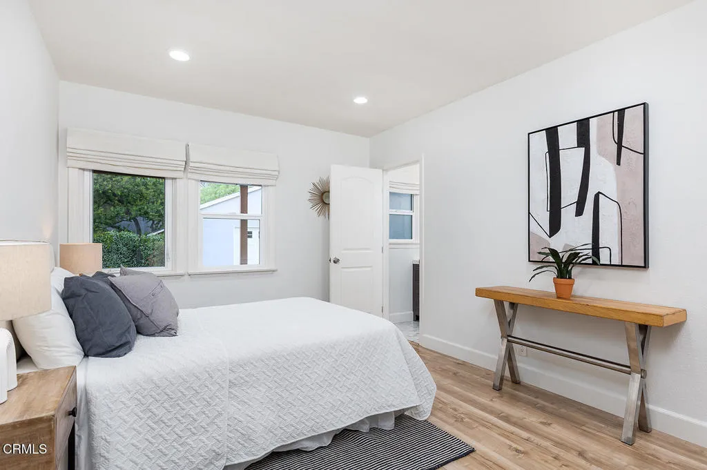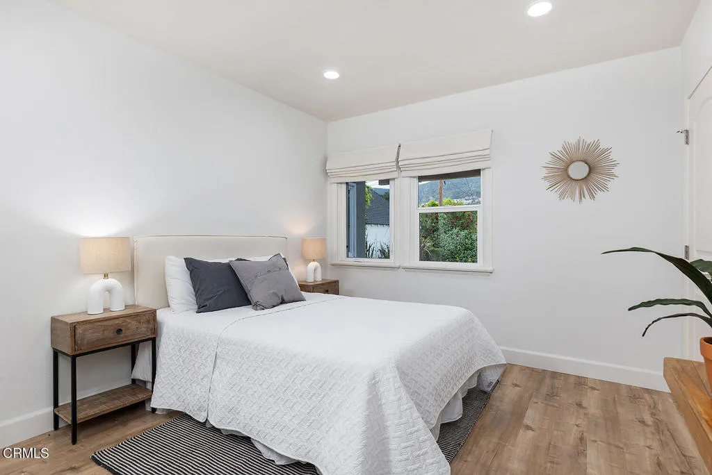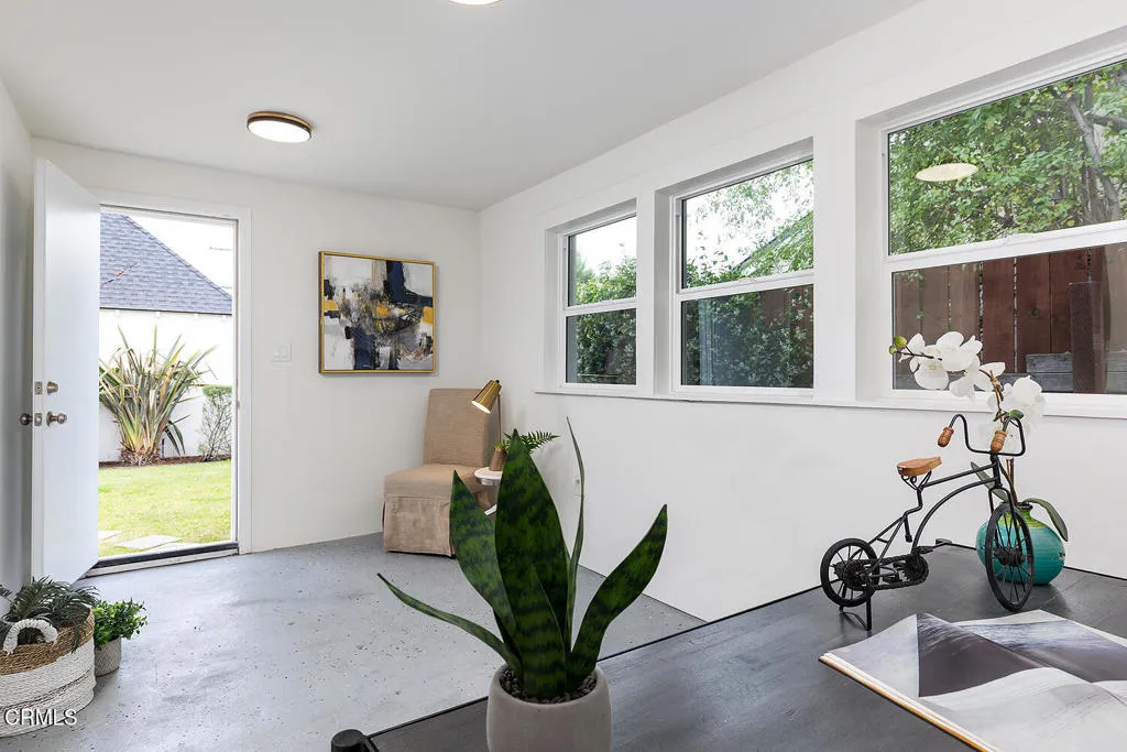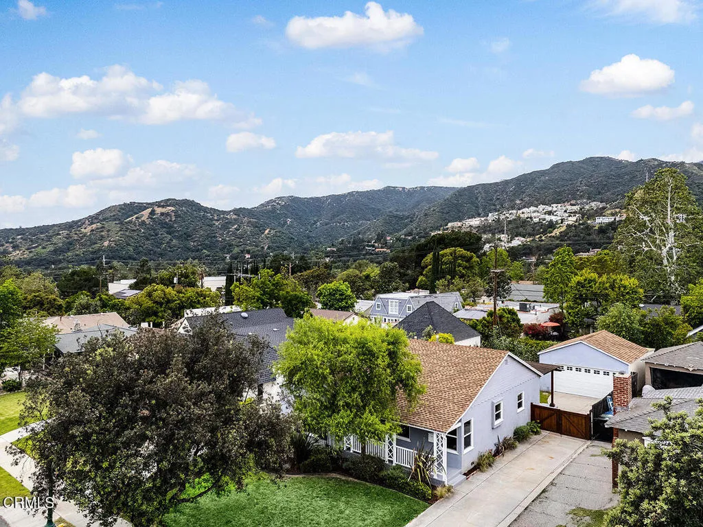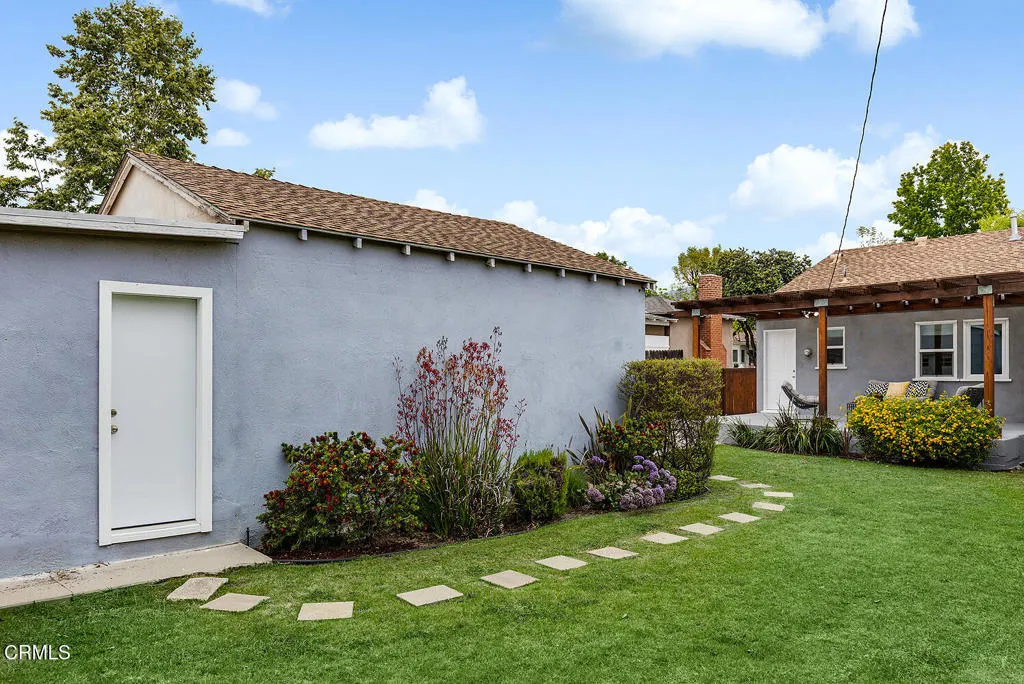 Welcome to a well-maintained, traditional home in the highly sought-after Sparr Heights neighborhood, easy walking distance from acclaimed Fremont Elementary School, Berolina Bakery and Pastry Shop, Shreiner's Fine Sausages Market and other retail on Verdugo Blvd and Montrose shopping. A beautifully landscaped front yard invites one up to the newly-painted front porch. The front door opens into the freshly-painted living room area anchored by a wood burning fireplace with attractive tile and wood mantel and quartz hearth. The flooring throughout the home is an attractive natural laminate wood. Also, recessed lighting is throughout. Plenty of natural light bathes the room through double-pane, vinyl frame sash and casement windows. The dining area has a new contemporary ceiling light and easily seats six around a table. This flows into the kitchen area with a cozy breakfast corner with a sitting bench that also offers extra storage. The updated kitchen has quartz counters, subway tile splashback, stainless steel appliances including Frigidaire refrigerator, Bertazzoni 4-burner stove with an overhead vent available, Frigidaire microwave and Samsung dishwasher. Off the kitchen is a laundry area and access to the backyard. The spacious primary bedroom has ample closet space with sliding mirror doors, built-in cabinets both above and below the closet, baseboard molding and recessed lights. The full bathroom off the hallway has a tub, walk-in shower, vanity with new stylish light fixture overhead and quartz hexagonal tile floor. The second bedroom has a half bathroom with quartz hexagonal tile floor, closet with mirrored sliding glass doors, recessed lights and baseboard molding. The hallway offers built-in cabinets and closet with sliding mirror doors. Out the back door discover a good sized patio with freshly stained pergola to allow relaxed evenings of watching the sun set behind the Verdugo Mountains. The flat, fully enclosed backyard has plenty of space for play and is beautifully landscaped. There is a detached double garage with finished interior and automatic door, plus an attached office/work-out room with new stylish ceiling lights and plenty of windows for natural lighting. There is a whole-house security system, Nest thermostat, beautiful stained wood driveway gate and architectural plans for a second floor. This home has it all: charm and functionality in a wonderful neighborhood! Easy access to freeways too! What are you waiting for?