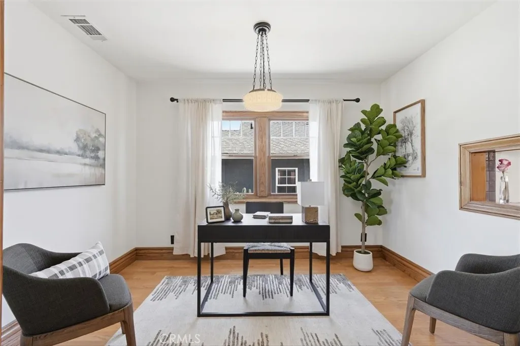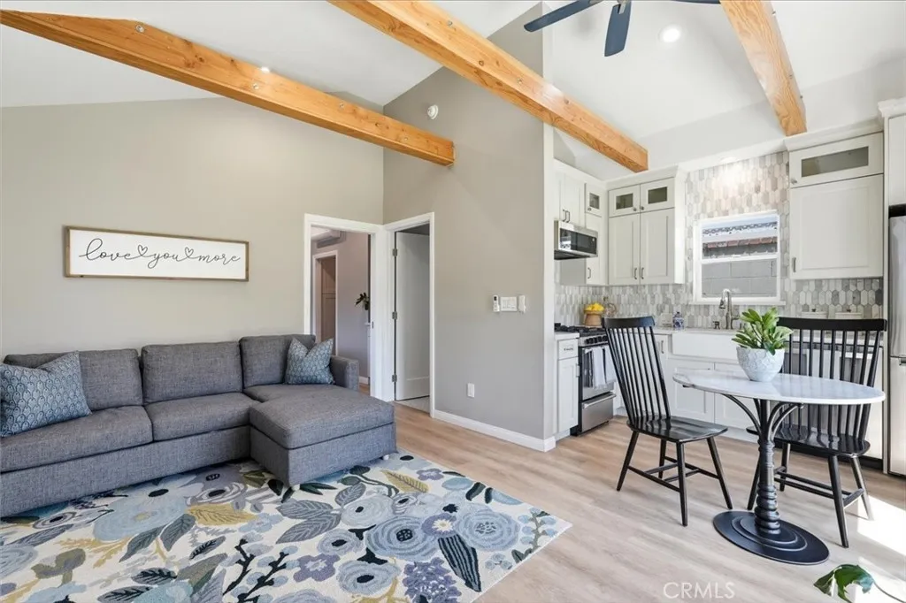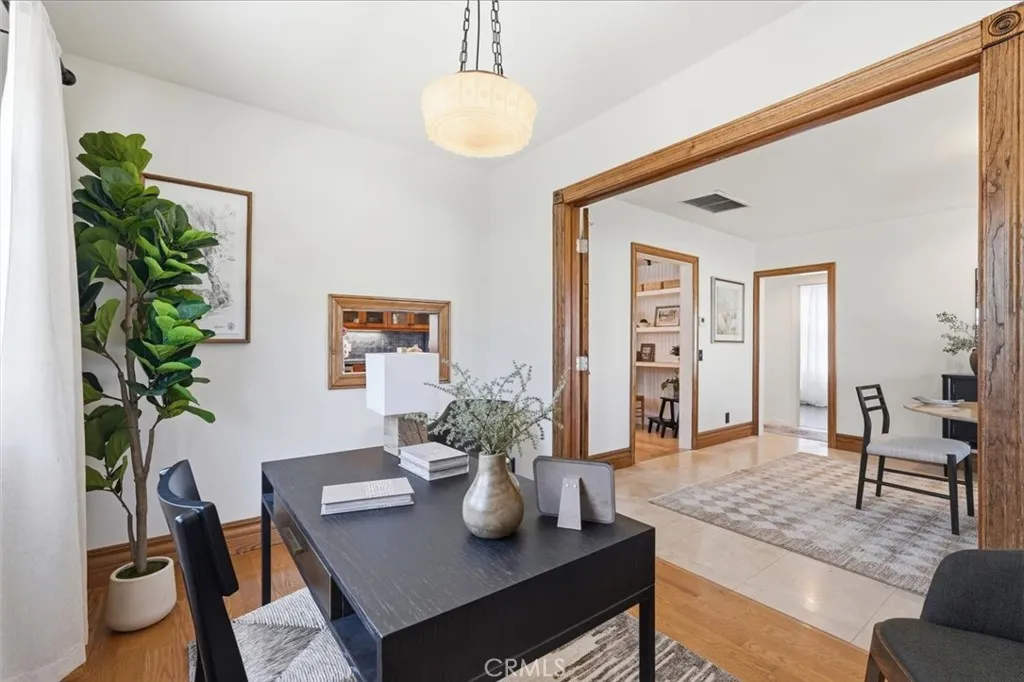 Charming Craftsman-style home featuring 3 bedrooms, 3 bathrooms, plus a dedicated office across approximately 2,280 sq ft. Situated on a 7,500 sq ft lot, this property blends classic charm with modern functionality. Inviting curb appeal with blue siding, white trim, covered front porch, brick accents, and mature landscaping. Light-filled interior offers a functional layout with seamless flow, ideal for both everyday living and entertaining. Dedicated office provides flexibility for work or creative space. Converted garage has been transformed into a ~640 sq ft detached ADU—perfect for guests, extended family, or rental income. Backyard features a spacious patio connecting the main home and ADU, creating a cohesive indoor-outdoor living environment. Great opportunity offering character, versatility, and income potential.