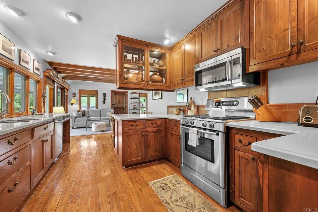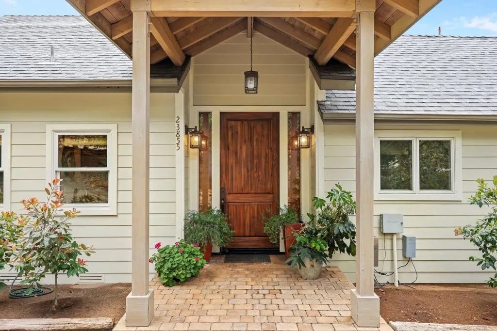 Over 10 acres across two contiguous parcels in Alpine, including a substantial 8.53-acre rear parcel with elevated canyon views. An existing home on the front 2.37-acre parcel provides immediate use while you evaluate long-term possibilities. The land rises to overlook Horse Thief Canyon, with a seasonal creek running through the lower portion, attracting wildlife and enhancing the natural setting. The property includes historical elements such as Native American manos and metates, stone walls, and remnants of early farm use, reflecting the area’s past as a stagecoach route. The residence is 1,191 sq ft (2 bedrooms + office/study) with open living space, high ceilings, large windows, custom cabinetry, and a wraparound porch. Utilities and infrastructure include a private well, two 5000-gallon holding tanks (one designated for fire department use), fire hydrant, whole-house generator, and a shed with electricity. Recent upgrades include new roof (2025), furnace (2026), and septic system (2018). Surrounding properties have developed similar rear parcels; buyers are encouraged to investigate zoning, access, and development potential with the appropriate agencies.