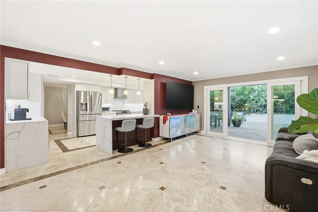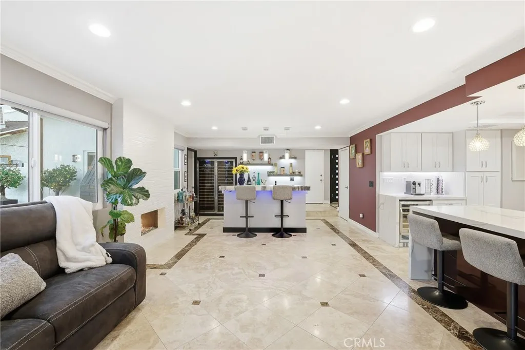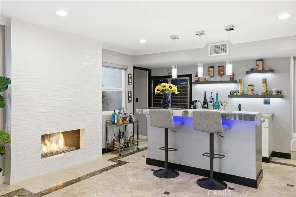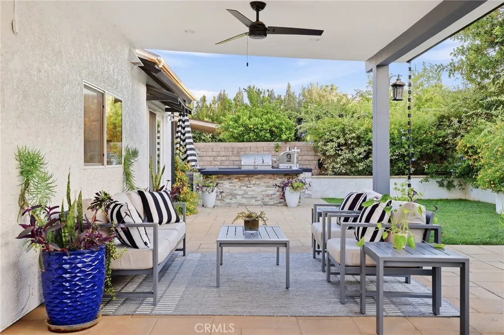 Located in the highly desirable community of West Hills, renowned for its top-rated schools and scenic San Fernando Valley charm, this extensively remodeled 4-bedroom, 3-bathroom masterpiece offers nearly 3,000 square feet of sophisticated living. Beyond the custom front doors, luxury vinyl plank flooring and zebra blinds lead you through a seamless floor plan featuring formal living and dining rooms accented by an updated stair banister and refined electrical finishes. The chef’s kitchen is a culinary triumph featuring quartz countertops, custom cabinetry with pull-outs and dual lazy Susans, under-cabinet lighting, a custom hood, six-burner gas range, double ovens, a newer dishwasher, and a wine fridge, all overlooking a family room anchored by a custom crystal gas fireplace and a built-in bar with epoxy finishes and a 360-bottle wine refrigerator. The primary suite serves as a serene retreat with custom closets, a jacuzzi tub, updated cabinetry and mirrors, and Toto fixtures throughout. Every modern convenience has been integrated, including newer windows and sliders, dual-zone HVAC with updated ducting and insulation, HEPA filtration, a 200-amp electrical panel, a tankless water heater, and a newer roof with fully paid-off solar with monitoring. Transition outside to a resort-style backyard featuring an app-controlled custom pool and spa with glass tile, a waterfall, and a Baja shelf with an umbrella holder and additional sleeves. The outdoor kitchen is fully equipped with a BBQ, two-burner gas cooktop, pizza oven, sink, and refrigerator, all framed by gas fire bowls, a fire pit, an outdoor shower, and professional drainage, drip irrigation, and full electrical grounding. Complete with a 3-car garage offering epoxy floors, recessed lighting, and a kitchen-grade sink, you will enjoy close proximity to premier shopping and dining at Westfield Topanga Mall, The Village, and nearby hiking and trails. This home has it all - Schedule your showing today!