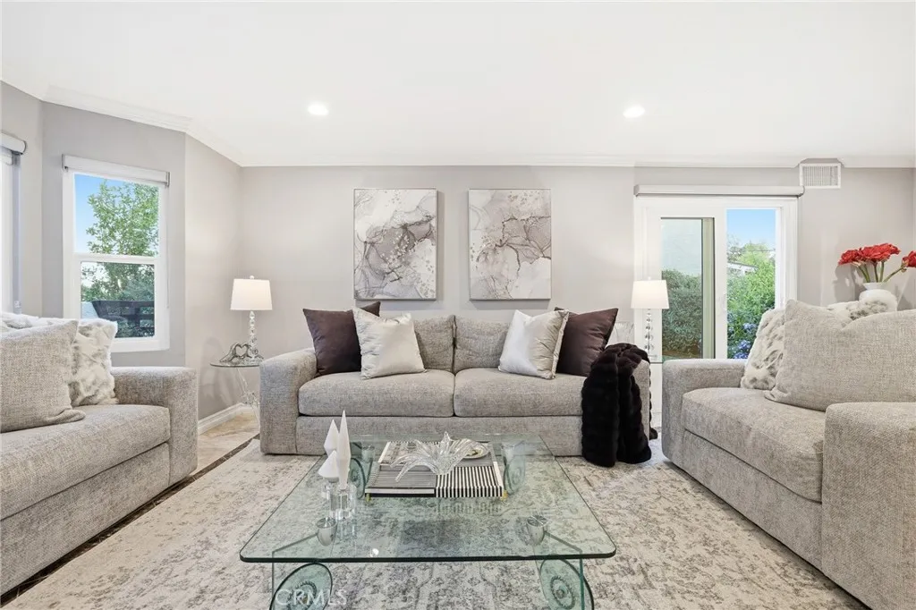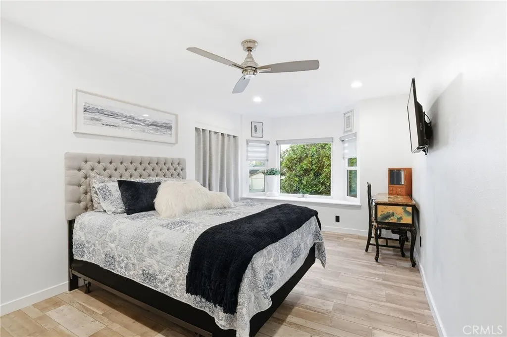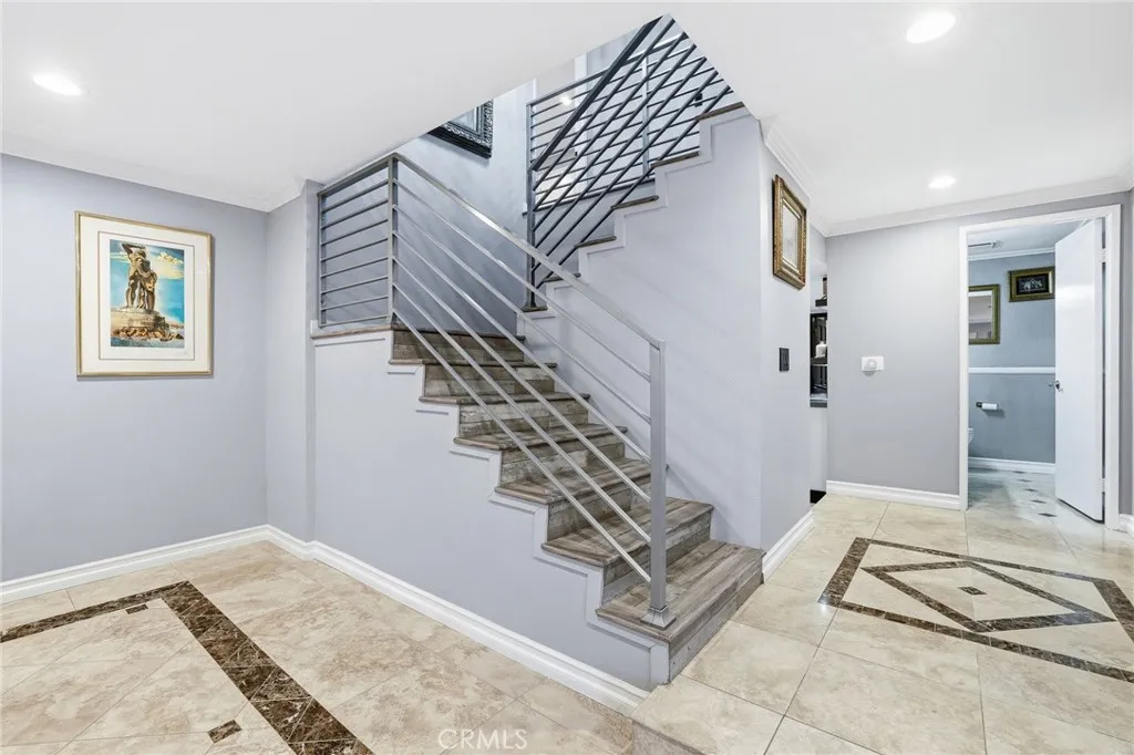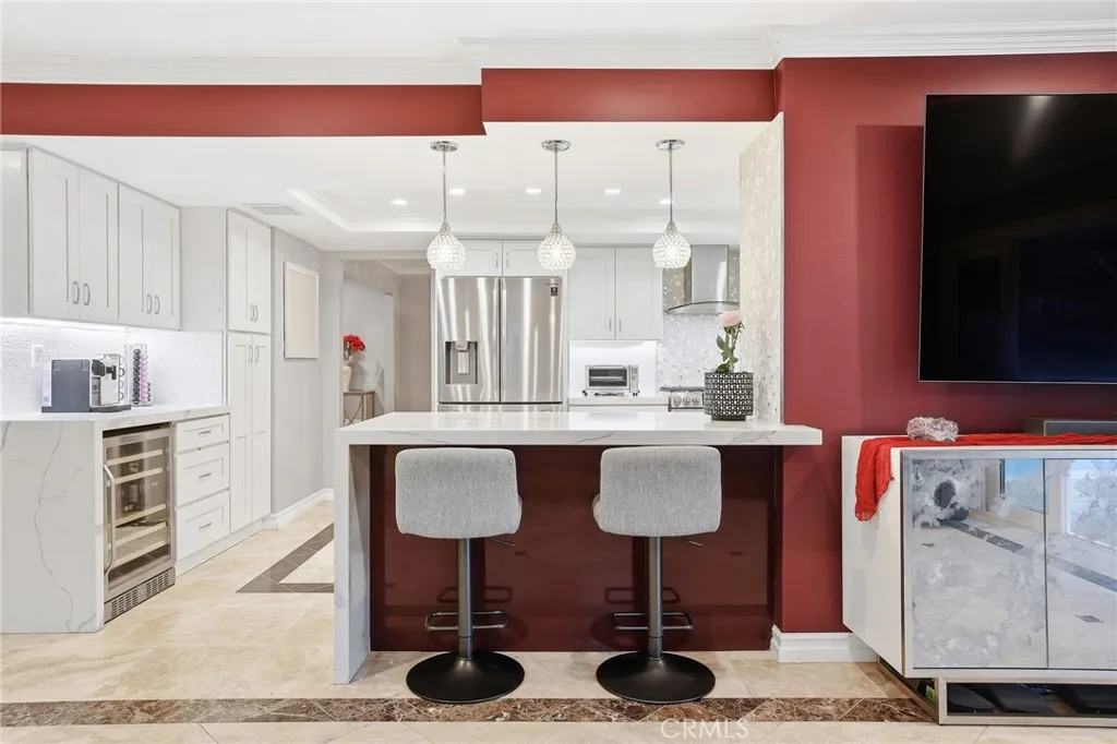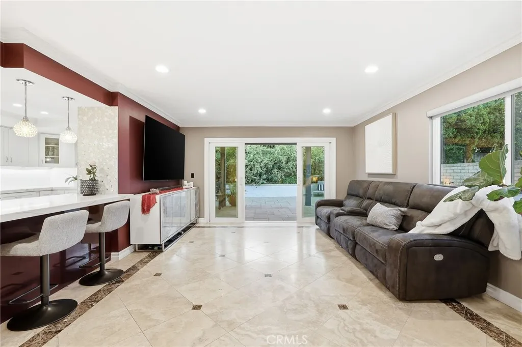 Located in the highly desirable community of West Hills, renowned for its top-rated schools and scenic San Fernando Valley charm, this extensively remodeled 4-bedroom, 3-bathroom masterpiece offers nearly 3,000 square feet of sophisticated living. Beyond the custom front doors, luxury vinyl plank flooring and zebra blinds lead you through a seamless floor plan featuring formal living and dining rooms accented by an updated stair banister and refined electrical finishes. The chef’s kitchen is a culinary triumph featuring quartz countertops, custom cabinetry with pull-outs and dual lazy Susans, under-cabinet lighting, a custom hood, six-burner gas range, double ovens, a newer dishwasher, and a wine fridge, all overlooking a family room anchored by a custom crystal gas fireplace and a built-in bar with epoxy finishes and a 360-bottle wine refrigerator. The primary suite serves as a serene retreat with custom closets, a jacuzzi tub, updated cabinetry and mirrors, and Toto fixtures throughout. Every modern convenience has been integrated, including newer windows and sliders, dual-zone HVAC with updated ducting and insulation, HEPA filtration, a 200-amp electrical panel, a tankless water heater, and a newer roof with fully paid-off solar with monitoring. Transition outside to a resort-style backyard featuring an app-controlled custom pool and spa with glass tile, a waterfall, and a Baja shelf with an umbrella holder and additional sleeves. The outdoor kitchen is fully equipped with a BBQ, two-burner gas cooktop, pizza oven, sink, and refrigerator, all framed by gas fire bowls, a fire pit, an outdoor shower, and professional drainage, drip irrigation, and full electrical grounding. Complete with a 3-car garage offering epoxy floors, recessed lighting, and a kitchen-grade sink, you will enjoy close proximity to premier shopping and dining at Westfield Topanga Mall, The Village, and nearby hiking and trails. This home has it all - Schedule your showing today!