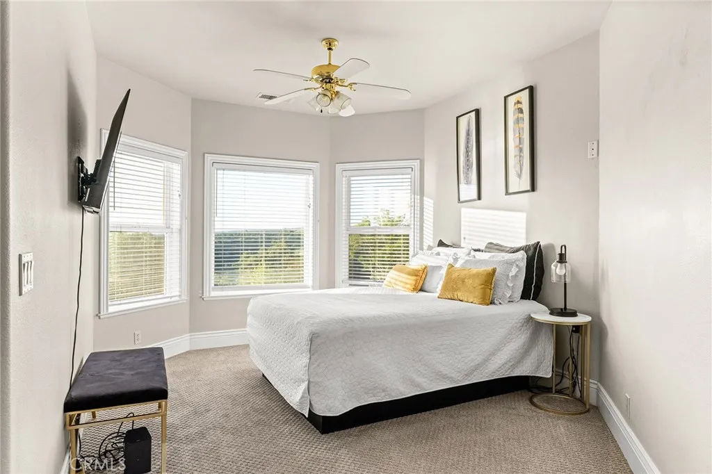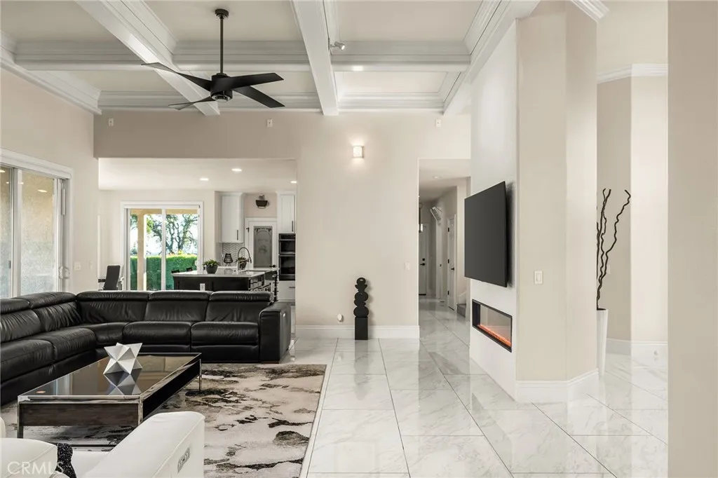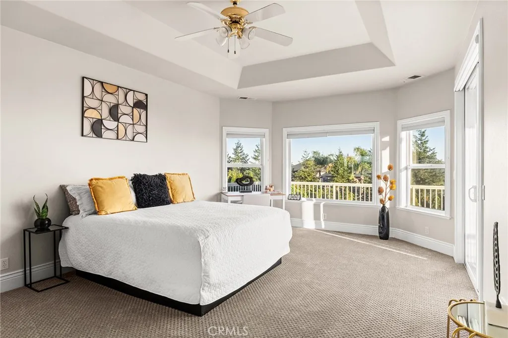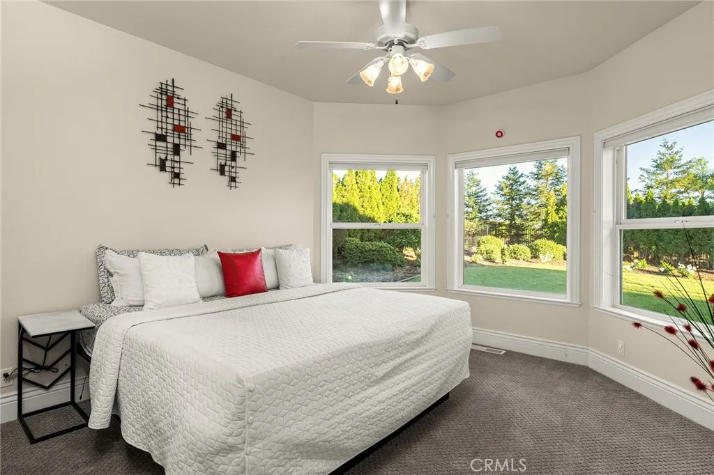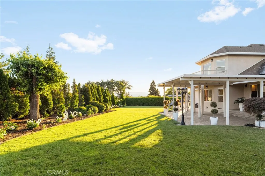 Set within the gated community of Rocky Bluff, this beautifully remodeled luxury home offers truly unmatched views, overlooking Butte Creek Canyon from the front, with stunning sunsets over the canyon. Just minutes from Chico, the property sits on a spacious lot with mature landscaping, fruit trees, raised garden beds, and plenty of room to add a pool, all complemented by a welcoming circular driveway that makes a strong first impression. This 3-bedroom home plus an office offers a functional and desirable layout, with two bedrooms located on the main floor and a private primary suite upstairs. Inside, the home has been thoughtfully updated with a stunning kitchen featuring custom cabinetry, a large island, walk-in pantry, and updated appliances, all opening to the main living spaces designed to capture the views. Soaring ceilings, detailed woodwork, updated flooring, and a sleek electric fireplace create a warm yet elevated feel throughout. The expansive primary suite offers a true retreat with generous space, a spa-like bathroom, and a large walk-in closet, along with a private balcony perfectly positioned to take in the surrounding scenery, with views of the Sutter Buttes. The 900 sqft suite also offers flexibility for a sitting area or workspace if desired. Enjoy seamless indoor-outdoor living with a covered patio ideal for relaxing or entertaining. Additional features include owned solar, automatic blinds, a three-car garage, and a rare second kitchen setup in the garage—perfect for entertaining or extended use.