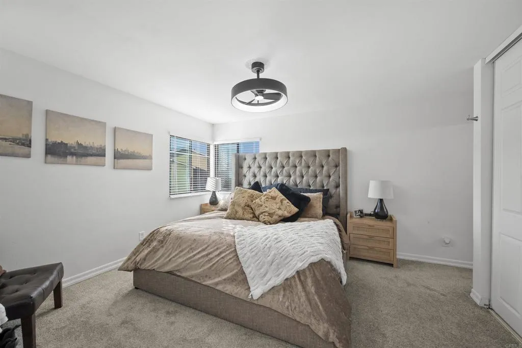 Welcome Home to Brandywine Classics! This beautifully remodeled, oversized townhome exudes true pride of ownership from the moment you step inside. The open-concept kitchen features an expansive center island, perfect for entertaining guests or hosting family gatherings during the holidays. All appliances will convey! Offering two spacious bedrooms and two full baths, this home includes dual primary suites designed for comfort and privacy—ideal for guests, roommates, or multi-generational living. Every detail has been thoughtfully updated to please even the most discerning buyer, with modern finishes, sleek cabinetry, and stylish touches throughout. Enjoy a private patio for weekend BBQs or morning coffee, plus the convenience of an attached one-car garage with in-unit laundry. The Brandywine Classics community is beautifully maintained, featuring new exterior fencing and lush landscaped grounds. The location can’t be beat—just minutes to Eastlake, major freeways, great schools, Sesame Place San Diego, and the North Island Credit Union Amphitheatre. Come take a peek for yourself and fall in love with this turn-key townhome—a rare find that perfectly blends comfort, convenience, and modern living!