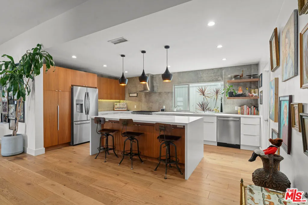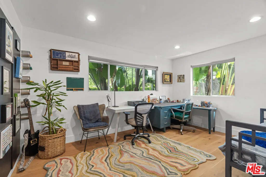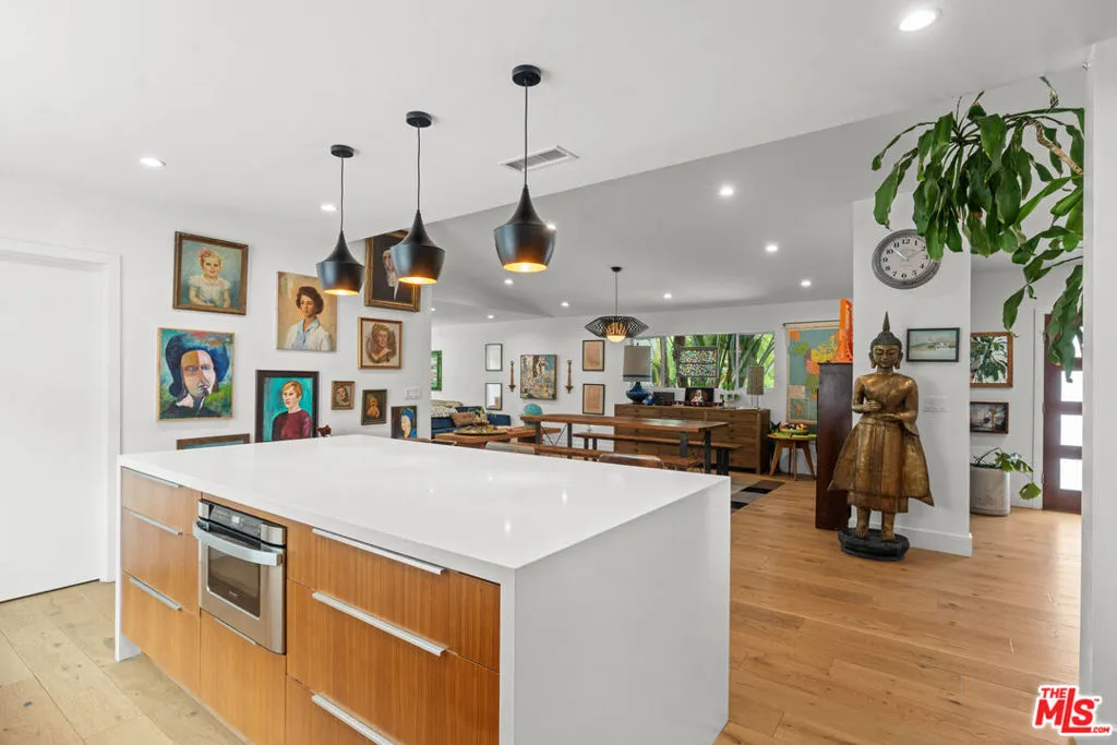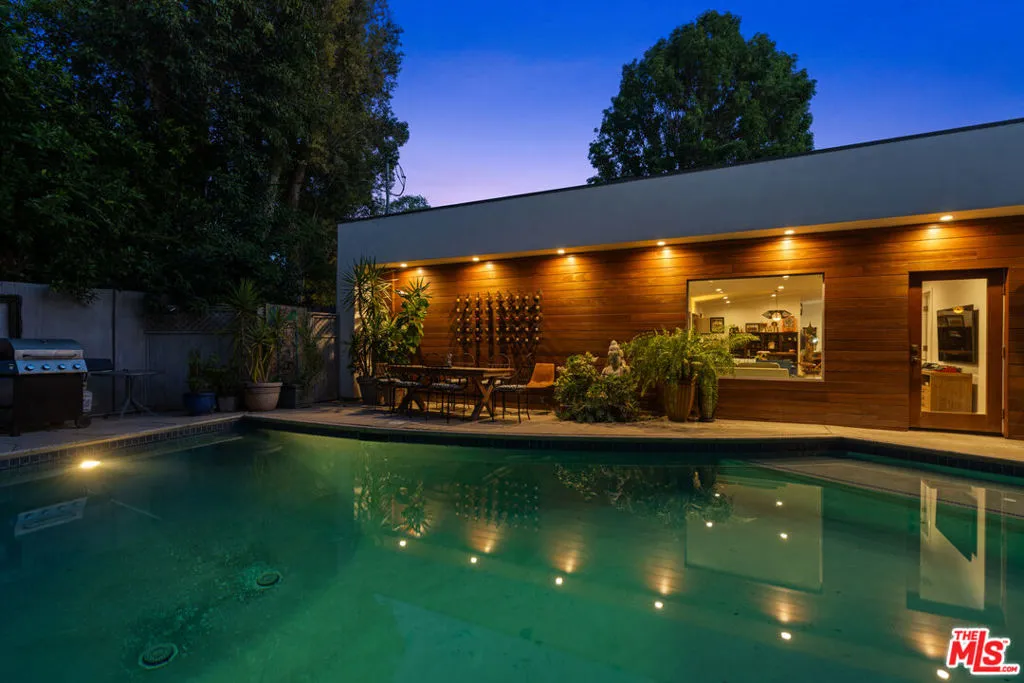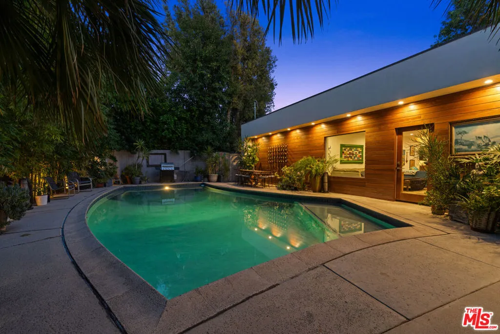 Reimagined and inspiring, this contemporary 4 bedroom and 3.5 bath gated residence on an over 8,000sf corner lot features a large pool, grassy yard and studio ADU. A unique and whimsical Shangri-La oasis curated with an artist's eye will ignite your imagination and lure you in to explore this magical playground. In the main house, the single level open concept great room expanding over 2,300sf is complimented by wide oak flooring, vaulted ceilings and a Chef's kitchen with waterfall island and bar seating. Adjacent are the dining and multiple living areas that offer a seamless space for grand scale entertaining. The West end of the house is comprised of a spacious office/bedroom, two generous sized guest bedrooms and one and half baths. The primary on-suite bedroom is privately situated on the East end of the home offering a sitting area, walk-in closet and direct access to the swimmer's pool heated by solar panels. The outdoor dining and lounging spaces surrounded by lush landscaping create the perfect atmosphere for unwinding and celebrating alike. A separate entrance services the recently converted & permitted A.D.U. with separate meter. Measuring approximately 400sf the studio apartment is complete with full kitchen, dining area, tiled bathroom and closet. An eclectic and captivating one-of-a-kind compound centrally located between Magnolia and Ventura Blvd's abundant shopping and eateries, Sepulveda Basin Recreation activities, highly rated public and private schools, parks and convenient freeway access to the Westside, Studio City and Encino. Excellent opportunity for an owner-user looking for supplemental income or for an investor seeking rental property in a high demand neighborhood.