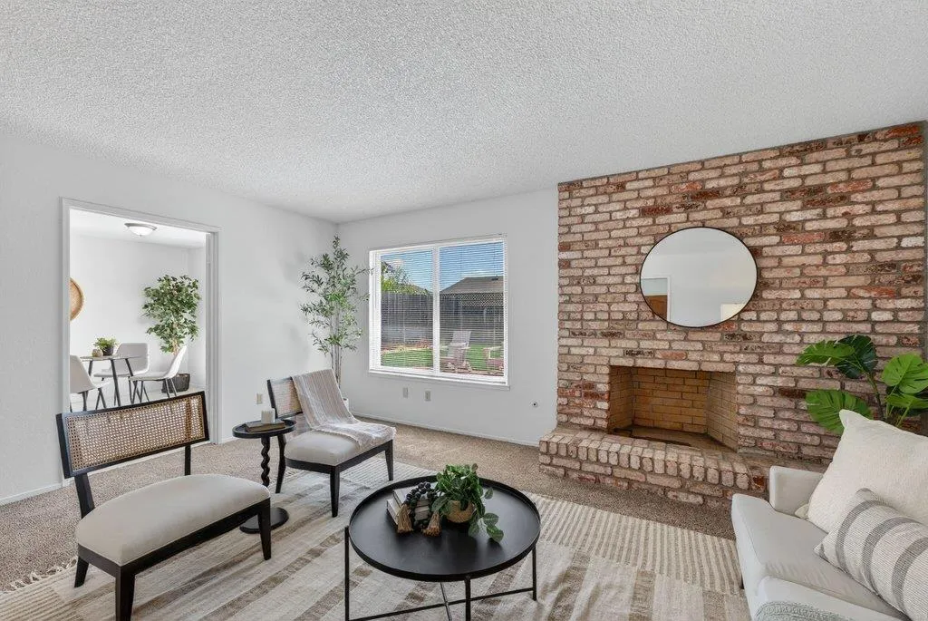 Beautifully refreshed move-in ready home on a desirable corner lot offering excellent on-site and street parking. Recent upgrades include new interior and exterior paint, brand new carpet in the living areas and bedrooms, updated light fixtures, and all new window blinds. Enjoy added value with a newer roof and dual-pane windows throughout. The spacious living room features a classic brick fireplace, while the kitchen offers ample cabinet space and flows into the dining area with backyard access. Fresh landscaping enhances both front and backyard spaces, complete with a large patio and lawn area. A standout feature is the large, detached outbuilding ideal for a hobby room, home gym, or playroom. Conveniently located near East Lake Shopping Center, Staff of Life, Coffeeville, Silver Spur, Ace Hardware, and parks including Franich Park. Move-in ready with thoughtful upgrades, versatile space, and a prime location this home is one you dont want to miss!