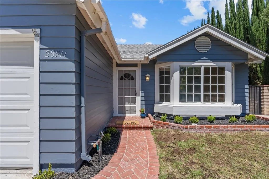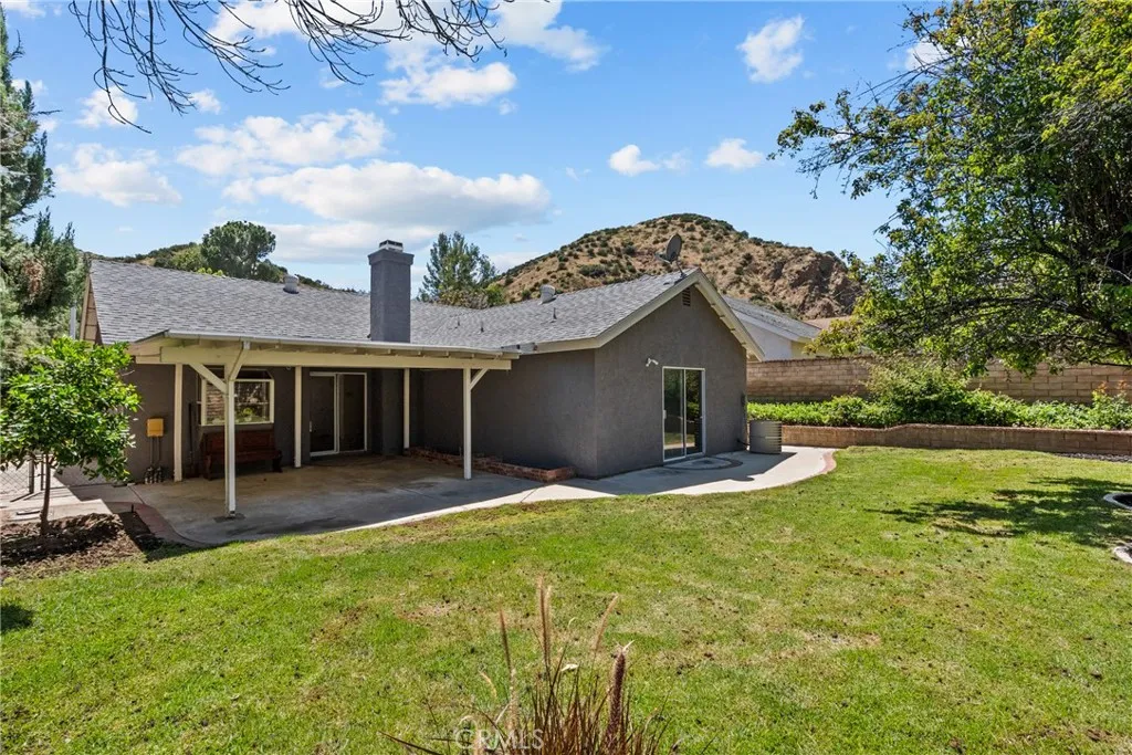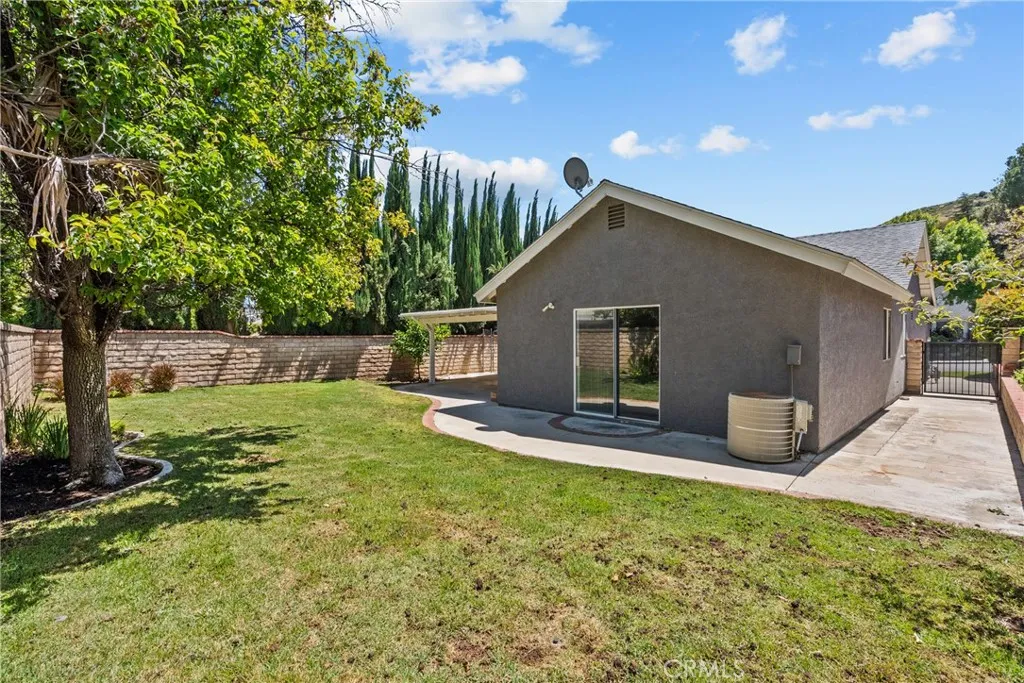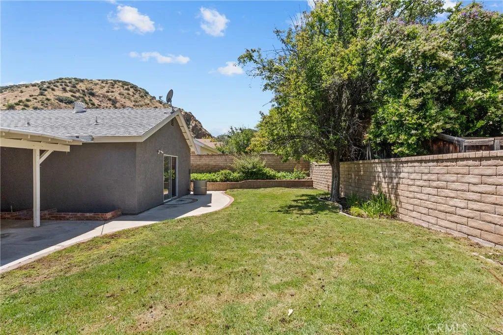 Welcome to this beautifully updated single-story home offering 3 bedrooms and 2 bathrooms, ideally situated in a quiet, desirable neighborhood. This inviting residence features LifeProof brand luxury vinyl plank flooring and fresh interior paint throughout, creating a bright and modern atmosphere. The spacious floor plan showcases a large living room with a stunning bay window and a formal dining area with soaring ceilings—perfect for entertaining. The cozy family room features a beautiful brick fireplace and ceiling fan, providing a warm and comfortable space to relax. The kitchen is equipped with updated appliances and a charming garden window that fills the space with natural light. The primary suite offers a walk-in closet, ceiling fan, and a sliding glass door leading to a private backyard retreat. Two additional generously sized bedrooms include ample closet space and new window blinds. Step outside to a beautifully maintained backyard featuring a covered patio, mature trees, including a mature shade tree and a lemon tree, along with a spacious grassy area—ideal for gatherings or peaceful evenings outdoors. The property also includes an enclosed dog run with convenient dog door access into the home, perfect for pet lovers. Ceiling fans in all bedrooms and the family room enhance year-round comfort. Additional highlights include newer exterior paint, a newer roof, and a direct-access 2-car attached garage with built-in cabinets for added storage and convenience. Conveniently located near freeway access, shopping, dining, and local parks, this home is just minutes from Castaic Lake Recreation Area, Castaic Sports Complex, Santa Clarita Mountain Bike Park, and Six Flags Magic Mountain, as well as close to the Valencia/Castaic industrial park—offering excellent access to both recreation and employment centers.