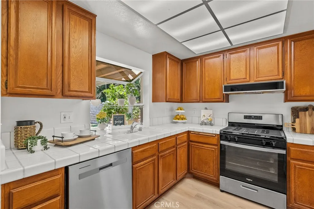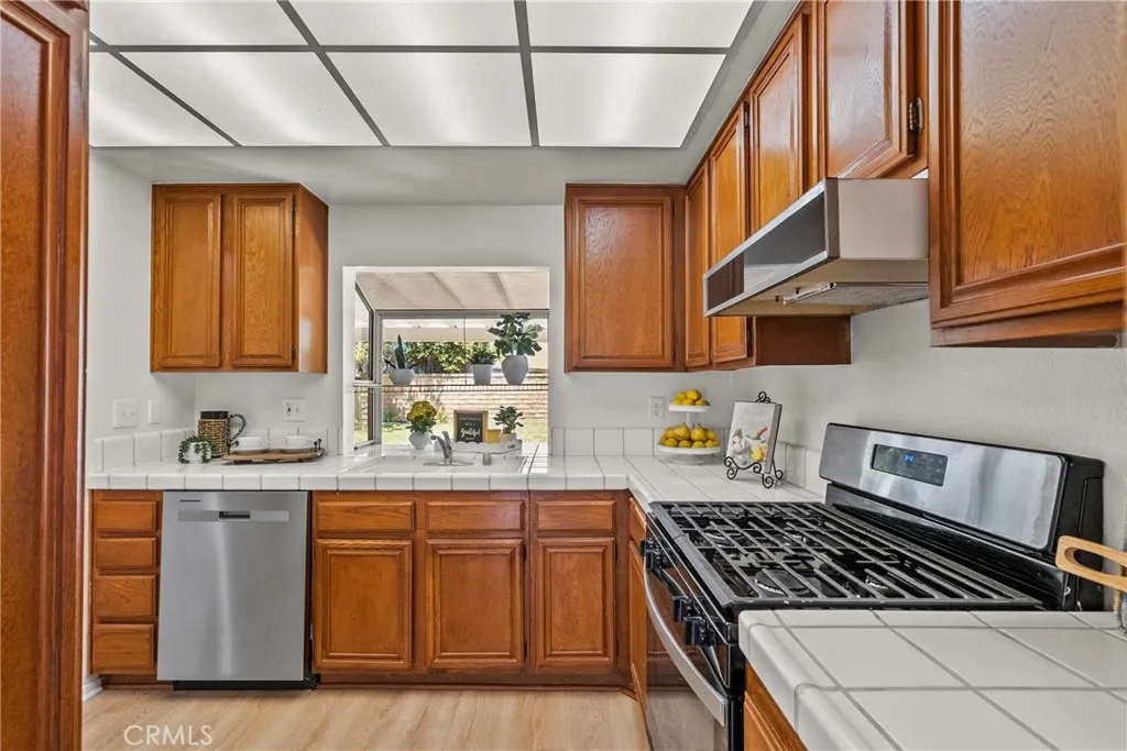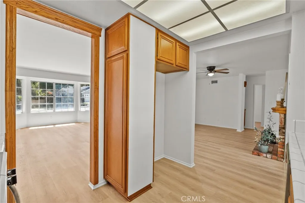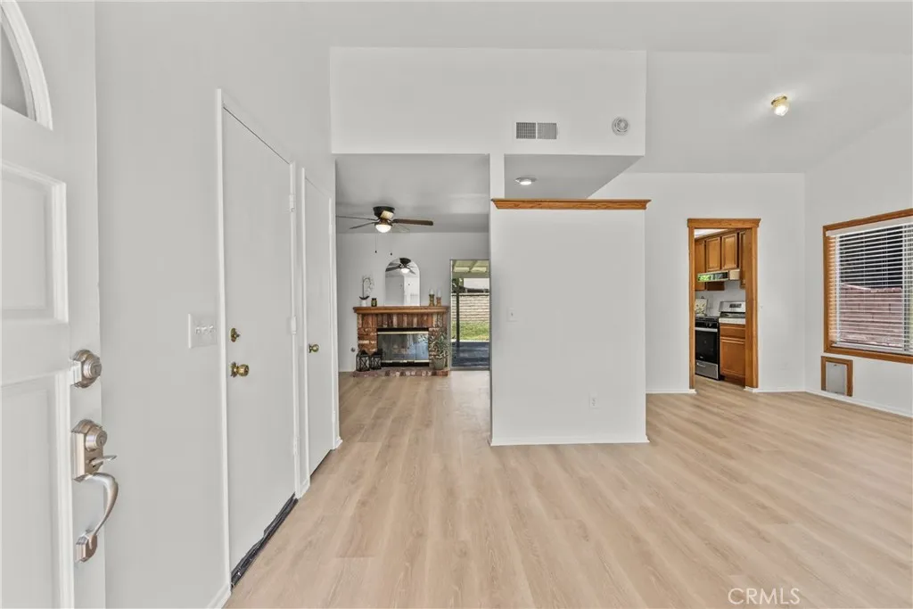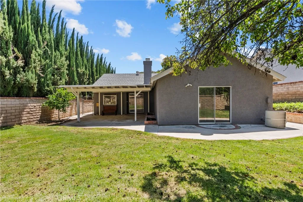 Welcome to this beautifully updated single-story home offering 3 bedrooms and 2 bathrooms, ideally situated in a quiet, desirable neighborhood. This inviting residence features LifeProof brand luxury vinyl plank flooring and fresh interior paint throughout, creating a bright and modern atmosphere. The spacious floor plan showcases a large living room with a stunning bay window and a formal dining area with soaring ceilings—perfect for entertaining. The cozy family room features a beautiful brick fireplace and ceiling fan, providing a warm and comfortable space to relax. The kitchen is equipped with updated appliances and a charming garden window that fills the space with natural light. The primary suite offers a walk-in closet, ceiling fan, and a sliding glass door leading to a private backyard retreat. Two additional generously sized bedrooms include ample closet space and new window blinds. Step outside to a beautifully maintained backyard featuring a covered patio, mature trees, including a mature shade tree and a lemon tree, along with a spacious grassy area—ideal for gatherings or peaceful evenings outdoors. The property also includes an enclosed dog run with convenient dog door access into the home, perfect for pet lovers. Ceiling fans in all bedrooms and the family room enhance year-round comfort. Additional highlights include newer exterior paint, a newer roof, and a direct-access 2-car attached garage with built-in cabinets for added storage and convenience. Conveniently located near freeway access, shopping, dining, and local parks, this home is just minutes from Castaic Lake Recreation Area, Castaic Sports Complex, Santa Clarita Mountain Bike Park, and Six Flags Magic Mountain, as well as close to the Valencia/Castaic industrial park—offering excellent access to both recreation and employment centers.