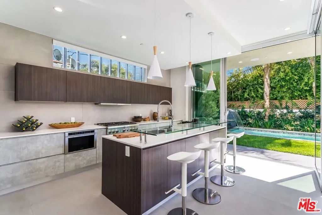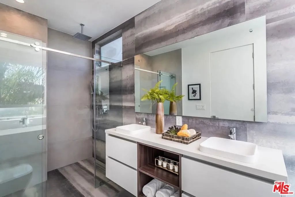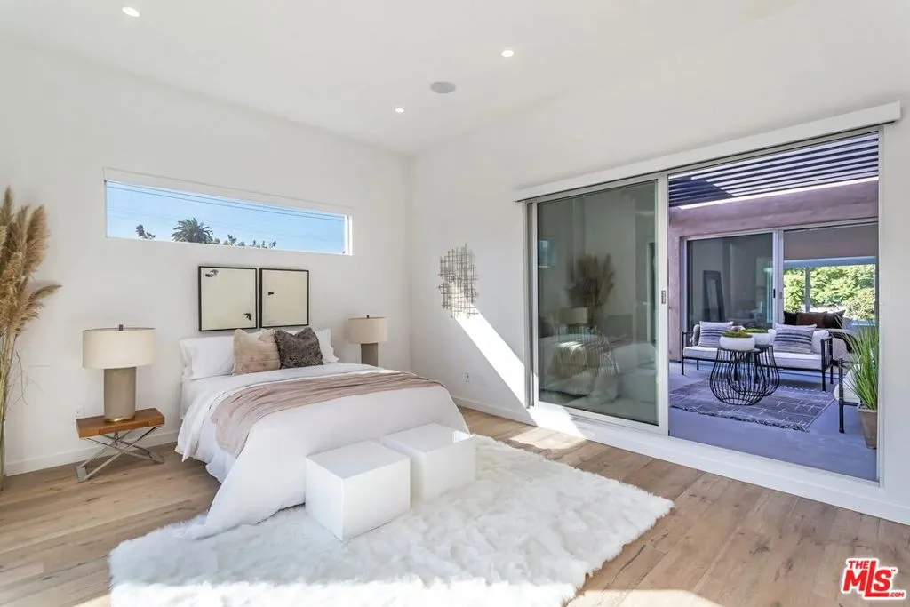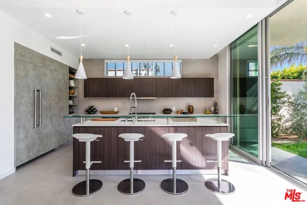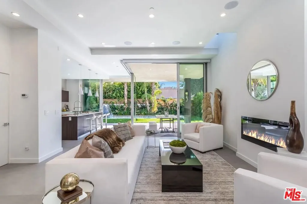 Located mid-block in coveted West Hollywood West, this sleek two-story contemporary residence is designed for effortless indoor-outdoor living. Expansive walls of glass open to a private outdoor setting with a dining area, grassy yard, pool, and spa. The main level is ideal for entertaining, featuring soaring ceilings, concrete floors, a streamlined kitchen, Fleetwood doors, and a well-appointed office/den. Upstairs, white oak hardwood floors lead to two en-suite bedrooms, including a spacious primary suite with a walk-in closet and spa-like bath with a glass shower and separate soaking tub. A second-floor patio adds to the home's seamless flow and connection to the outdoors. Filled with natural light and offering exceptional privacy, this home is just moments from Cedars-Sinai, the Pacific Design Center, Melrose Place, Craigs, Cecconis, Great White and more.
