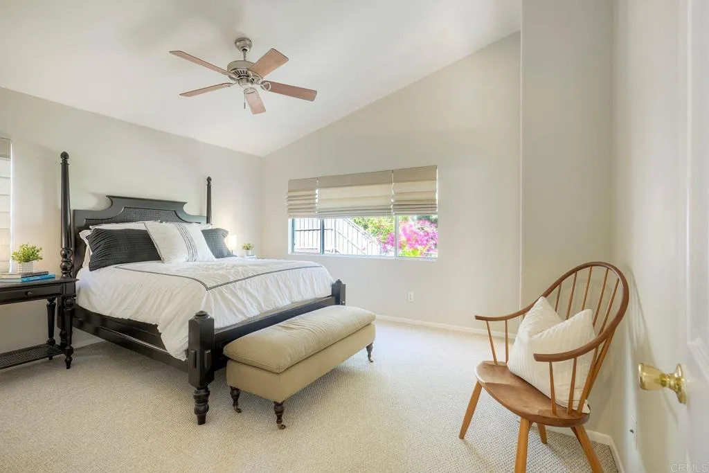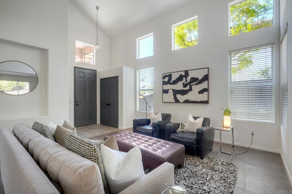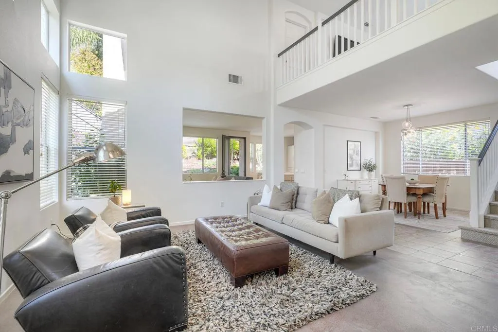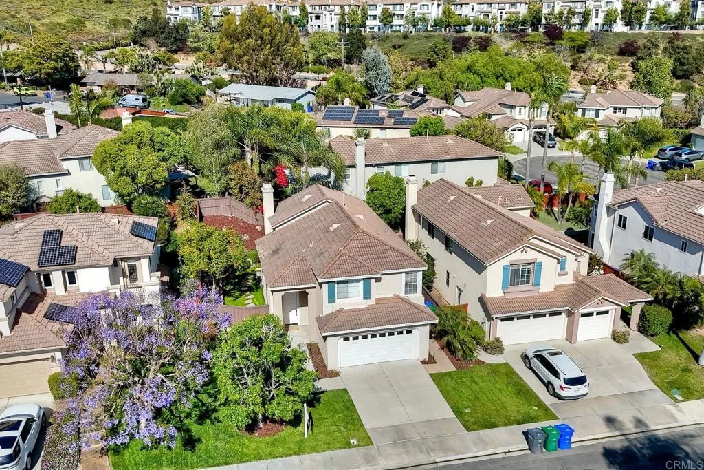 Searching for a spacious home on a nice cul-de-sac in Carlsbad? What you seek is seeking you. This inviting residence showcases a thoughtfully designed floor plan, beginning with a warm, welcoming entry. Soaring high-volume ceilings, abundant natural light from expansive windows, and elegant 8-foot doors enhance the sense of space throughout. The open-concept layout seamlessly connects the living, dining, and kitchen areas, creating an ideal setting for both everyday living and effortless entertaining. Additional highlights include a convenient interior laundry room, a cozy fireplace for added comfort, and a private backyard perfect for relaxing or hosting gatherings. Upstairs, the generously sized primary suite features a well-appointed walk-in closet. Two additional bedrooms and a versatile loft provide flexible living options—ideal for a home office, media room, or easily converted fourth bedroom. Built in 2000, this home offers a solid, well-maintained feel throughout. Its prime location provides easy access to all Carlsbad has to offer, including shopping, dining, and top amenities, while still maintaining a sense of privacy and tranquility. Additional highlights include air conditioning and access to desirable HOA amenities, including a pool, spa, sports court, large playground and expansive grassy park areas for only $175 per month. A true value. If you’ve been waiting for the right home in the right location, this is the one!