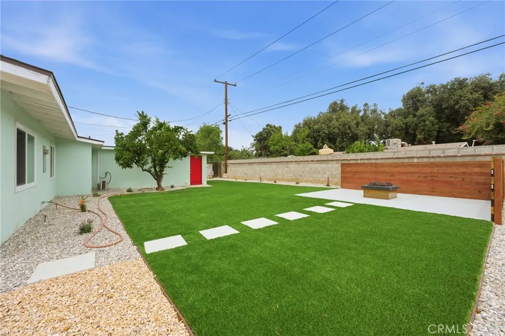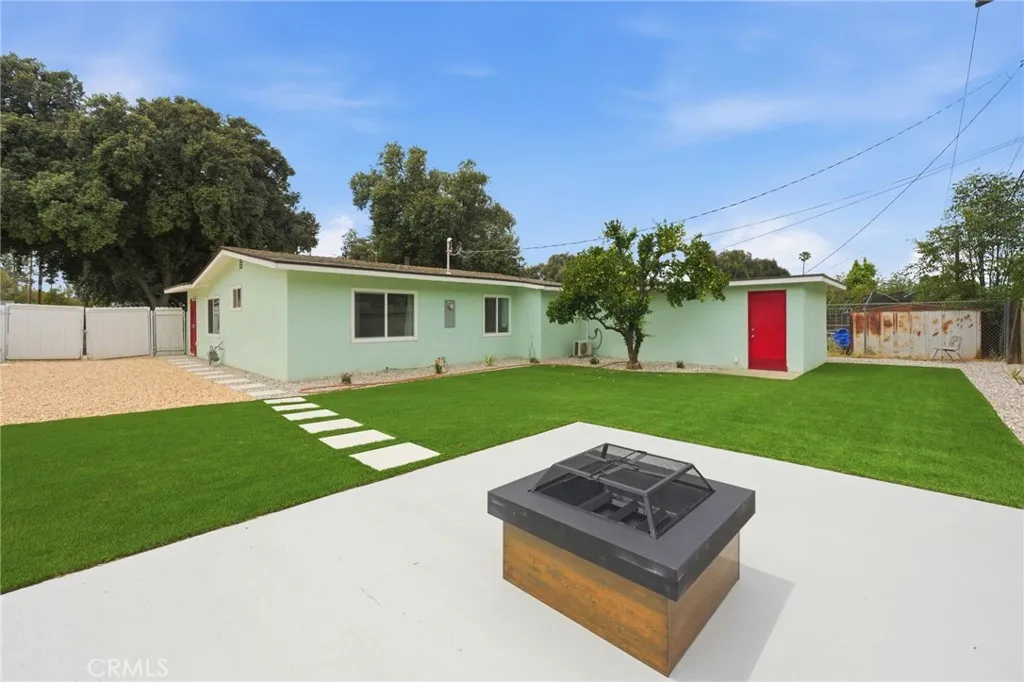 Beautifully remodeled Riverside gem offering modern style, smart design, and an outdoor space built for living. This turnkey single-story features 2 bedrooms, 1.25 bathrooms, and a versatile flex room ideal as a home office, nursery, or creative studio. The fully reimagined kitchen is the heart of the home, showcasing crisp white shaker cabinetry, a stunning waterfall quartz island with dramatic veining, brand-new GE stainless steel appliances including a gas range, and wide-plank LVP flooring that flows seamlessly throughout. Step outside to a true entertainer’s backyard featuring lush, low-maintenance turf, a poured concrete pad perfect for a fire pit, lounge seating, or alfresco dining, and a custom horizontal wood accent wall that anchors the space with warmth and modern style. Designer paver pathways, mature citrus, and gravel accents complete the landscape. The fully turfed front yard with manicured planters delivers exceptional curb appeal. Set on a generous 6,534 sqft lot, this move-in ready home is a rare blend of style, space, and value.