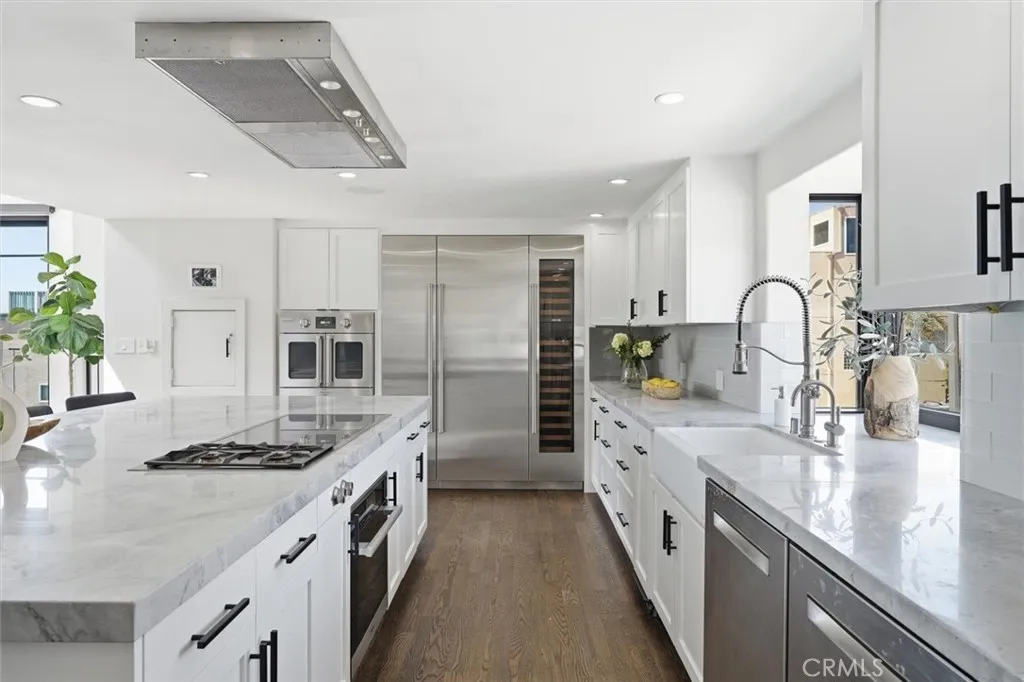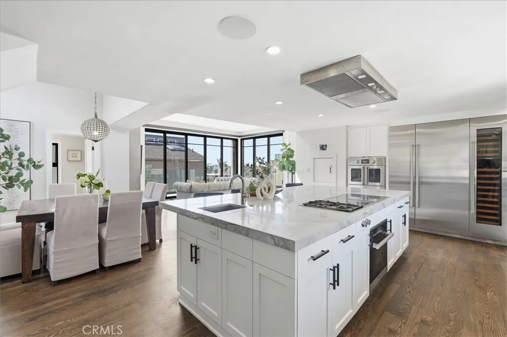 Welcome to 316 8th Street—a beautifully remodeled coastal retreat offering nearly 3,500 square feet of living space, blending modern upgrades and effortless beach living in the heart of Hermosa Beach. This exceptional residence offers four spacious bedrooms plus a versatile bonus room complete with its own closet and bathroom—ideal as a fifth bedroom, guest suite, office, or flex space to fit your lifestyle. A very spacious loft adds yet another dimension to the home, perfect for a media room, game area, secondary living space, or creative studio. Built prior to current height restrictions, the home features vaulted ceilings that create exceptional volume and natural light—an increasingly rare attribute in today’s coastal construction. This pre-existing advantage contributes to a level of scale and livability that is rarely achievable today, as similar building height cannot be recreated under current zoning standards. Thoughtfully upgraded throughout, the home includes Lutron automated lighting, motorized living room blinds, and a comprehensive 24/7 wired security camera system with DVR for enhanced reliability and peace of mind. Cat 6 wiring provides high-speed connectivity, while a whole-home water softener adds everyday comfort. Additional features include central A/C and a premium Sonos sound system for seamless audio. Designed for both everyday living and elevated entertaining, the chef’s kitchen is truly one-of-a-kind. Outfitted with top-tier appliances, it boasts dual dishwashers, a modular Gaggenau induction cooktop paired with gas, a BlueStar French door oven, and a Miele steam oven with built-in sous vide capability. A Sub-Zero refrigerator, wine fridge, and plumbing for an espresso machine complete this culinary masterpiece. The top floor deck showcases unobstructable panoramic ocean views, creating the ultimate setting for sunset dinners, morning coffee, or hosting guests against a breathtaking coastal backdrop. Recently remodeled with thoughtful attention to detail, this home offers the perfect blend of sophistication, functionality, and the quintessential Hermosa Beach lifestyle—all just moments from the sand, shops, and vibrant local dining.