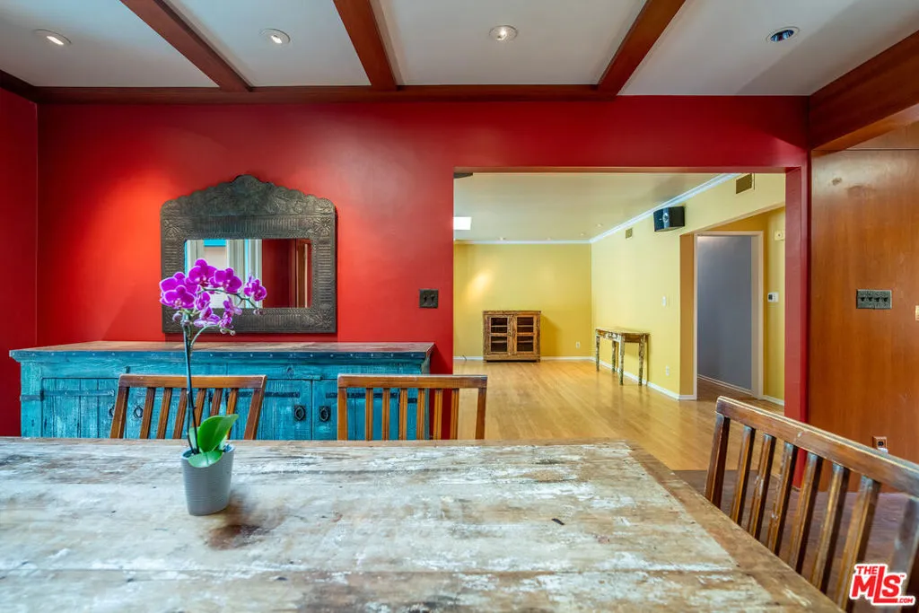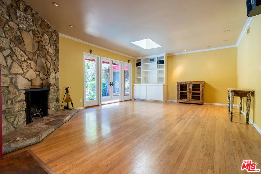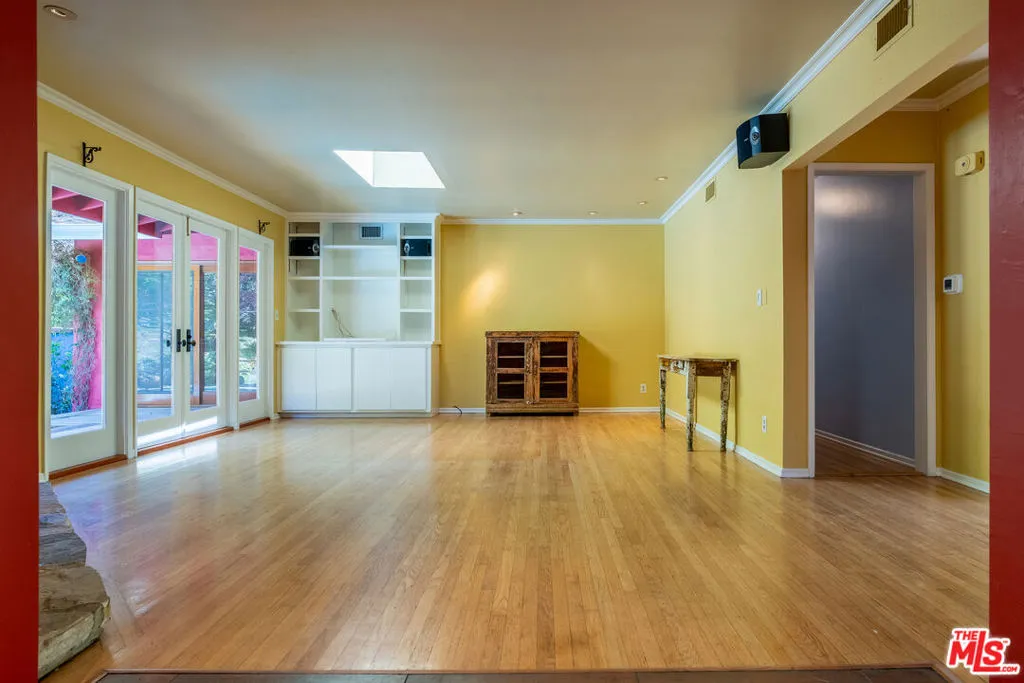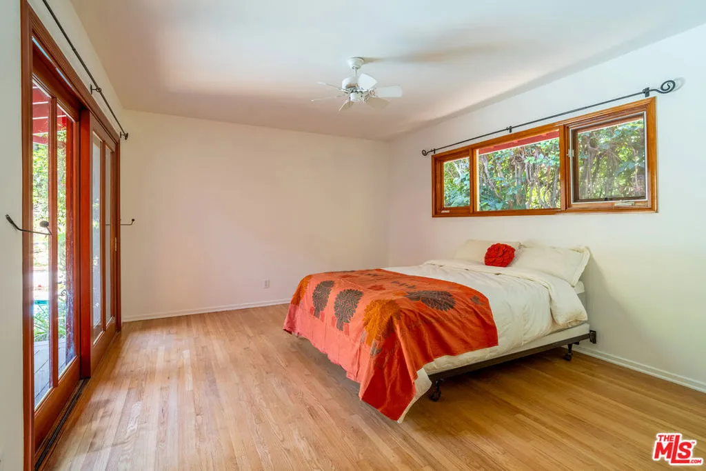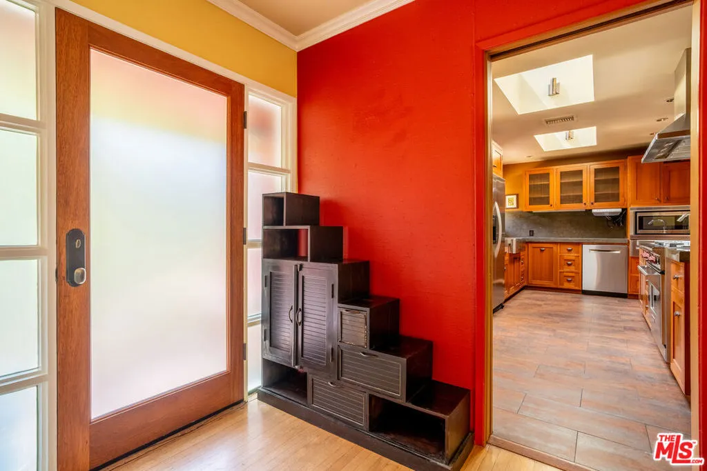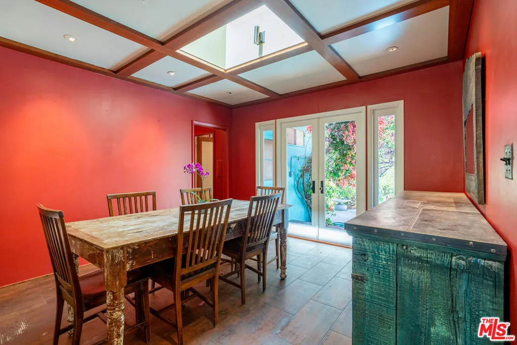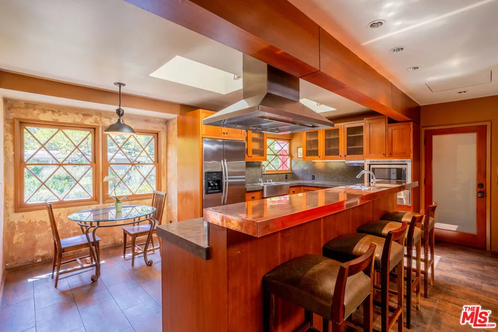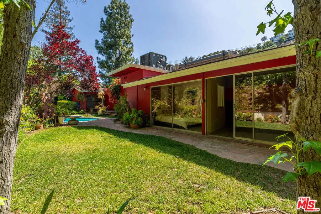 Tucked off Mulholland in the heart of Laurel Canyon, the Red Barn House is a three-bedroom, three-bath canyon retreat that feels like a world apart - freshly repainted inside and out, full of character, and set on a lush 9,303 sq ft lot in the coveted Wonderland School District. Soaring skylights flood the 2,341 sq ft interior with natural light, and the warm finishes throughout are exactly what you'd want in a canyon house. In the kitchen, honed limestone countertops give way to a copper bar top - rich, tactile, and full of character that only deepens over time. The pool and surrounding patio receive sun throughout the day, creating a private outdoor sanctuary built for year-round al fresco living. The attached studio is perfect for a music room, home office, guest suite, playroom, or creative den. Partially furnished and move-in ready, with room to make it your own. Minutes from the Sunset Strip, but feels like your own little world.