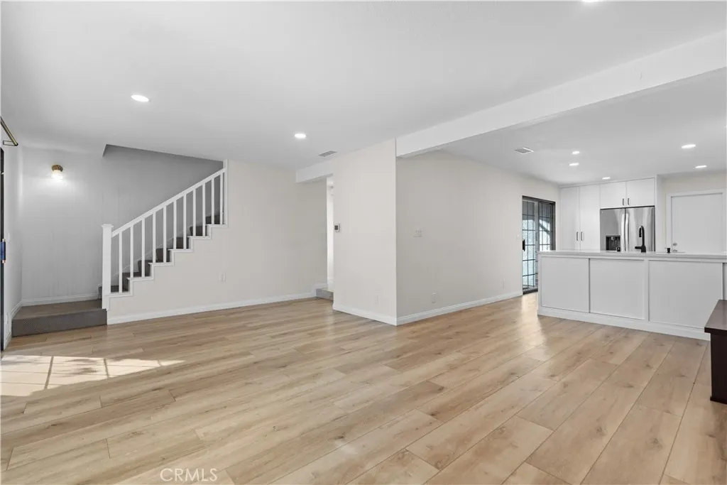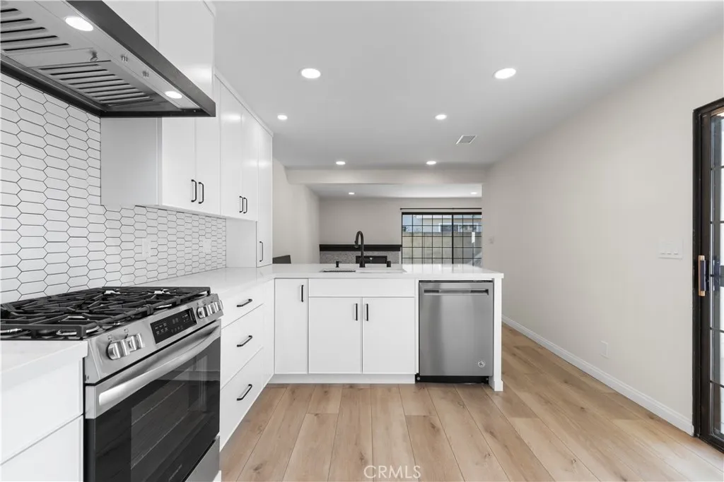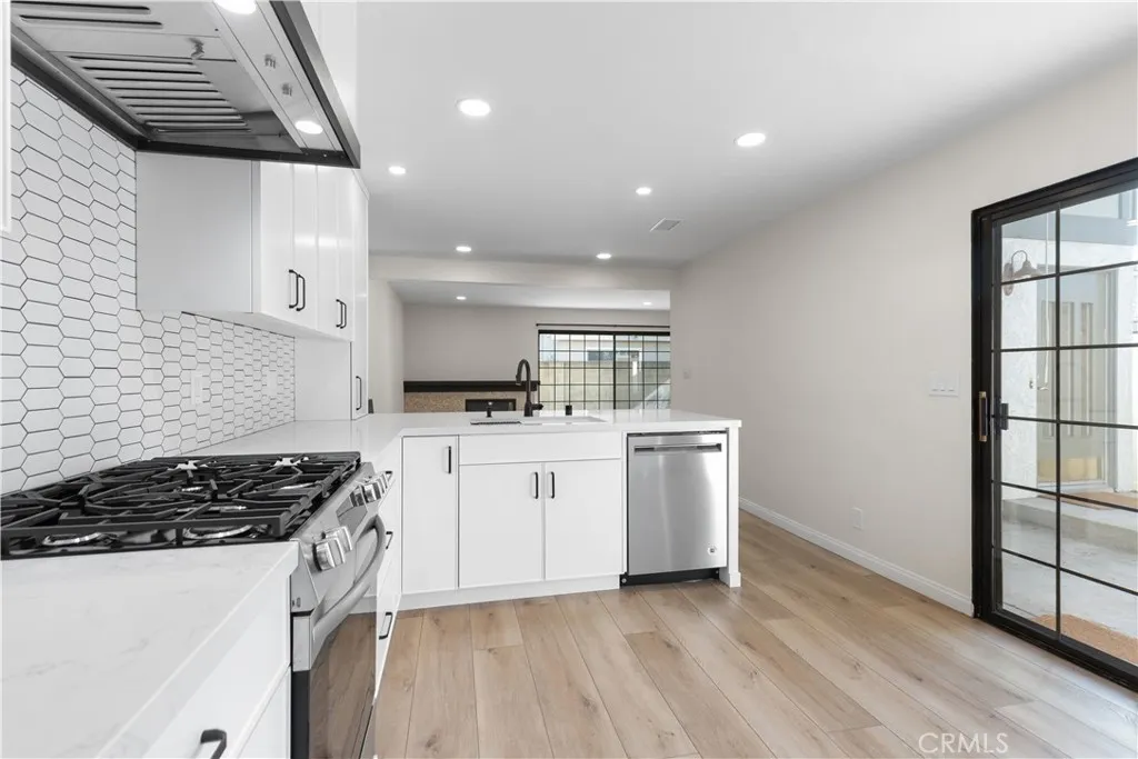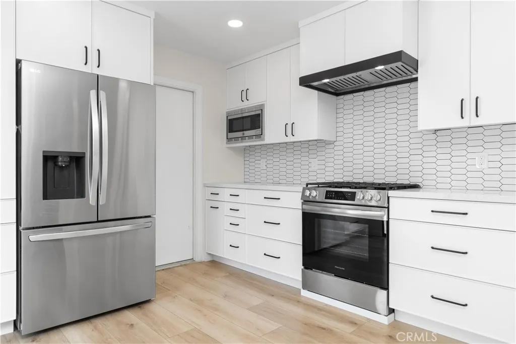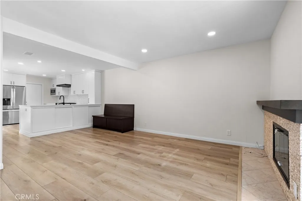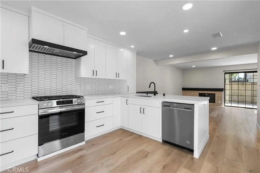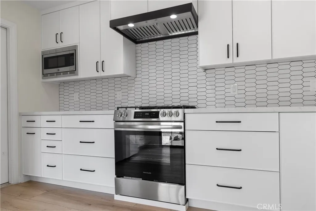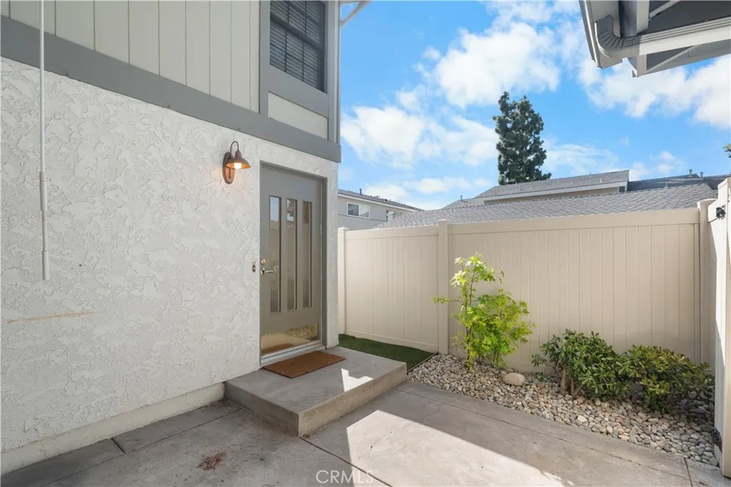 Stylishly renovated single-family attached home available for lease in the desirable Tustin Foothills, located in the Tustin Unified School District and attending Foothill High School. This two-story home offers an expansive, open feel and designer finishes throughout. The fully remodeled kitchen features white shaker cabinetry to the ceiling, quartz countertops, an elongated hexagon tile backsplash, a large center island with breakfast bar seating, matte black hardware and faucet, a sleek black range hood, and a full suite of stainless steel appliances including a French door refrigerator, gas range, built-in microwave, and dishwasher. The kitchen flows seamlessly into the dining and living areas — ideal for everyday living and entertaining. The living room features luxury vinyl plank flooring, recessed lighting, a fireplace, and a steel-framed sliding glass door that opens to the private patio and floods the space with natural light. Upstairs, the bedrooms offer vaulted ceilings with exposed beams, ceiling fans, hardwood floors, and generous closet space. The primary suite includes two closets and a private balcony with treetop views. The bathroom features granite counters, a wood vanity, tile backsplash, and a glass-enclosed shower. Additional highlights include a two-car attached garage with washer and dryer included, a gated front entry, and a private front courtyard with low-maintenance landscaping. Community amenities include a pool, spa, and greenbelts. Ideally situated near Tustin Marketplace, The District, Old Town Tustin, Peppertree Park, and Tustin Sports Park. Walkable to restaurants, cafes, and grocers including Trader Joe's, Sprouts, Albertsons, Target, and CVS. Easy access to the I-5, 55 Freeway, and Jamboree Road with quick connections to Irvine, Santa Ana, Orange, and major Orange County employment centers.