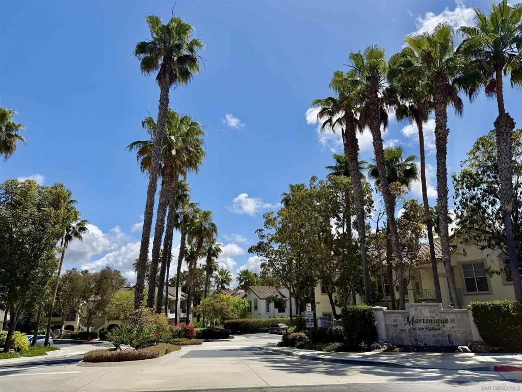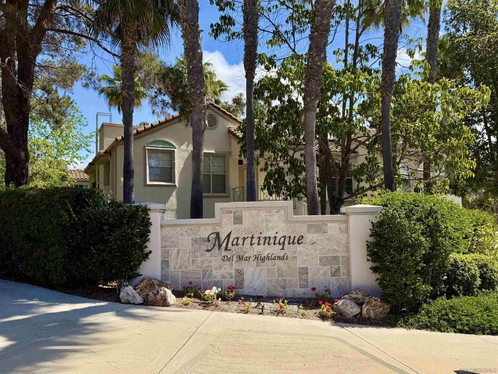 Welcome to the sought-after Martinique community in the heart of Carmel Valley, where location and lifestyle come together effortlessly. This ideally positioned top corner residence is nicely updated with stainless steal appliances. Just moments from One Paseo and Del Mar Highlands Town Center—offering an exceptional blend of upscale dining, curated boutiques, entertainment, and everyday conveniences. Covered unit space is 608. Welcome to the sought-after Martinique community in the heart of Carmel Valley, where location and lifestyle come together effortlessly. This ideally positioned residence is just moments from One Paseo and Del Mar Highlands Town Center—offering an exceptional blend of upscale dining, curated boutiques, entertainment, and everyday conveniences. This home is also conveniently located approximately 2.8 miles from the breathtaking Torrey Pines State Beach and Torrey Pines State Natural Reserve, offering endless opportunities for outdoor recreation, hiking, and coastal enjoyment. Home includes a newer dishwasher and water heater (both approximately 2 years old). A charming park sits directly across the street, complete with mature trees, picnic tables, and a playground—perfect for relaxing or spending time outdoors. With top-rated schools nearby and quick access to Interstate 5 just minutes away, this home truly combines location, lifestyle, and convenience. Seller will participate in 1031 exchange.
