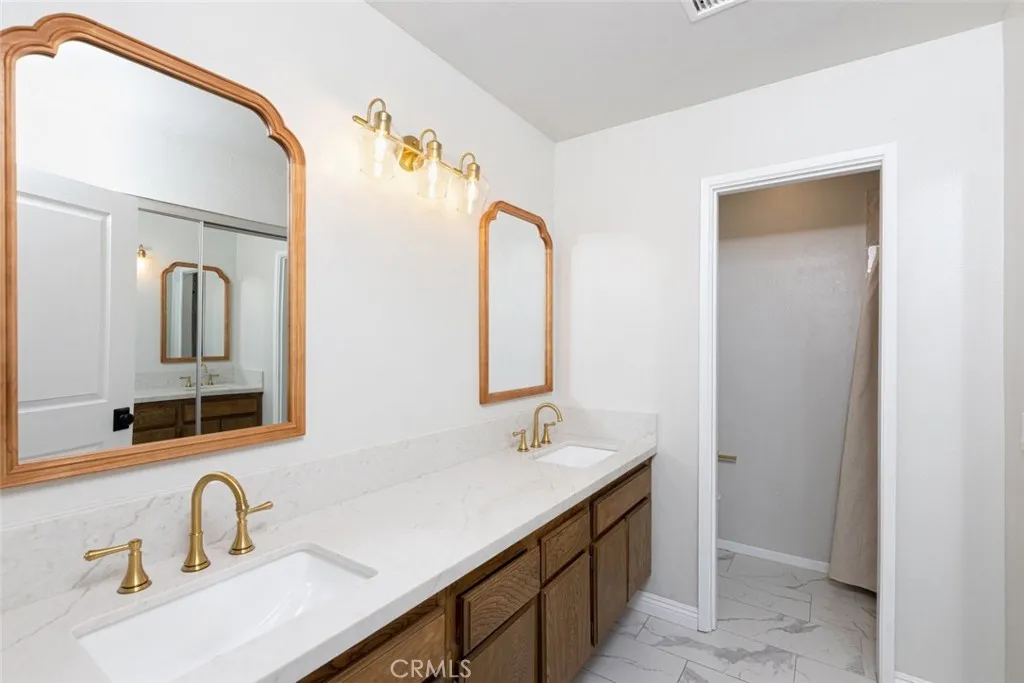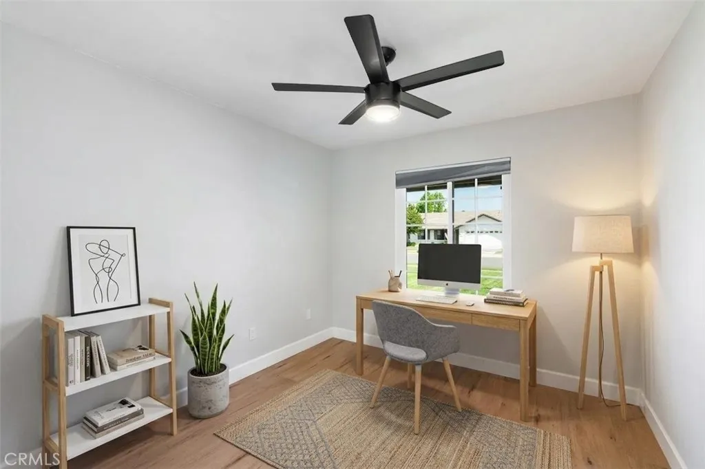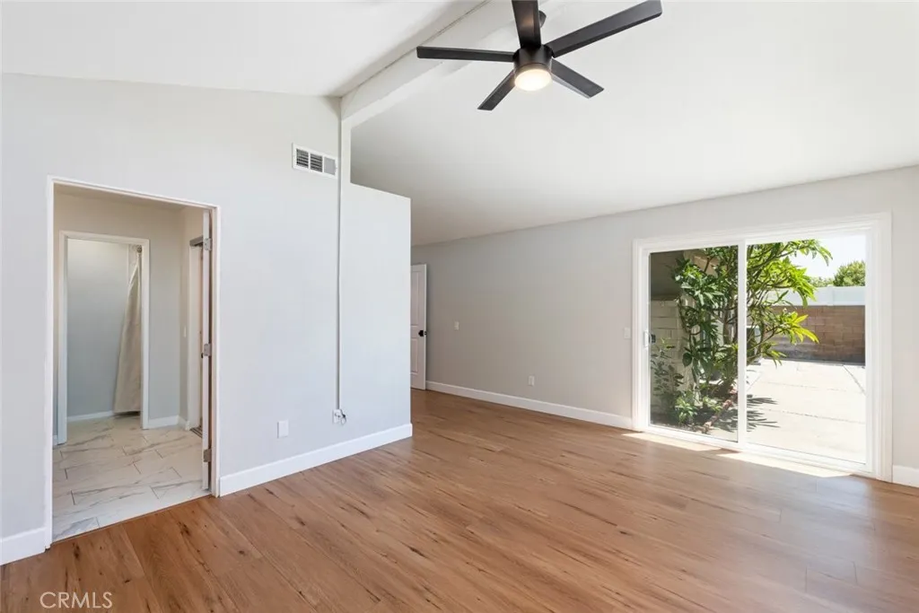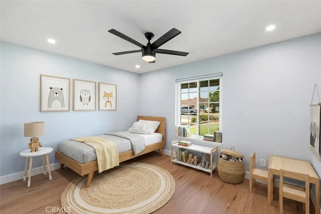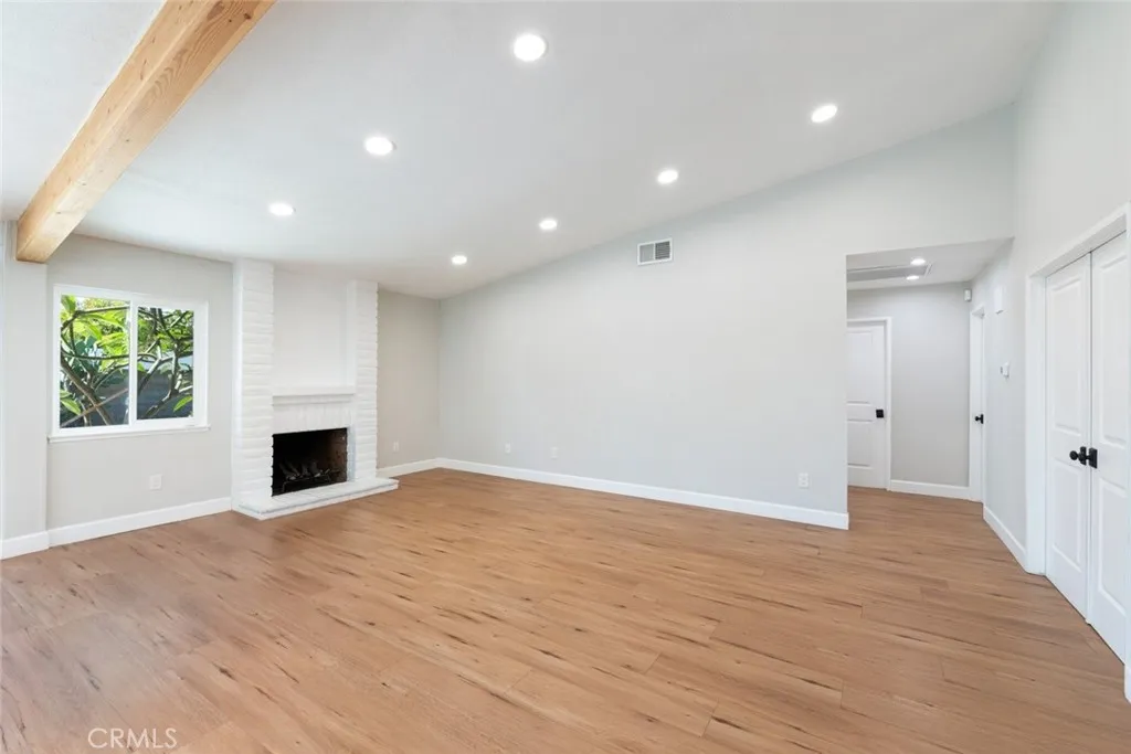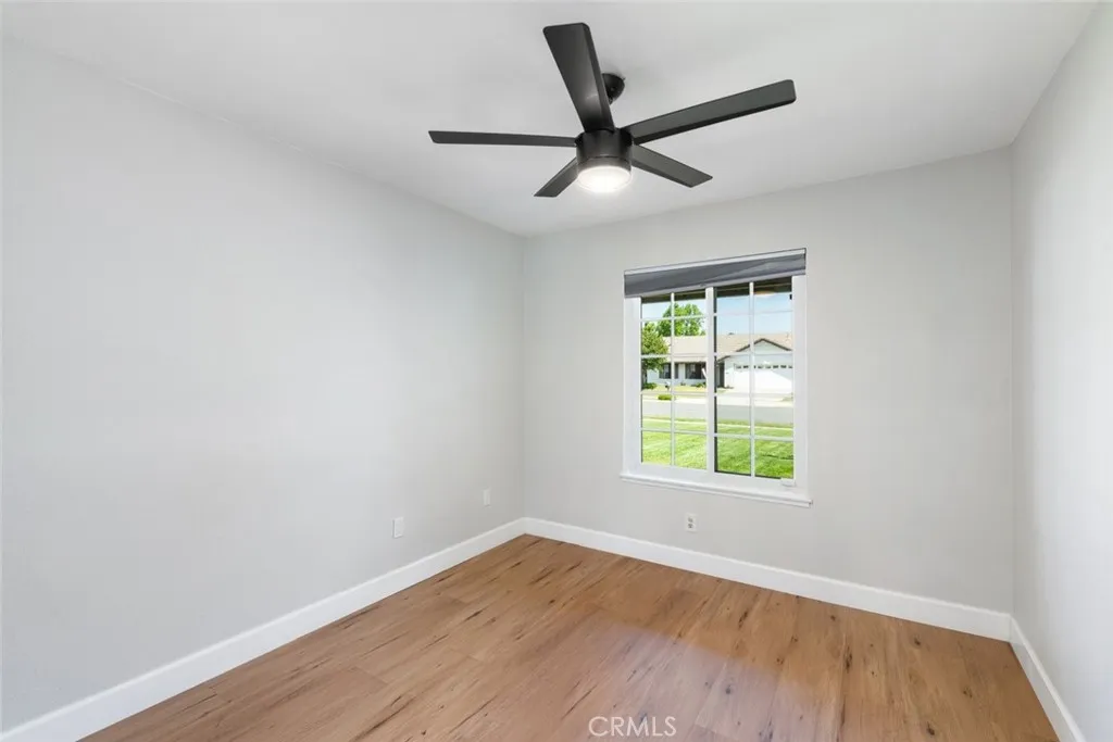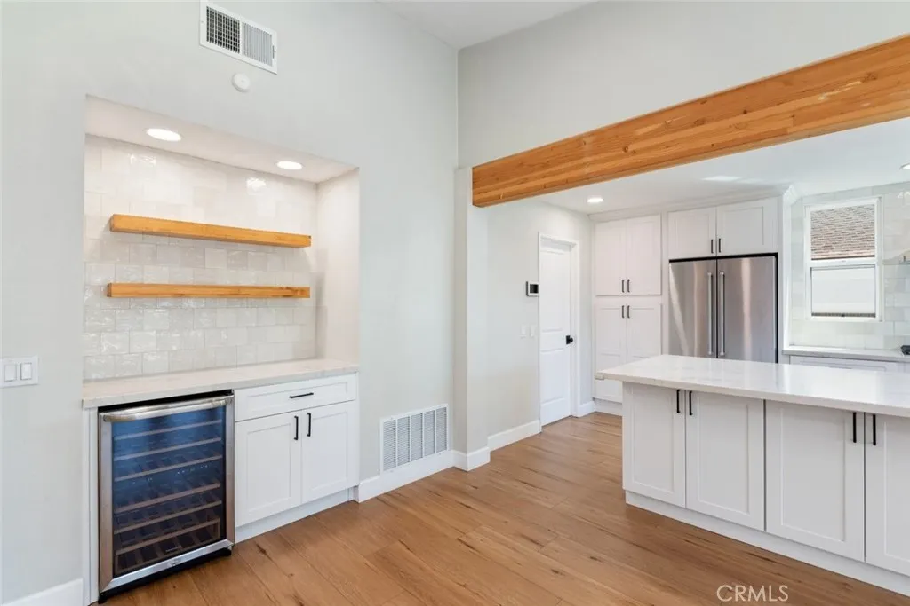 No expense was spared in transforming this beautifully updated single-story home. The 3-bedroom, 2-bath home has been thoughtfully improved inside and out, offering a blend of style, comfort, and functionality. The open-concept layout features soaring high ceilings with striking wood beams, recessed lighting, and a warm, inviting fireplace. At the heart of the home, the fully remodeled kitchen is a showpiece featuring premium Kitchen Aid appliances, an oversized island excellent for gatherings, a designer pot filler, and roll-out drawers. Complemented by a sleek backsplash and floating shelves, it’s great for both everyday living and entertaining. The space flows into the family room, which is equipped with a dry bar and a wine refrigerator - ideal for hosting. The luxury vinyl plank flooring extends throughout the entire home, providing an effortless flow from room to room. The inviting primary bedroom, features a double-door entry, continued high ceilings, direct access to the backyard through a newly installed sliding glass door, creating an indoor-outdoor connection. The primary bathroom features a functional layout with matching quartz countertops carried through from the kitchen, updated fixtures, a spa-like shower, and a spacious walk-in closet. The full secondary bathroom has been fully renovated with modern finishes that mirror the home’s overall style. Additional upgrades include ceiling fans in every bedroom, dual-pane windows, a newly installed roof, and an updated condenser, providing both comfort and peace of mind. Other highlights include an individual laundry room, a spacious driveway, nicely manicured, large front and back lawns with plenty of room to relax or customize. Conveniently located near Ontario Centennial and Kimball Community Park, along with Liberty Elementary School. Near the residence is access to shopping, dining, and major freeways. It’s a completely turnkey home.
