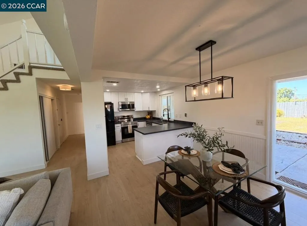 Fresh, stylish, and move-in ready, this home welcomes you with vaulted ceilings in the living room and abundant natural light through dual-pane windows. Inside, enjoy new interior paint, luxury vinyl flooring throughout, and designer lighting that adds a modern touch. The kitchen features sleek slab countertops, new appliances, and updated cabinetry—perfect for both everyday living and entertaining. Upstairs, a spacious bonus loft offers endless possibilities for a home office, media room, or play space. The primary suite is a true retreat with vaulted ceilings and a fully updated bath, complete with a walk-in tile shower and contemporary finishes. Set on an oversized lot of over 8,000 sq ft with no rear neighbors, the outdoor space offers privacy and room to create your ideal backyard. Just steps from Crockett Park and conveniently close to Highway 4 for an easy commute—yet far enough to enjoy peace and quiet—and just minutes from BART. Plus, you’re close to tons of shopping, dining, and entertainment, including Streets of Brentwood, making everyday convenience a breeze. Open House Saturday and Sunday 1-4.