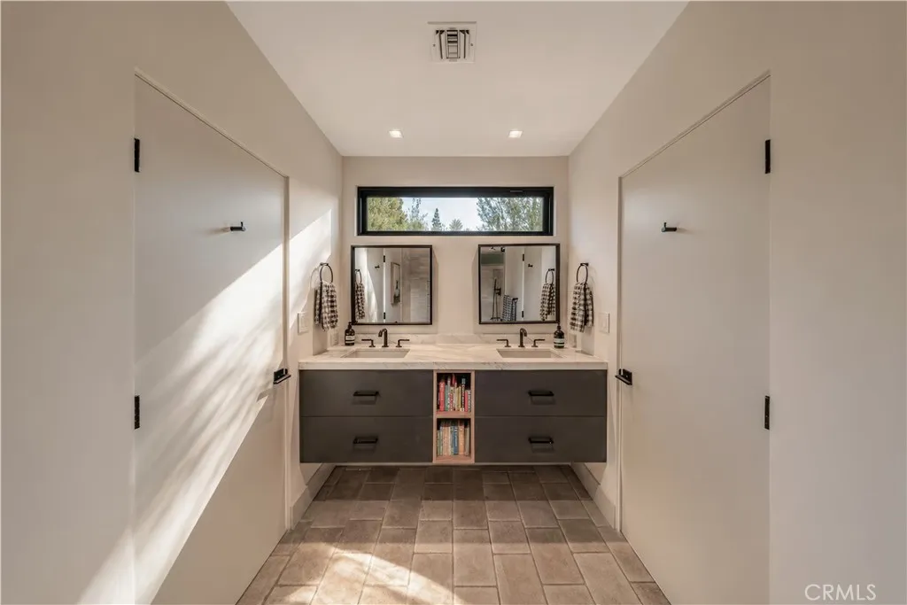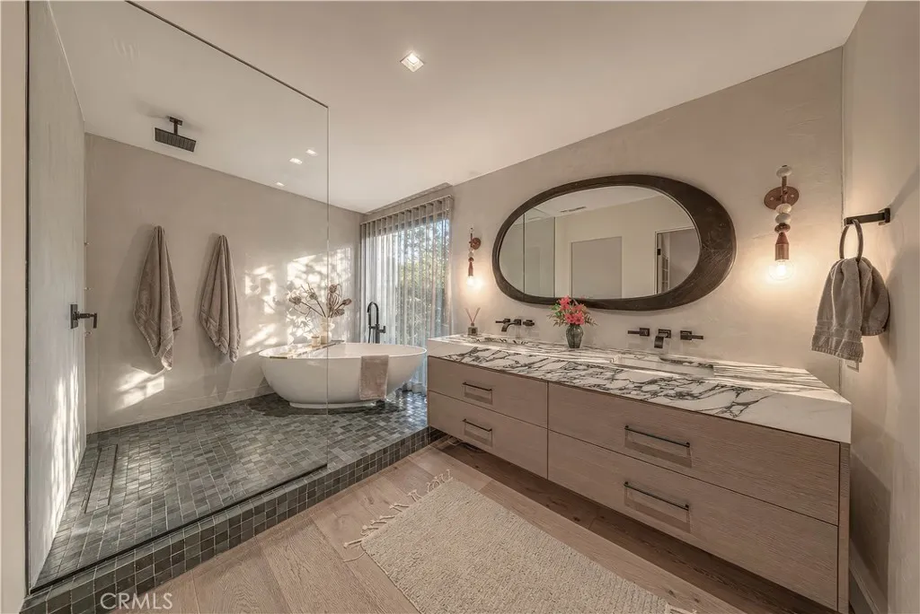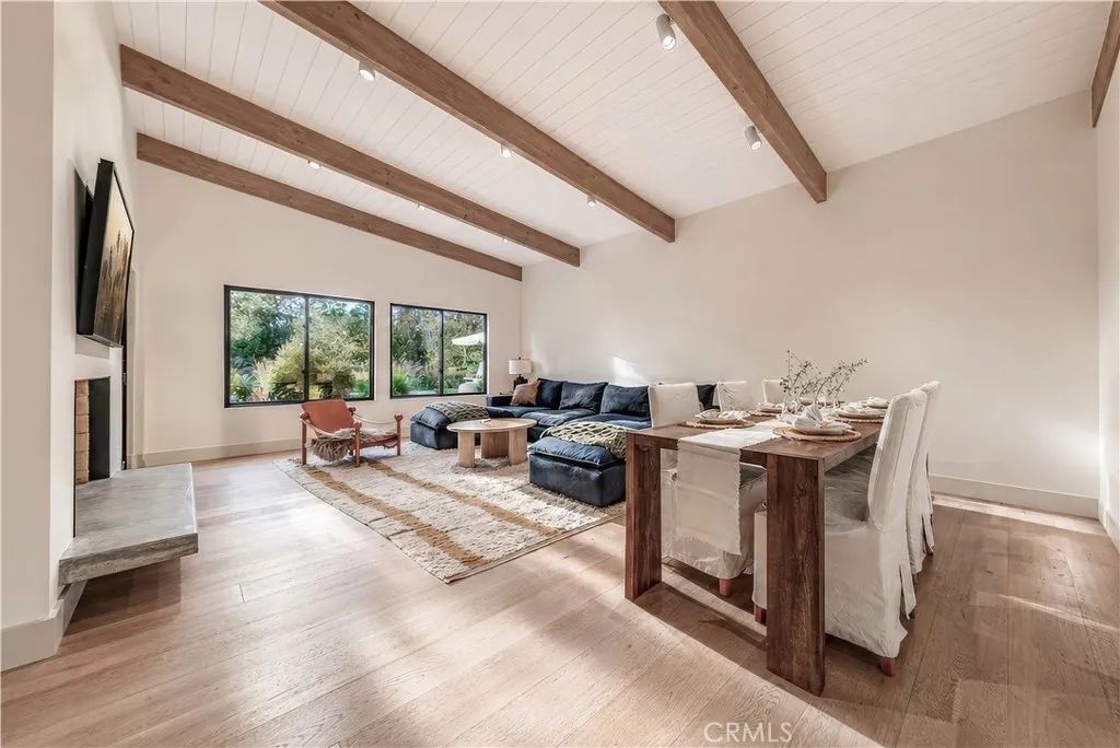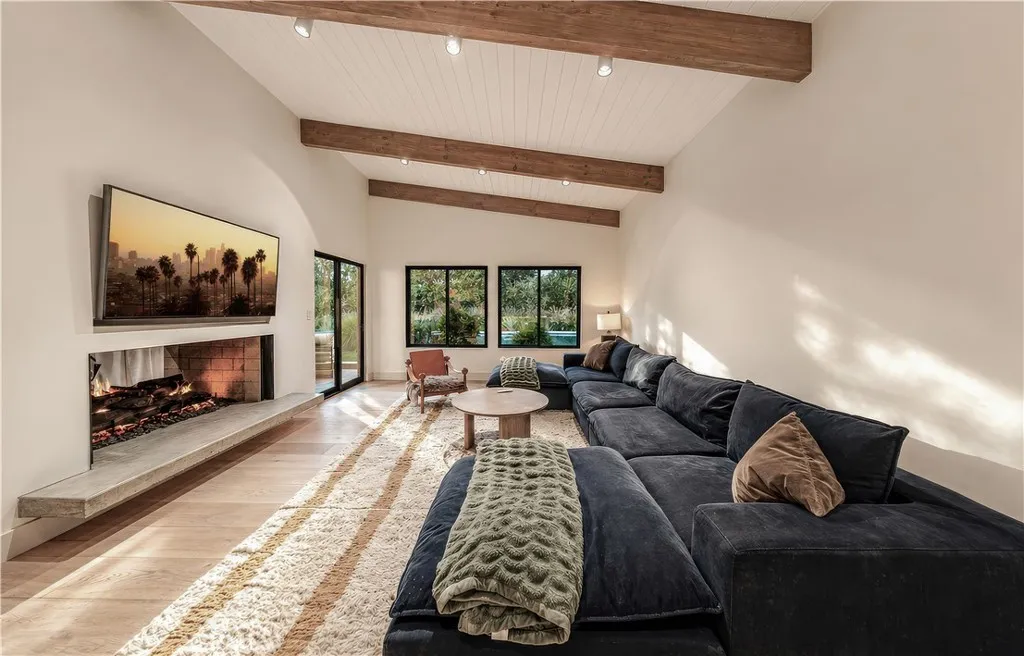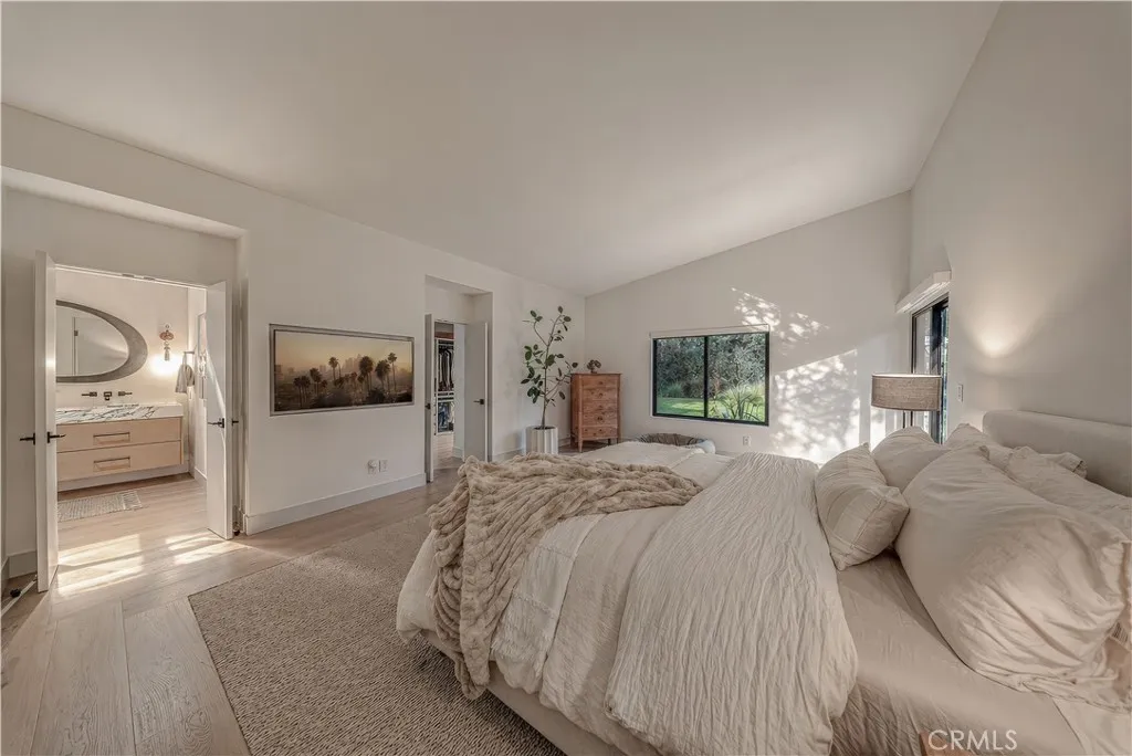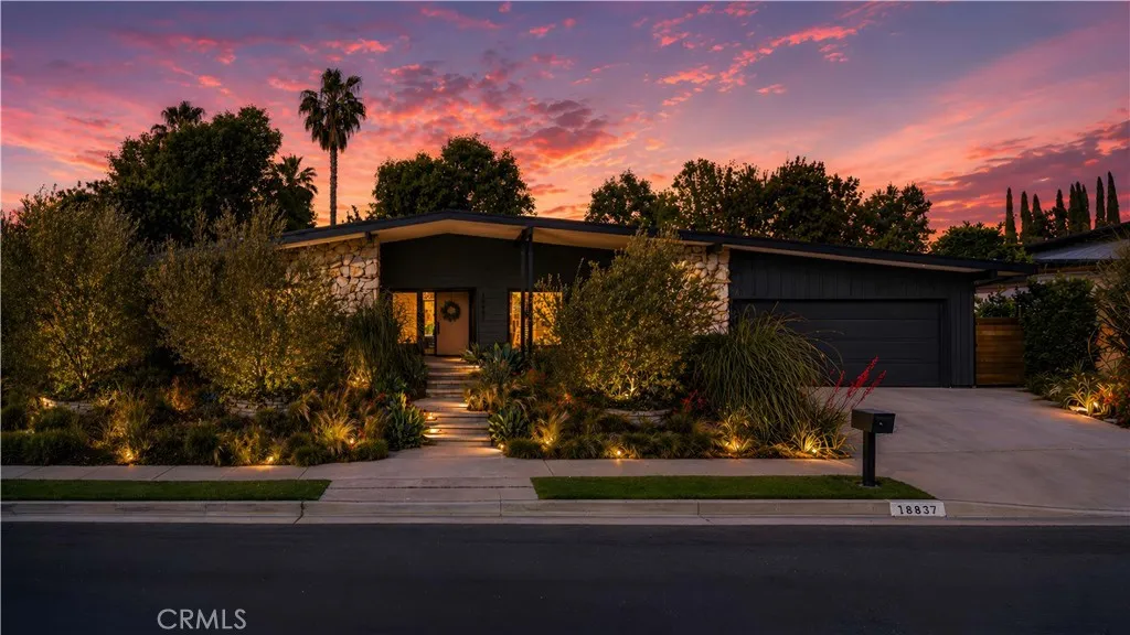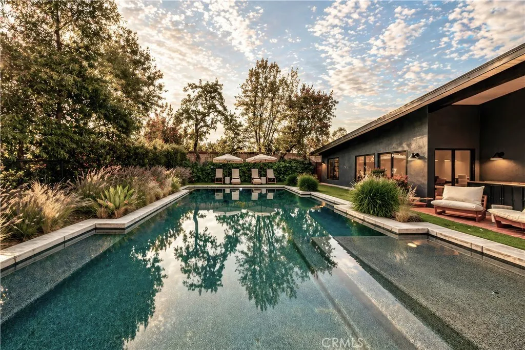 18837 Paseo Nuevo Dr., is a Single-story Charles DuBois home in one of Tarzana's most beautiful pockets, south of Ventura Blvd. Right by the Mulholland Country Club. This home is a fully rebuilt from the studs by an interior designer with attention to detail. Every permit finalized. Every system new. Walls removed to create the open floor plan DuBois always intended. Vaulted ceilings throughout. Italian Casabella hardwood floors. The gas fireplace fully restored. Recessed lighting. Built-in Sonos wired throughout interior and all backyard. The kitchen features a granite island with leather finish, custom ILVE range, Fisher & Paykel appliances, two dishwashers, and a plumbed-in Miele espresso machine. The primary suite is spacious, private and has direct access to the backyard. A dual walk-in closets and spa-caliber ensuite. Double vanity, soaking tub and shower. The three additional bedrooms including Jack & Jill connection and East Wing guest suite with pool views. Outdoors: $175,000 landscaping investment. 1,000+ plant varieties. Stepped garden. Artificial turf with lifetime warranty. Pool and spa fully remodeled. Full irrigation. In-ground drainage. New fencing, lighting, cement entryways, retaining walls, and gutters. 11,000 SQFT private lot that lives like a resort. 32 fully permitted solar panels, fully owned, not leased. Tesla Power-wall. New 200A electrical. New HVAC. New Class A roof. New plumbing. Lutron whole-home automation with motorized shades. All permits were finalized through City of Los Angeles 2019–2021. Minutes from Village Walk: Trader Joe's, Nordstrom Rack, Sephora, LA Fitness. 101 & 405 access. Turnkey in every sense.