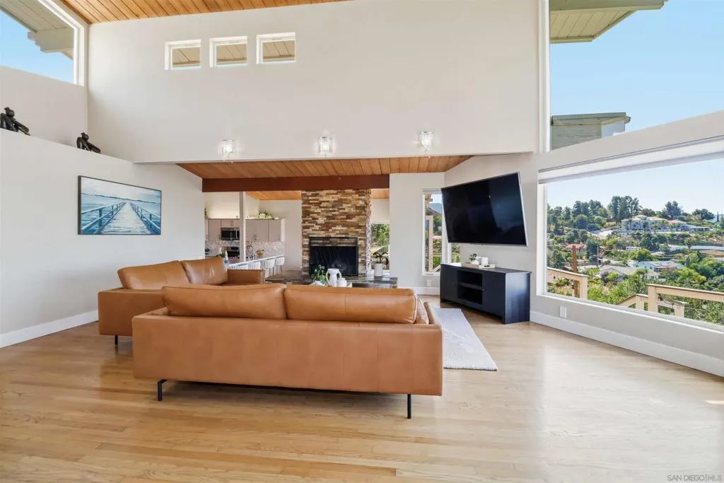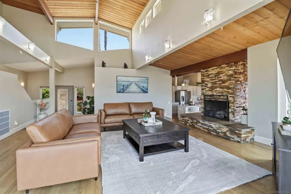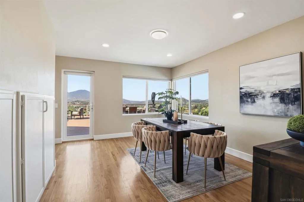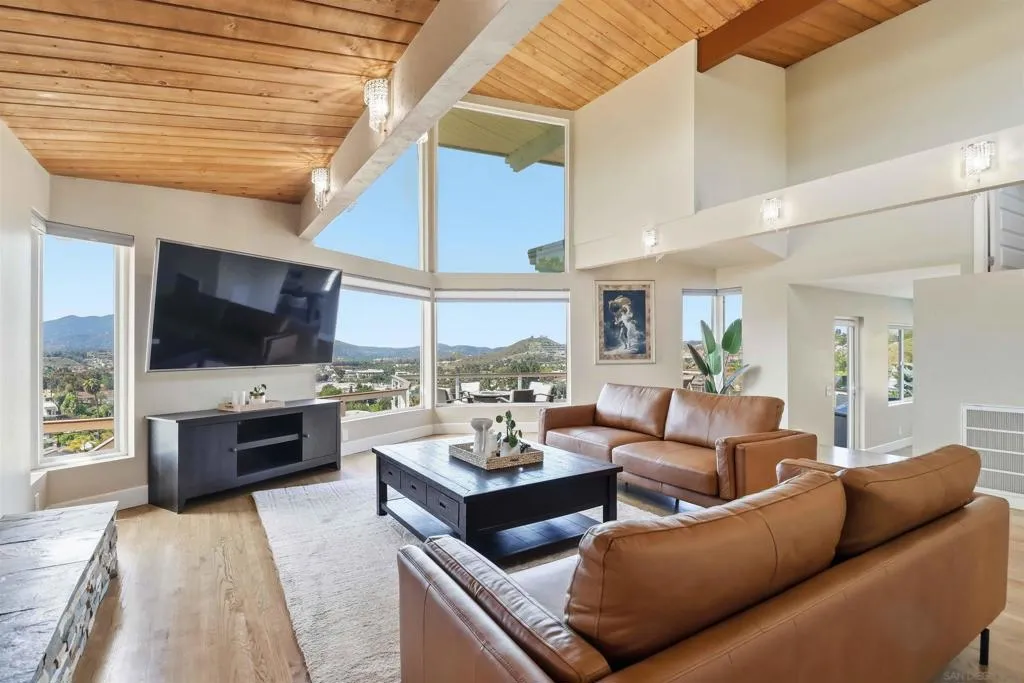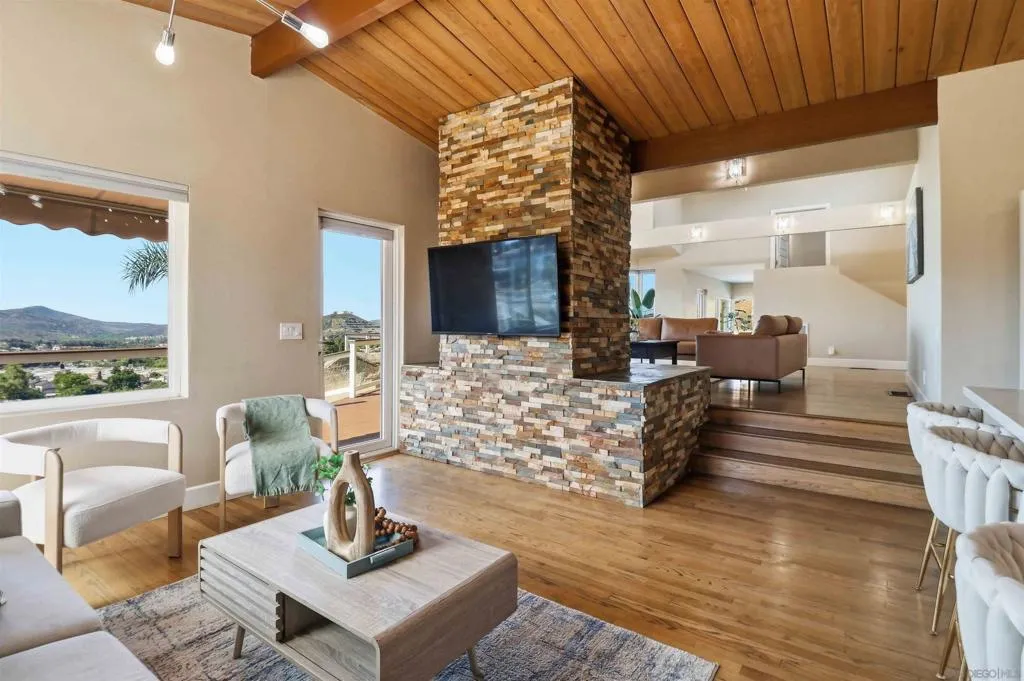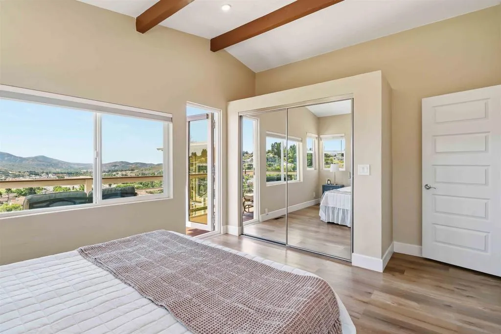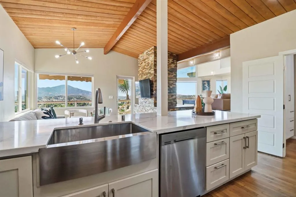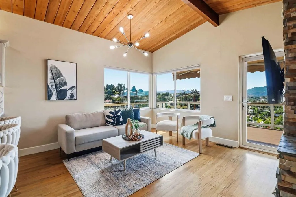 Extensively upgraded custom retreat showcasing panoramic views of the surrounding hills and valley from nearly every room. This private residence features a dramatic front entry with waterfall, lush landscaping, mature palms, wood stairs, boulders, citrus trees, exposed wood beam ceilings, hardwood floors, and beautiful tongue-and-groove cedar details. Enjoy resort-style outdoor living with a pool, spa, changing room, expansive wraparound Trex deck (~1,500 sq ft), multiple view decks and balconies, RV parking with full hookups, and a graded ADU pad. Recent upgrades include new double-pane Low-E windows and doors (2019), new stucco (2019), new entry stairs and concrete (2019), insulated garage doors (2019), fully remodeled kitchen with new appliances (2019), four updated bathrooms (2019), new plumbing and drywall (2019), dual-zone Trane AC (4-ton & 3-ton), new septic tank (2020), oversized storm drainage system (2020), widened driveway with new concrete and retaining walls, new RV parking pad with hookups, and a 12x16 barn-style workshop with 50-amp service. Outdoor upgrades include new pool, spa, and water feature plaster and equipment (2020), plus a finished garden area, creating a rare opportunity offering privacy, extensive upgrades, and exceptional indoor-outdoor living. Extensively upgraded custom retreat showcasing panoramic views of the surrounding hills and valley from nearly every room. This private residence features a dramatic front entry with waterfall, lush landscaping, mature palms, wood stairs, boulders, citrus trees, exposed wood beam ceilings, hardwood floors, and beautiful tongue-and-groove cedar details. Enjoy resort-style outdoor living with a pool, spa, changing room, expansive wraparound Trex deck (~1,500 sq ft), multiple view decks and balconies, RV parking with full hookups, and a graded ADU pad. Recent upgrades include new double-pane Low-E windows and doors (2019), new stucco (2019), new entry stairs and concrete (2019), insulated garage doors (2019), fully remodeled kitchen with new appliances (2019), four updated bathrooms (2019), new plumbing and drywall (2019), dual-zone Trane AC (4-ton & 3-ton), new septic tank (2020), oversized storm drainage system (2020), widened driveway with new concrete and retaining walls, new RV parking pad with hookups, and a 12x16 barn-style workshop with 50-amp service. Outdoor upgrades include new pool, spa, and water feature plaster and equipment (2020), plus a finished garden area, creating a rare opportunity offering privacy, extensive upgrades, and exceptional indoor-outdoor living.