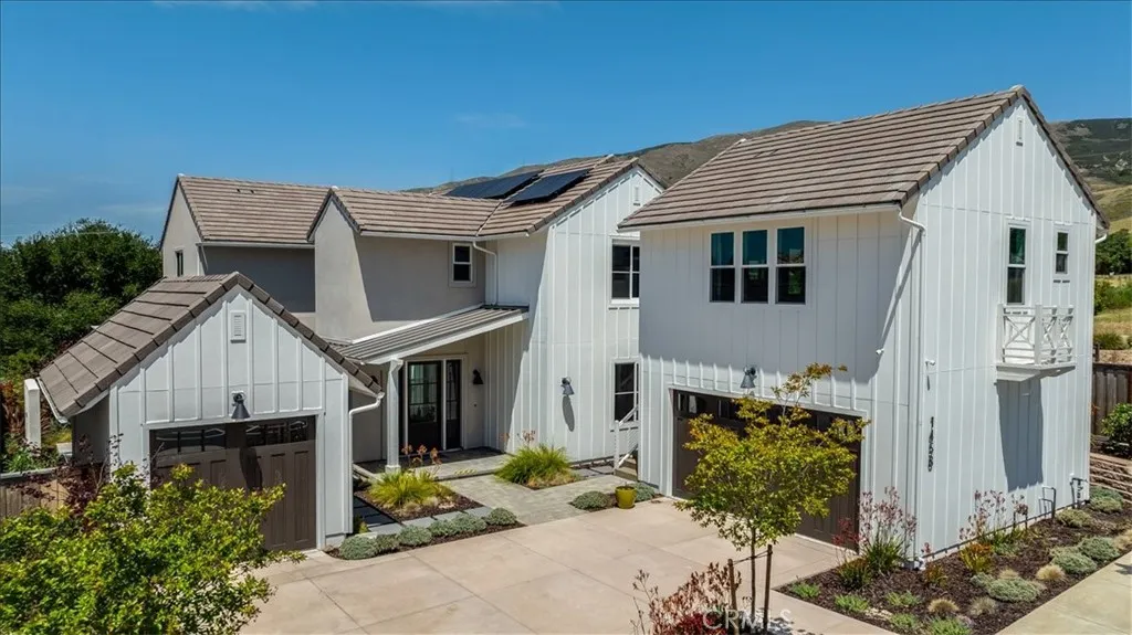 Luxurious living in the prestigious Enclave at Righetti Ranch, one of San Luis Obispo’s most sought-after communities. Completed in 2024, this former model home showcases exceptional craftsmanship, tall ceilings, European oak flooring, and top-of-the-line appliances. With over $700k added in options and upgrades, this home is turn-key; all you have to do is pack your bags. The primary residence offers approximately 3,363± square feet with four bedrooms, a dedicated office, and four-and-a-half bathrooms, thoughtfully designed for comfort and elevated living. A detached 473± square-foot guest suite above the two-car garage provides a fully independent studio residence with a shared balcony, wet-bar, and beverage fridge; ideal for guests, multigenerational living, or income potential. At the heart of the home, a gourmet kitchen features a waterfall quartzite island, full-size wine fridge, premium WOLF appliances including an 8-burner stove, and a built-in Sub-Zero refrigerator. The expansive great room offers a gas fireplace and large sliding glass doors leading to the landscaped backyard with a covered patio, with a full outdoor kitchen and gas bonfire area. The luxurious primary suite features hillside views, dual walk-in closets, and a beautifully appointed bathroom with a freestanding soaking tub, oversized dual-head shower, and marble finishes. Three additional bedrooms offer en-suite baths and walk-in closets, while the office provides flexible space for work or study. Additional amenities include designer fixtures, owned solar, multi-zoned climate control with Google Nest, tankless water heater with recirculating pump, a two-car garage and a detached single-car garage, and a well-appointed laundry room with GE appliances and built-in cabinets. Located within the highly regarded Los Ranchos School District and with close access to nearby hiking and biking paths, this remarkable property offers an exceptional lifestyle in one of the Central Coast’s premier communities.