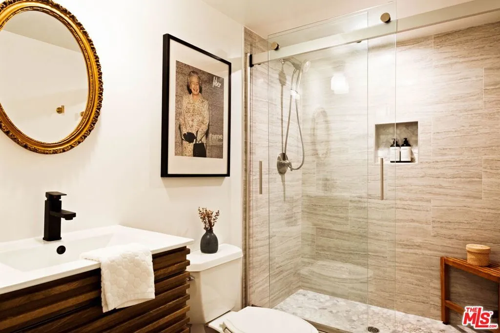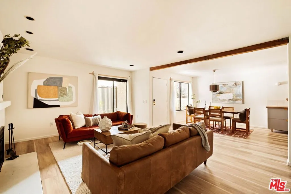 Welcome to resort living in the heart of the Hollywood Hills! This stylish 2-bed, 2-bath condo offers rare privacy with only one shared wall, creating a peaceful retreat above the city. Inside, a light-filled living room with soaring ceilings, warm wood floors, and a cozy fireplace sets the tone, flowing seamlessly to your private enclosed patio, perfect for morning coffee or unwinding under the evening lights. The updated kitchen is both modern and functional, featuring sleek finishes, stainless steel appliances, ample cabinetry, and convenient in-unit laundry. The spacious primary suite serves as a true escape, complete with a walk-in closet and a spa-like bath with a soaking tub. The second bedroom offers flexibility for guests, a home office, or a creative space. There are two side-by-side gated parking spots with elevator access, multiple guest spots, and shared storage. Additional highlights include central heat and air and access to an impressive collection of amenities, including a pool, spa, gym, tennis court, and racquetball. Best of all, this convenient location is close to everything, including restaurants and shops on Cahuenga, nightlife, as well as major TV and film studios, Runyon Canyon, and the Hollywood Bowl, offering the perfect balance of city energy and tranquil hillside living.