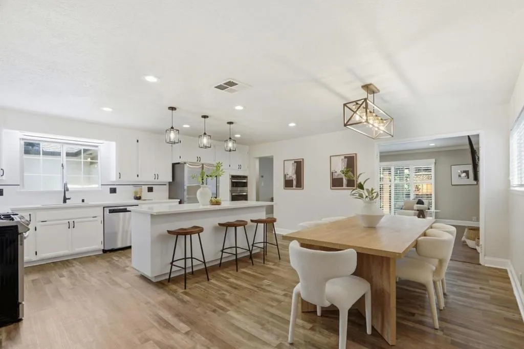 Stunning single story home in one of the most sought after west san jose neighborhoods with award winning schools! Fully remodeled in 2026, New roof in 2025, minutes away from award winning private schools, parks, Santana Row, downtown Campbell, and the Pruneyard. Featuring a beautifully updated kitchen complete with modern appliances, gas stove cooktop, and a spacious island. Whether you prefer casual meals at the breakfast nook or more formal dining in the dining area, this home caters to both. The separate family room offers a cozy retreat, with a fireplace adding warmth and ambiance to cooler evenings. Enjoy the practicality of laminate flooring throughout, which adds a modern touch and is easy to maintain. The central AC and heating ensure comfort year-round. Laundry is a breeze with an included washer and dryer. This home is part of the Moreland elementary school district, and nearby private schools Stratford, Harker and Mitty. With a spacious 2-car garage, this property combines convenience with comfort, making it an ideal choice for those seeking a welcoming environment in the heart of Silicon Valley. Easy 5 min drive to Santana Row, 8 Minutes from Apple, 12 min to Nvidia, 15 min to Google. This location is a commuters absolute dream.