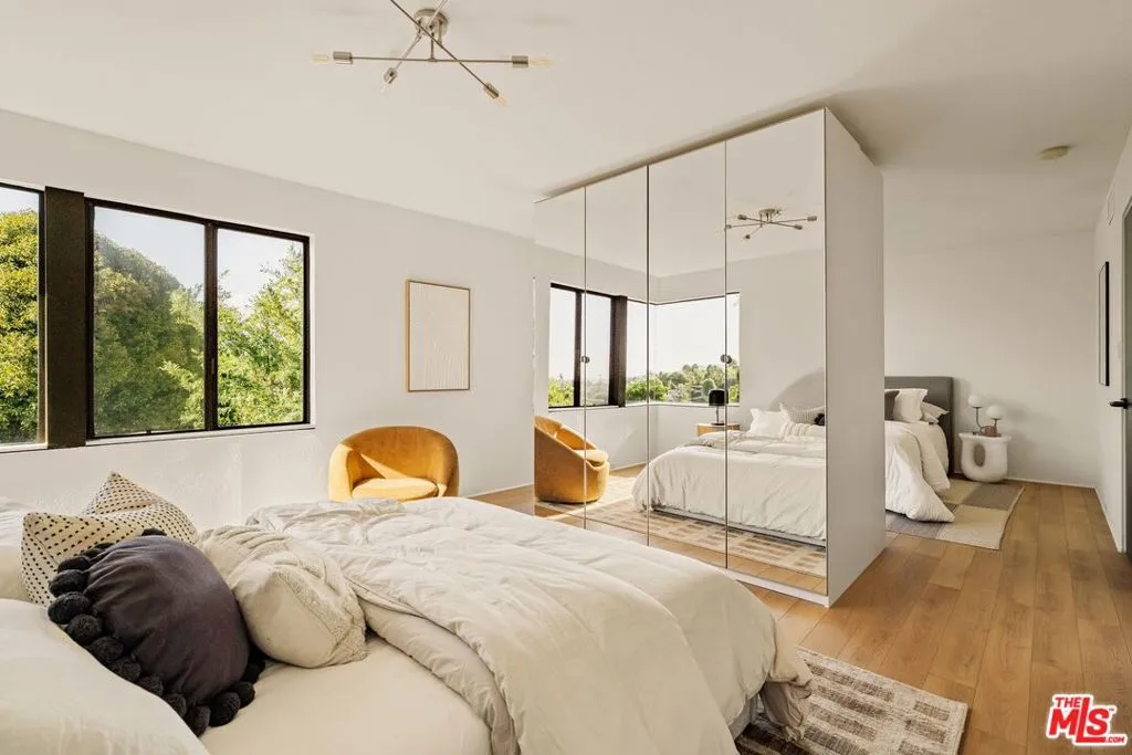 Nestled in the hills and set back from the street in the dynamic heart of Los Angeles, this architectural masterpiece is a blend of Japanese-inspired aesthetics and modern functionality. This lovingly maintained gem, crafted by its original architect owners is making its market debut. The property transforms living into an elevated art form by celebrating intentional design that seamlessly incorporates breathtaking 270-degree mountain views, and a thoughtful connection to nature. Step inside and discover a sanctuary with carefully curated elements. Clean lines, natural materials, and a tranquil ambiance define the home's timeless style, merging Japanese and American influences. Wide hallways and soaring ceilings in the enormous living room create a sense of openness. The inviting family room complete with a cozy fireplace, beckons intimate gatherings. There is abundant storage and counter space in a custom kitchen that looks out to nature via one of the many mitered windows that honor the views. The master suite is a private haven, featuring a walk-in closet with 12 feet of storage on each side. Upstairs, adaptable bedrooms offer infinite flexibility.Perched in perfect harmony with its surroundings, the home's expansive windows frame ever-changing vistassunrises, moonrises, and sparkling city lights. Whether preparing dinner against the backdrop of a mountain sunset or soaking in a moonlit bath, each space invites you to pause and savor the moment. The backyard, visible from the kitchen, offers a serene yet lively setting for quiet mornings or family celebrations, balancing beauty and practicality.Set on a sprawling 60'x250' lot with room for a pool, the outdoor spaces rival the interior in their thoughtful design. Lush landscaping, supported by an automatic irrigation system, includes side yards, a hobby vegetable garden, and a tiled pond with an 8-foot-wide fountain. Nostalgic charm comes to life with a jungle gym for playful afternoons, while a detached shed provides ample storage. The direct entrance 2-car garage has plenty of room for storage, as does the under-stair storage that is cleverly designed, leveraging basement walls for naturally temperature-stable space. There is additional parking, and a discreet area for trash bins to ensure a meticulous outdoor experience.This home's location offers an ideal blend of tranquility and accessibility. Stroll nearby hiking trails with sweeping views of downtown LA or explore local favorites in Highland Parks' vibrant scene. Eagle Rock, downtown LA, Glendale are minutes away. The Southwest A-Line station is nearby connecting you effortlessly to the city.This isn't just a home--it's a legacy of thoughtful design and connection to its surroundings. From its architectural elegance to its balanced indoor-outdoor flow, every inch tells a story of care and creativity. Poised to welcome its next chapter, this property invites you to embrace a life of beauty, comfort, and connection in the heart of Mount Washington.